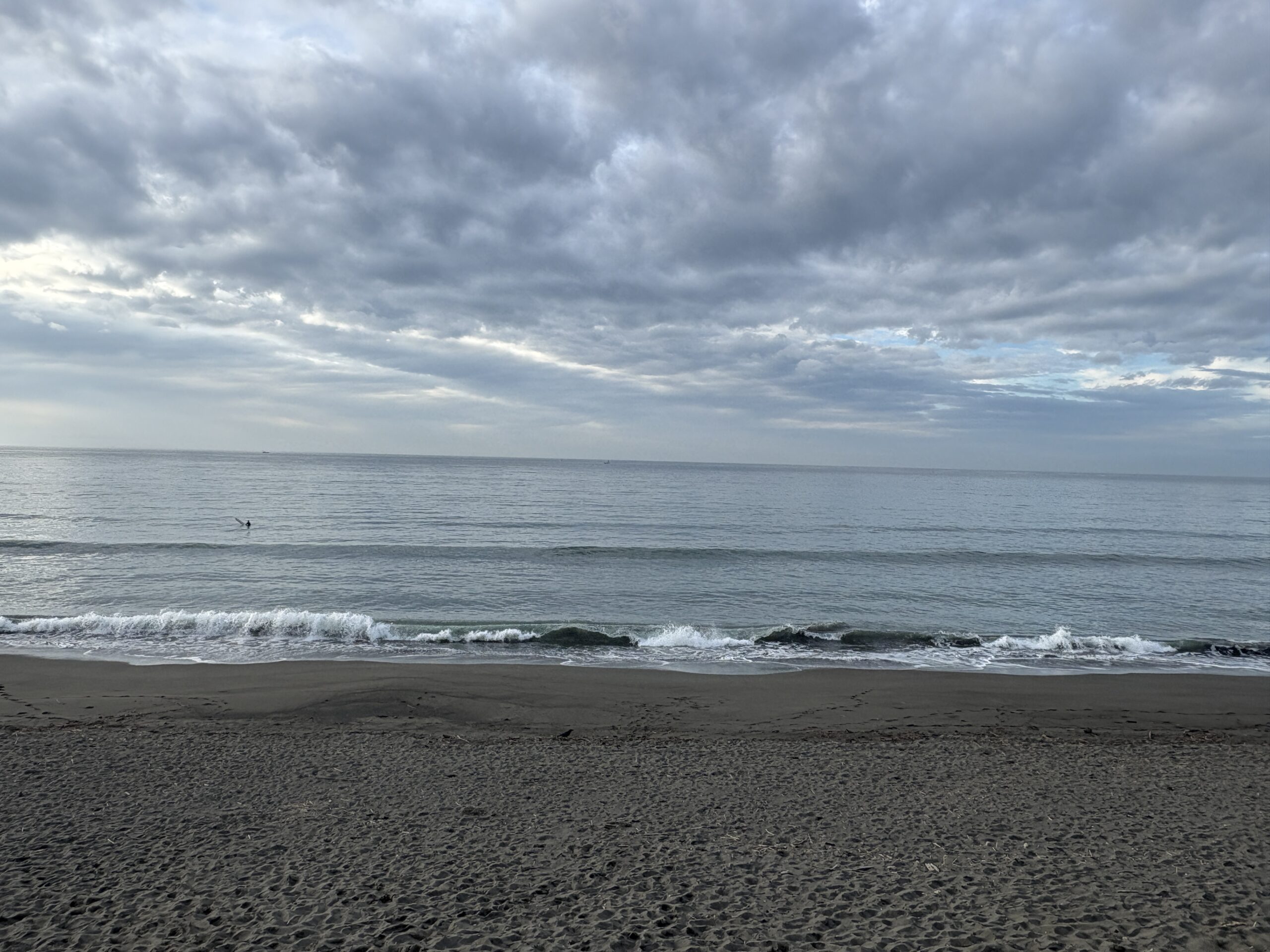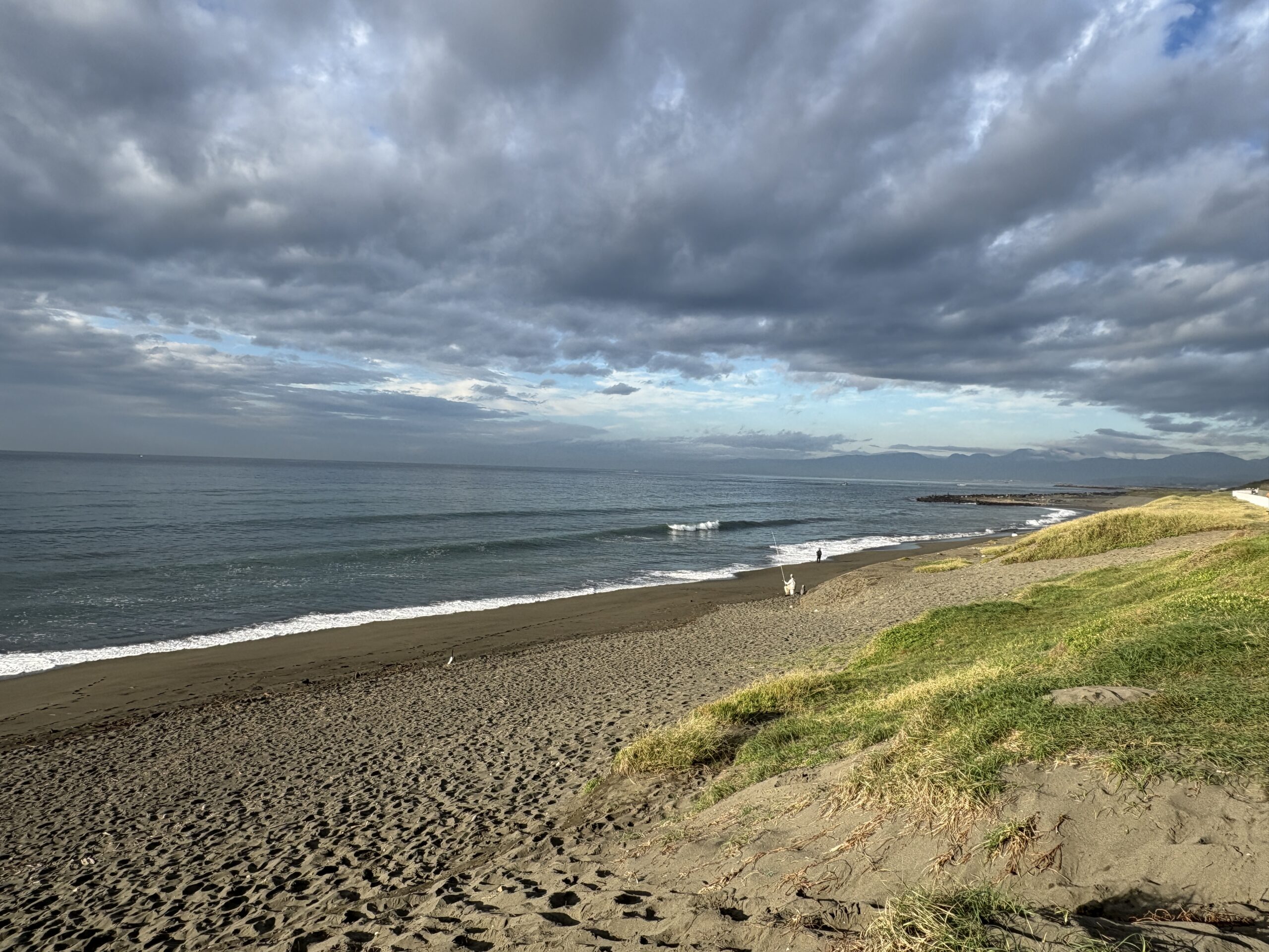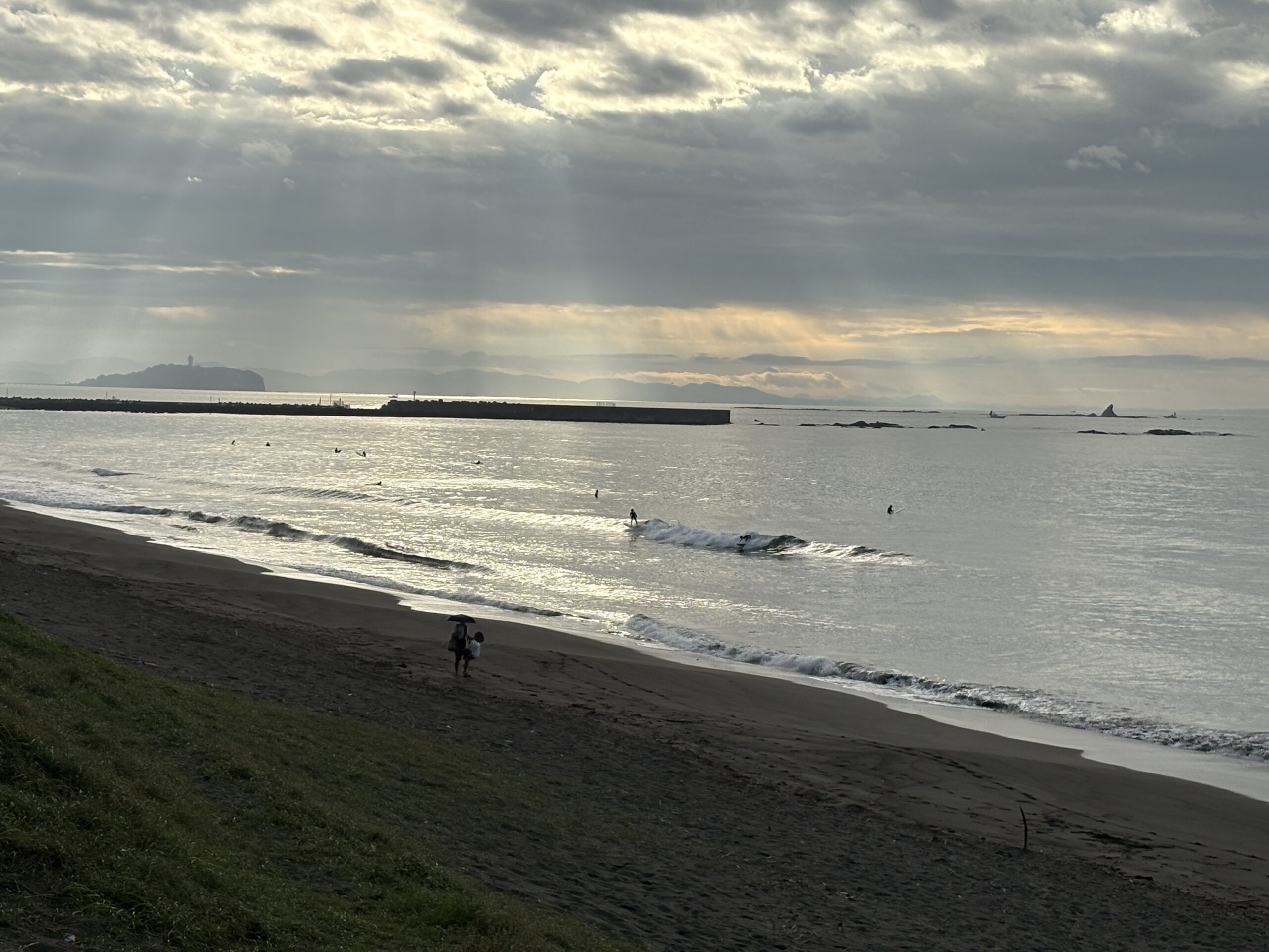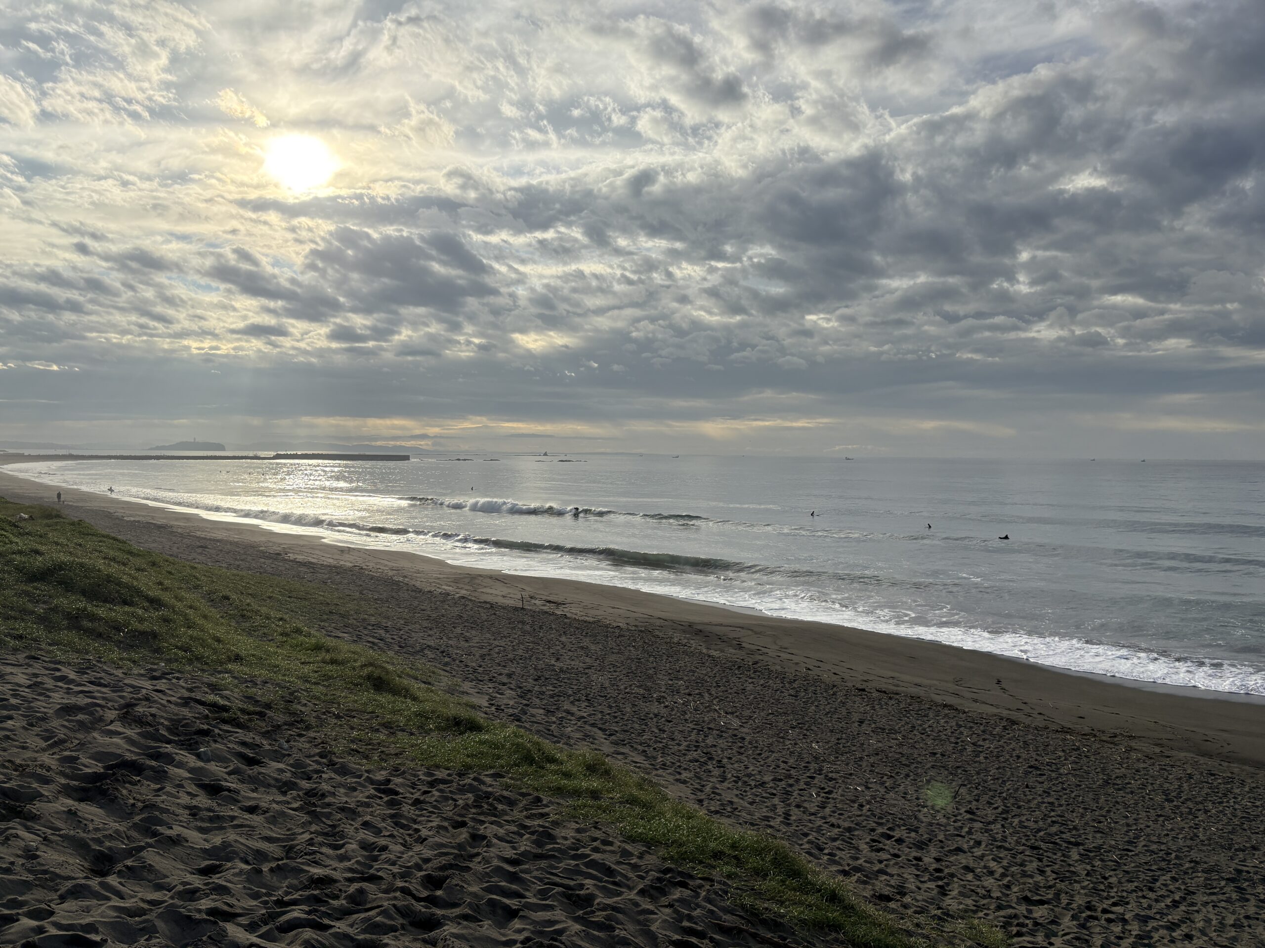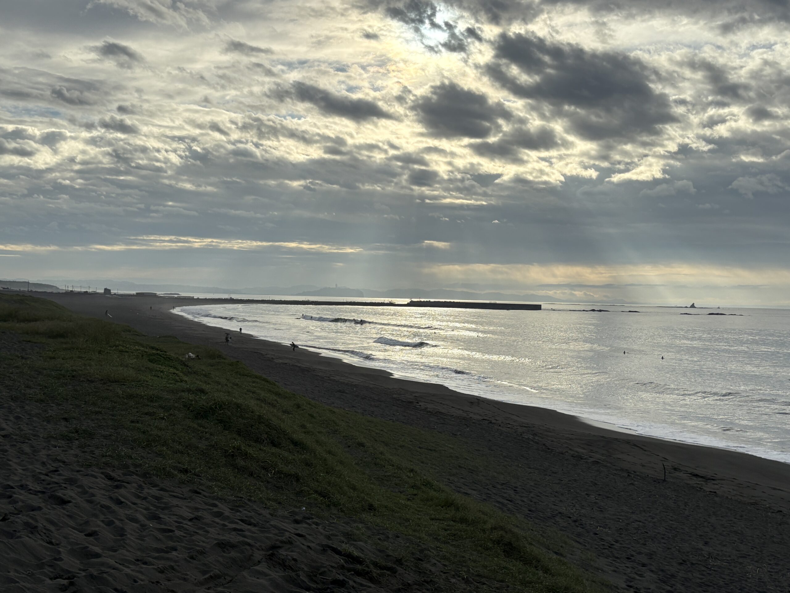 そして今朝の店前の海は、恐らく台風スウェルかと思われる筋張ったウネリが入って来ています。今現在、大潮周りの朝は潮が多い状態なので割れ辛く、セット間長めのたまに入るセットはモモから腰近くのしっかりしたウネリが入り岸寄りで辛うじてブレイクしています。 これから潮が引いて来るので次第に沖でブレイクし出すかと思われます?!