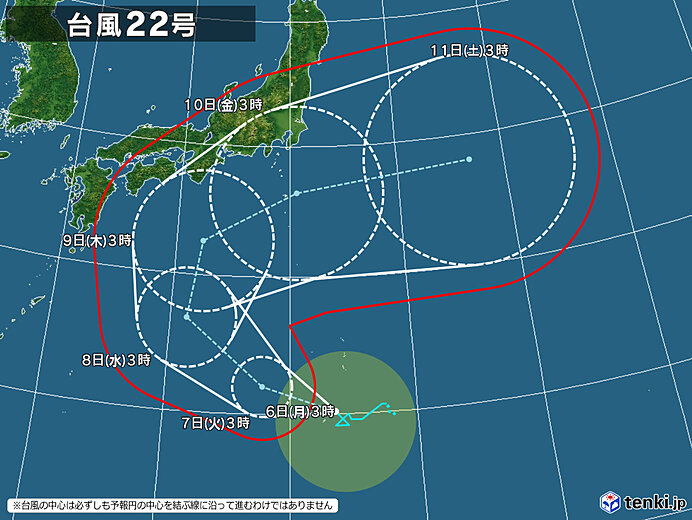 今日の天気は曇り時々晴れの予報。今朝は雲の多い中陽が微かに出ていて、緩い北東風が吹く気持ちの良い朝です。先ずは台風22号情報。
