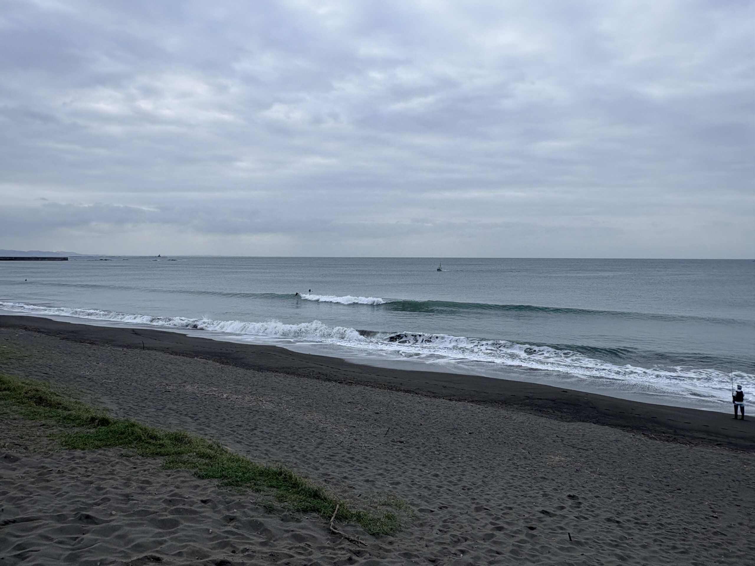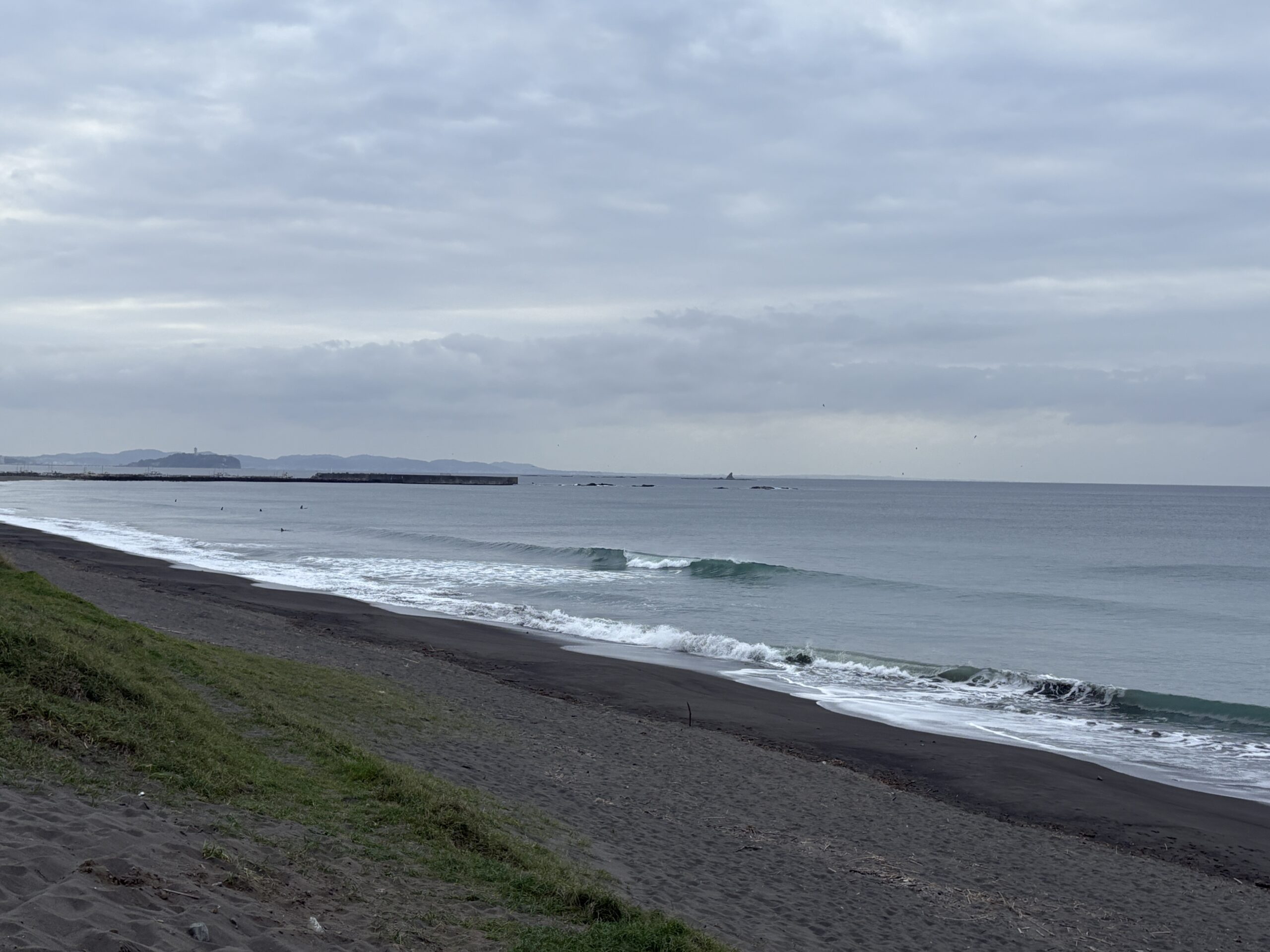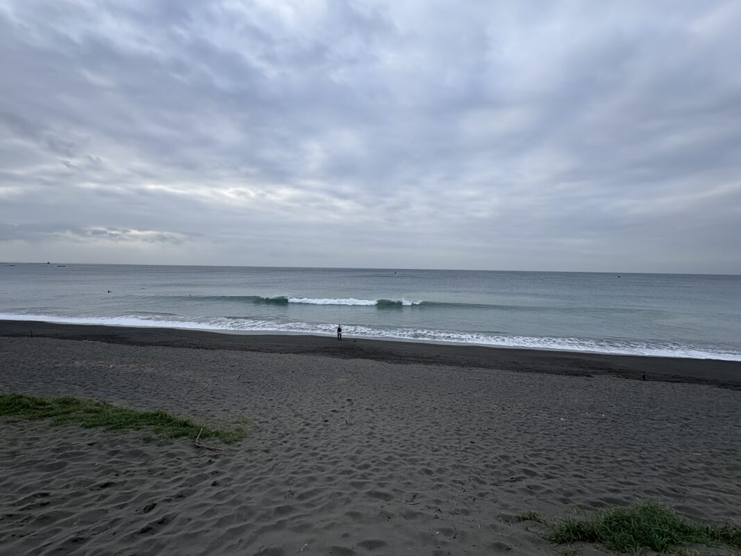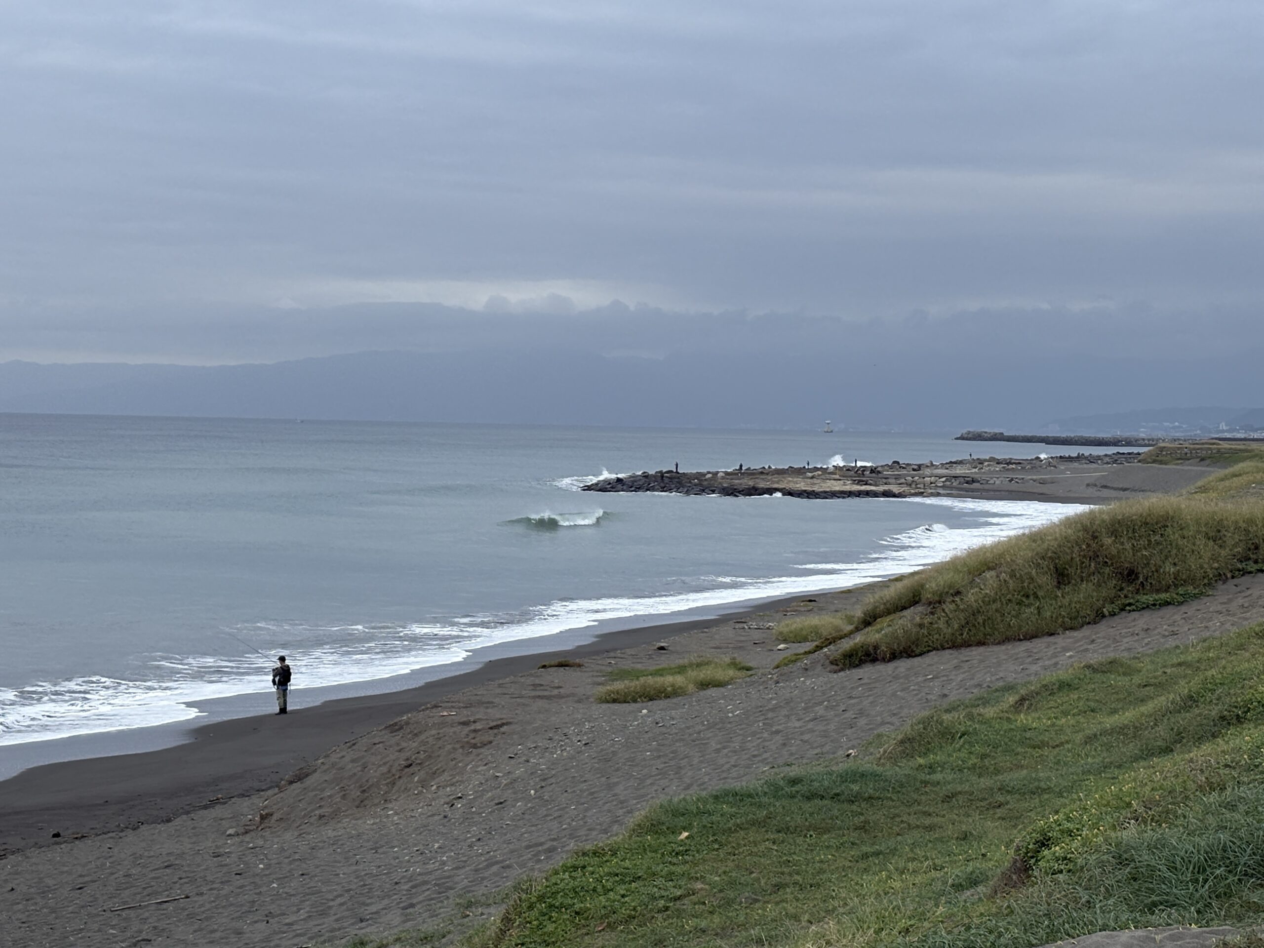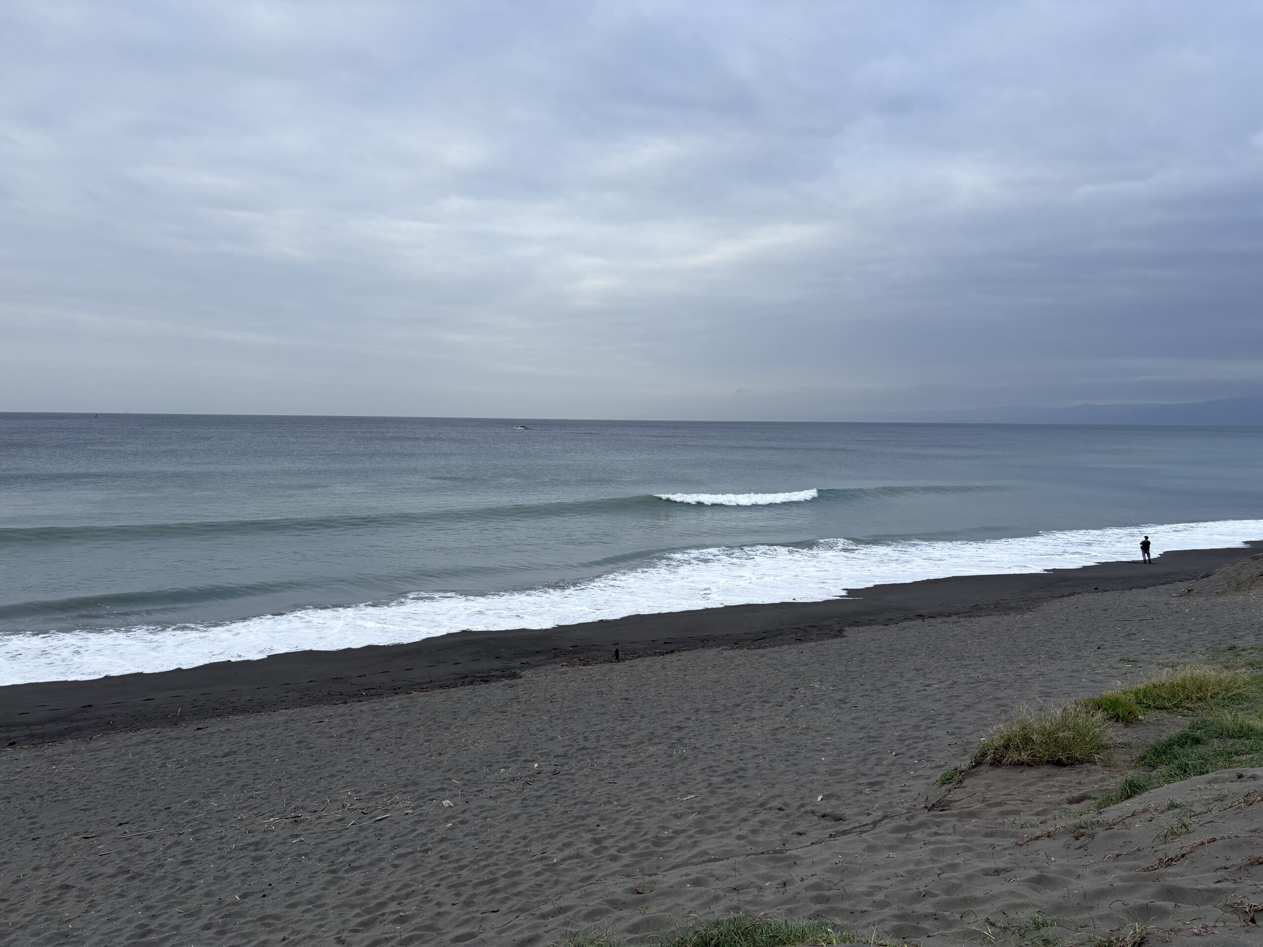 今日の天気は曇りの予報。今朝は曇り空の緩い北風が吹き肌寒い朝です。海は、台風22号がここ相模湾沖の南海上に位置し、今日からようやくウネリが入りつつあります。