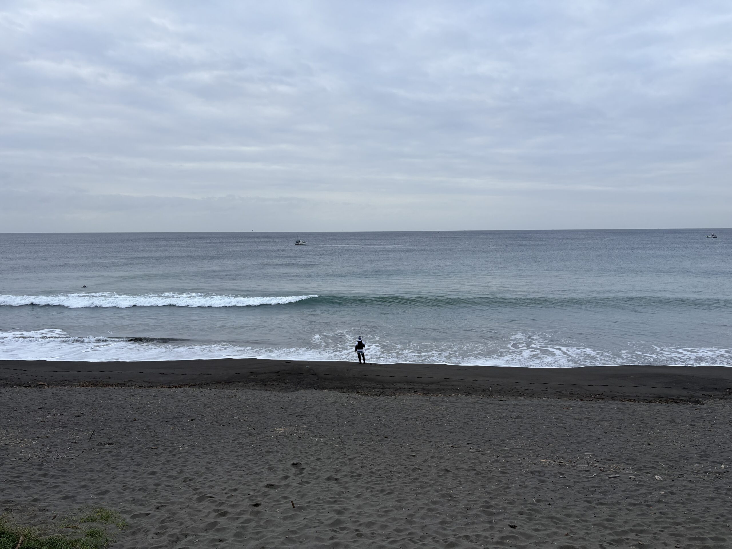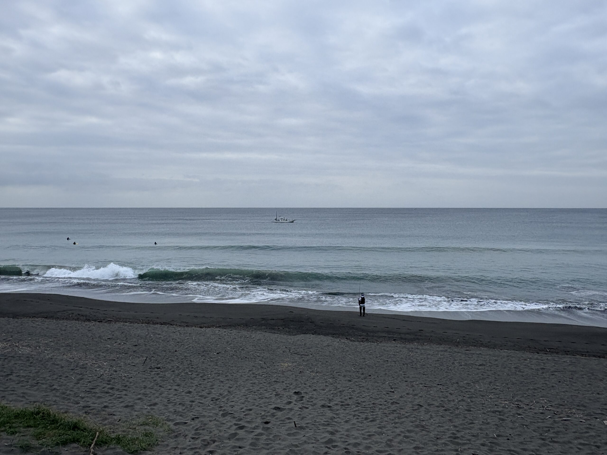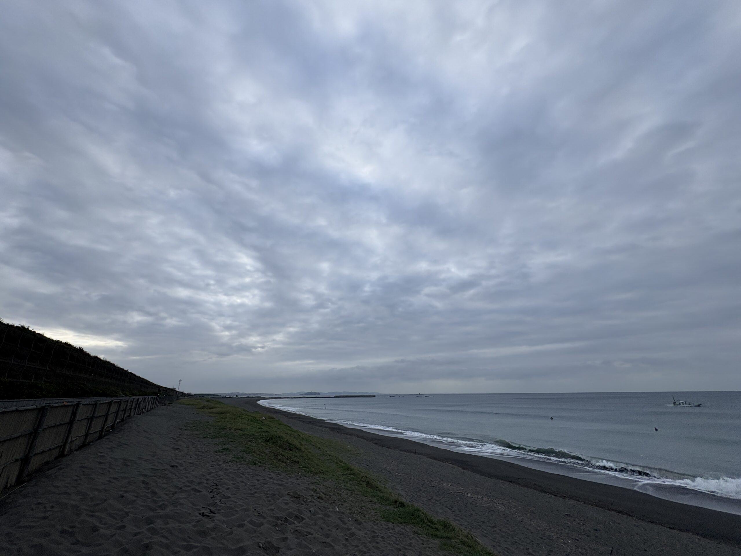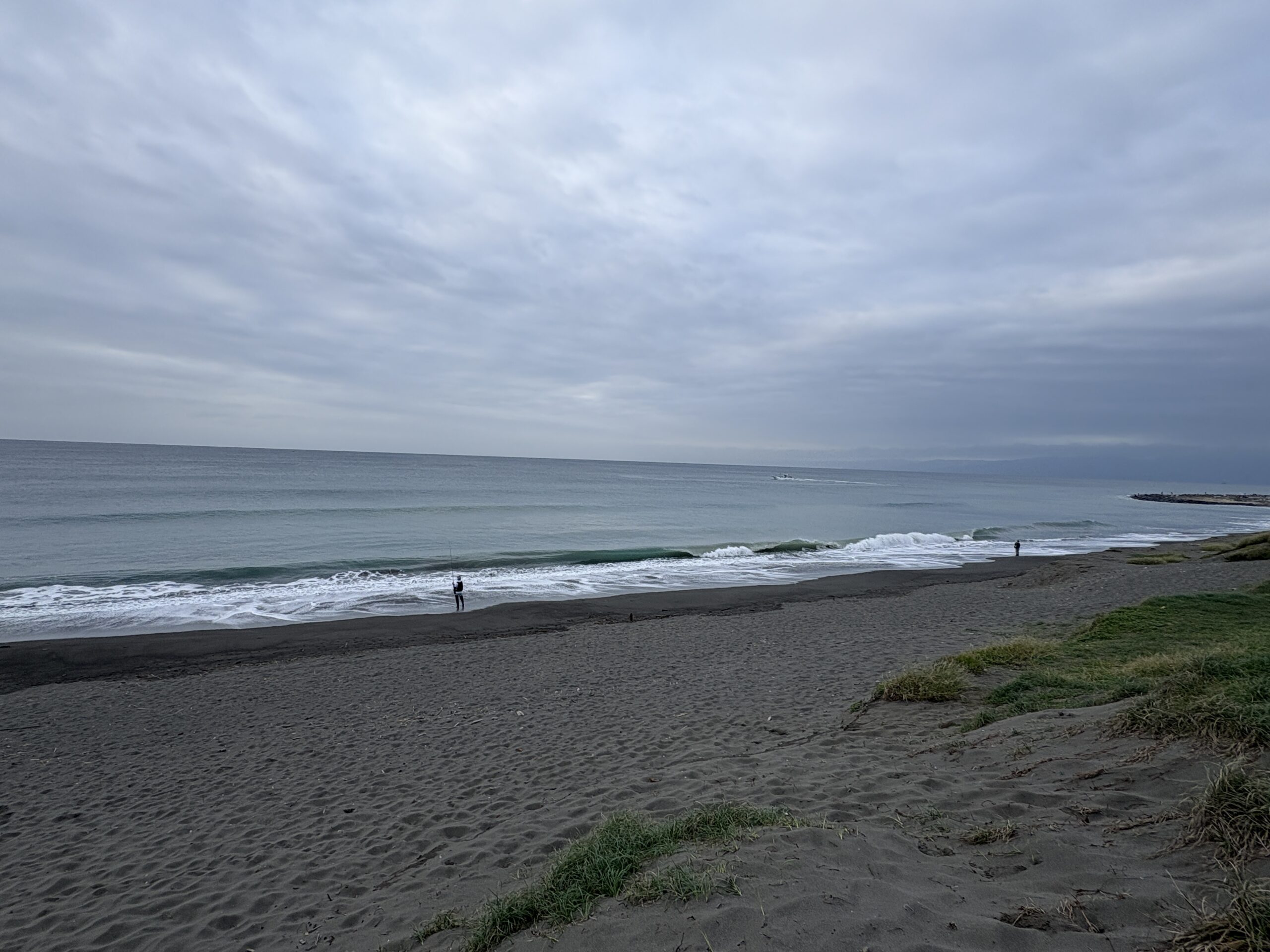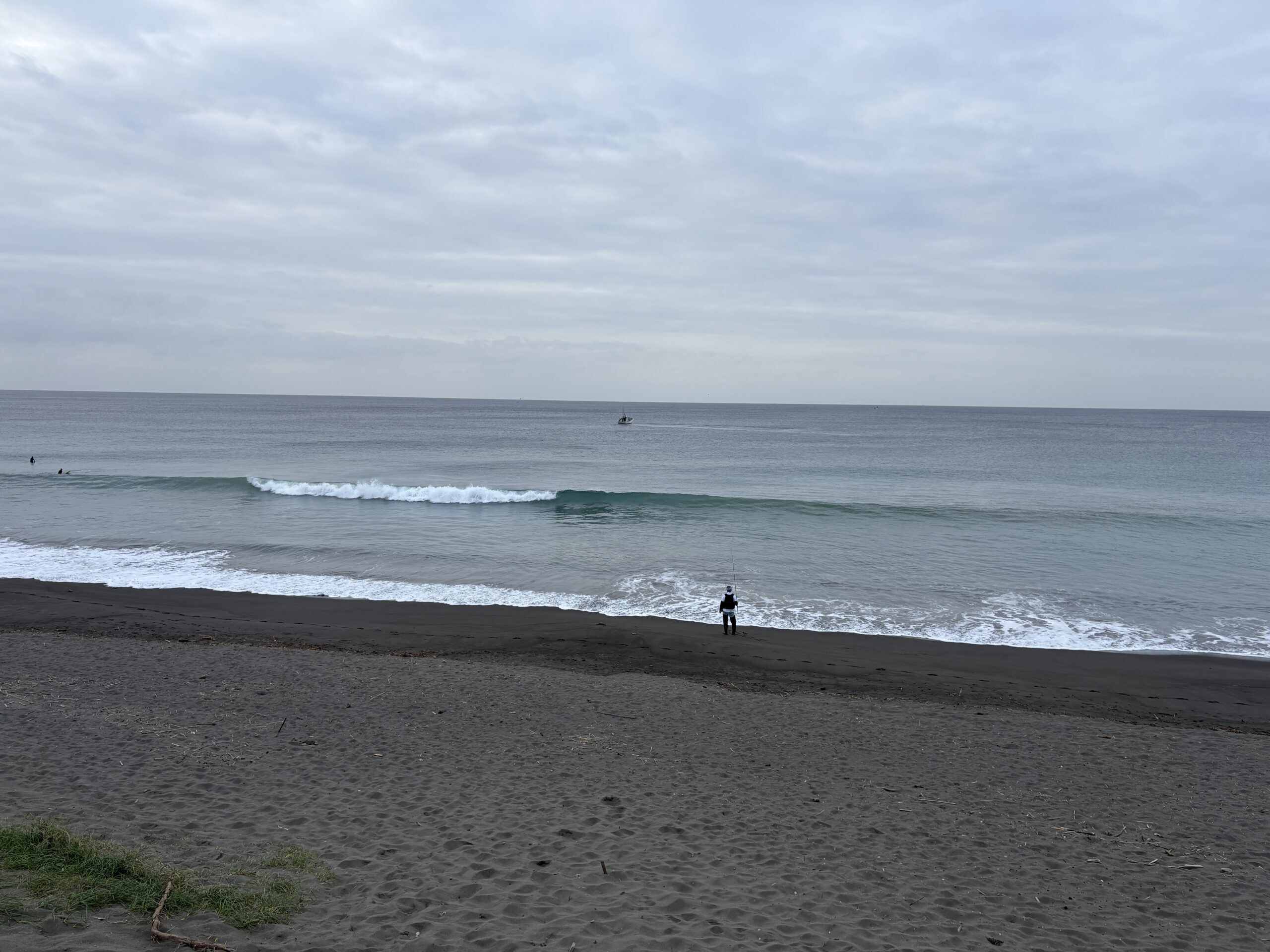 今日の天気は曇りの予報。今朝は曇り空の緩い北風が吹き肌寒い朝です。海は、台風22号がここ相模湾沖の南海上に位置し、今日からようやくウネリが入りつつあります。