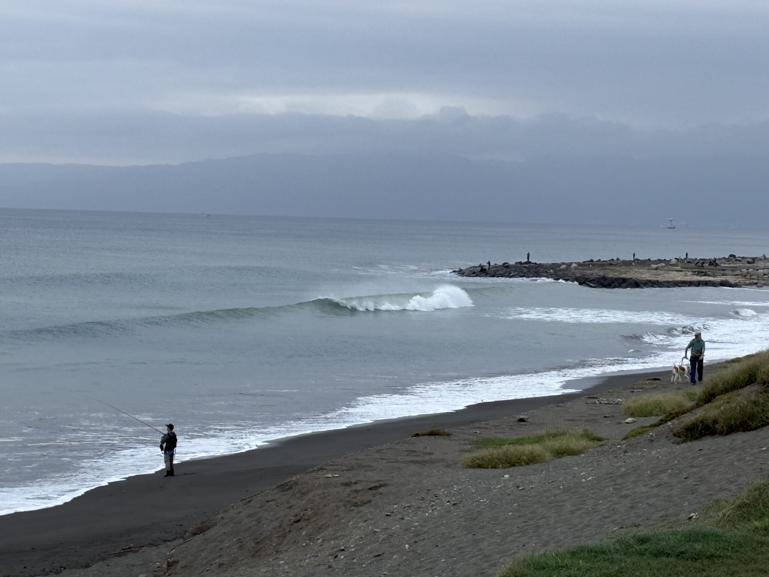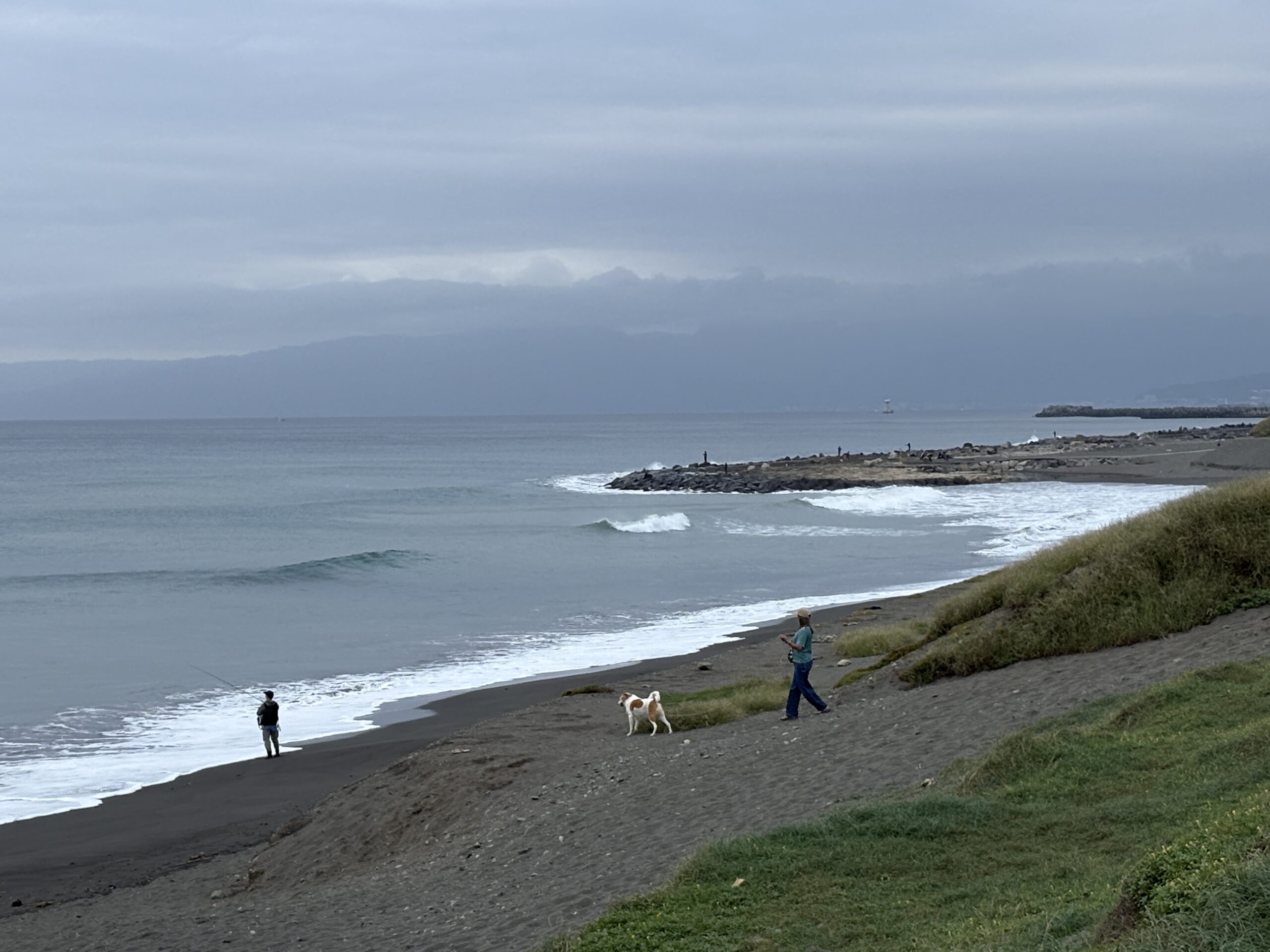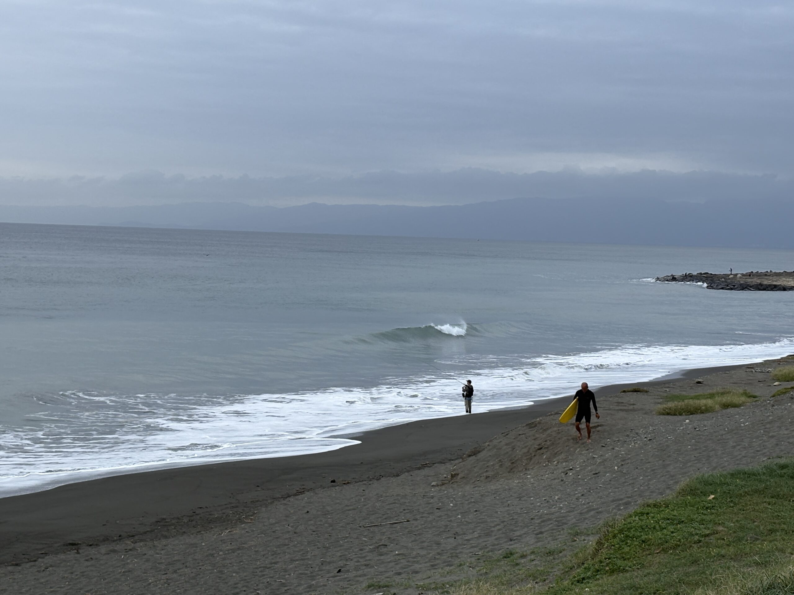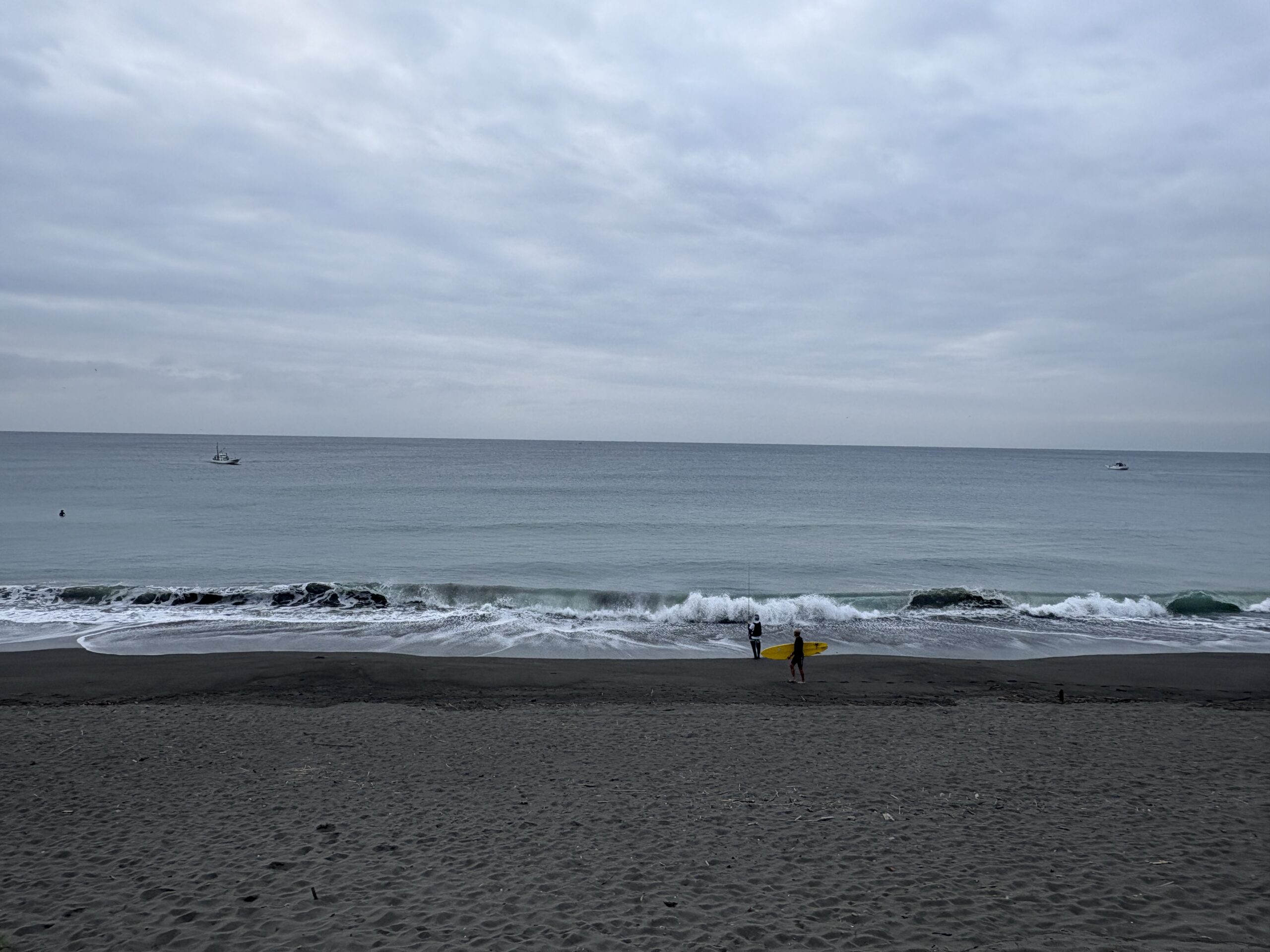 今日の天気は曇りの予報。今朝は曇り空の緩い北風が吹き肌寒い朝です。海は、台風22号がここ相模湾沖の南海上に位置し、今日からようやくウネリが入りつつあります。