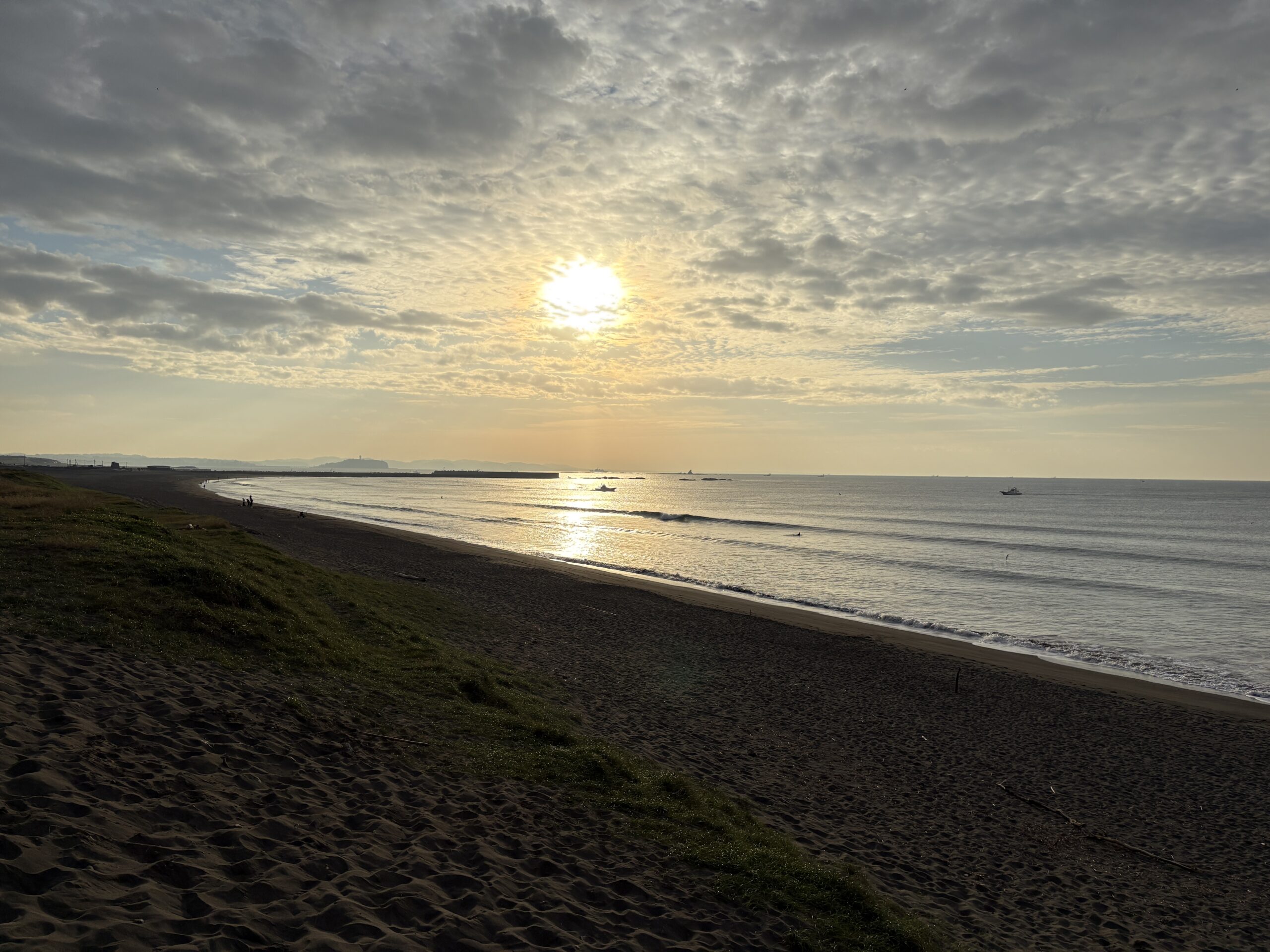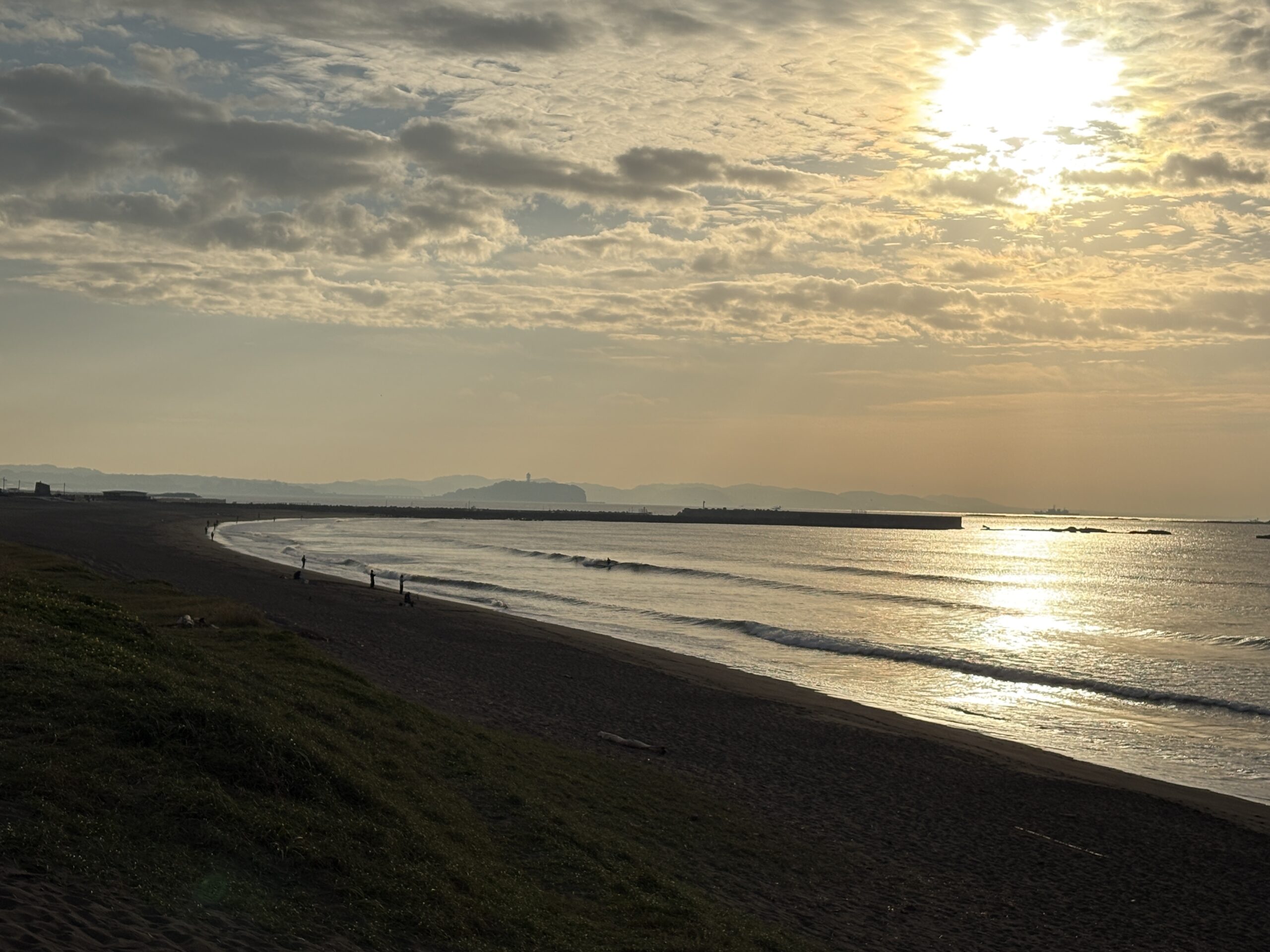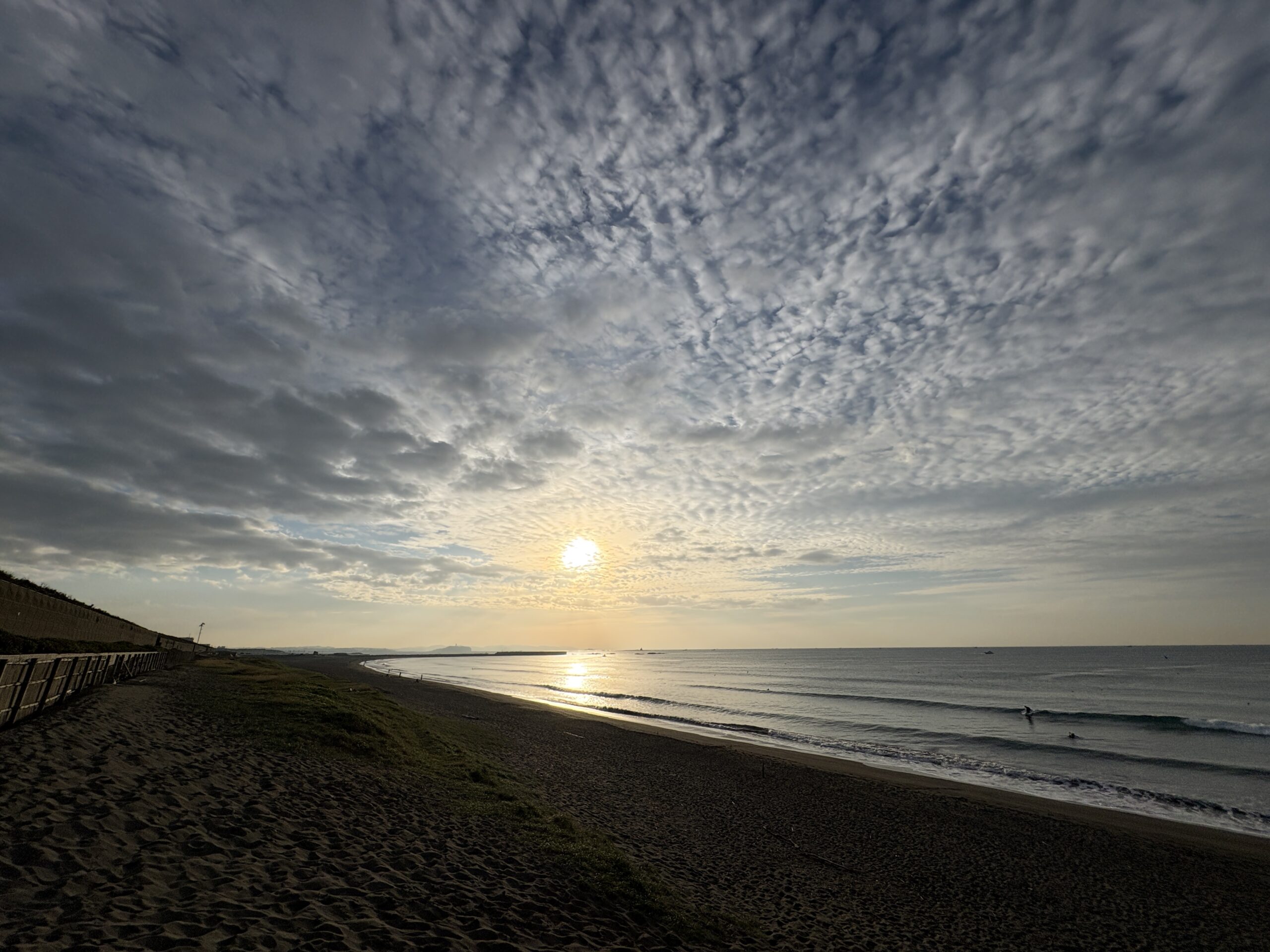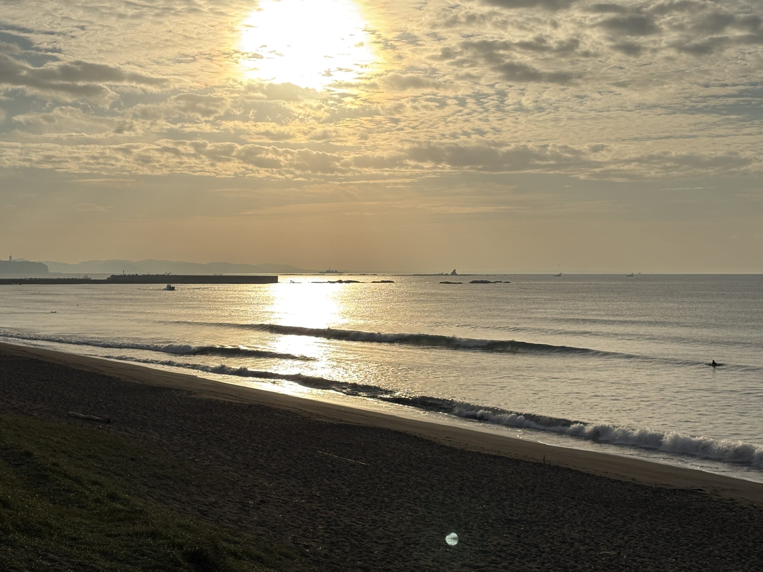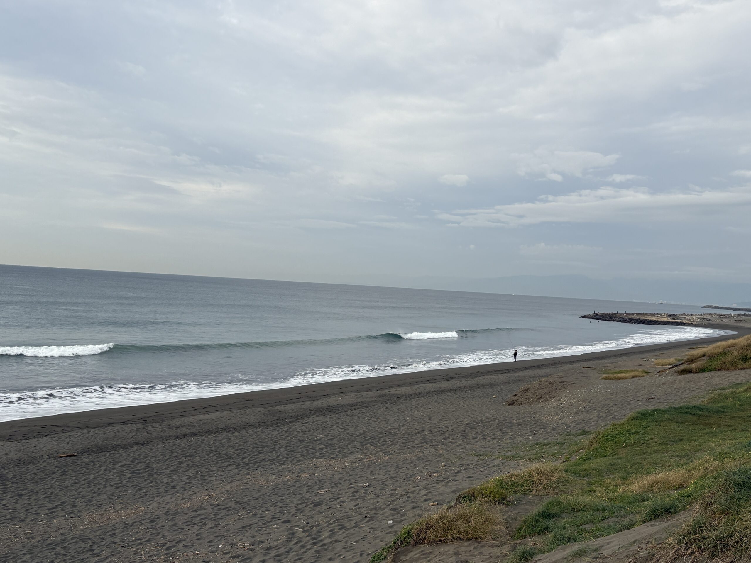 今日の天気は曇りのち雨の予報。今朝は一瞬朝日が出ましたが直ぐに雲に隠れてしまいました。そして今夜から明日午前に掛け全線を伴った低気圧が発達しながら日本列島を東に通過する予想なので、これから下り坂の天気になりそうです。 海は現在、無風のクリーンコンディションで、今日は筋張ったモモ前後のウネリが久々に入り、朝のうちは潮が引いているので形いい波が何とかブレイクしています。