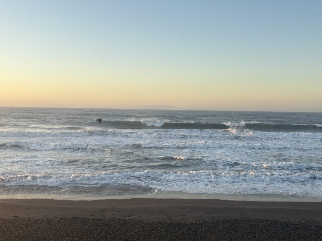 海は波が炸裂しており、バラついたウネリでオーバーヘッドの波が沖からブレイクし、ゲットがややハードなコンディションです。