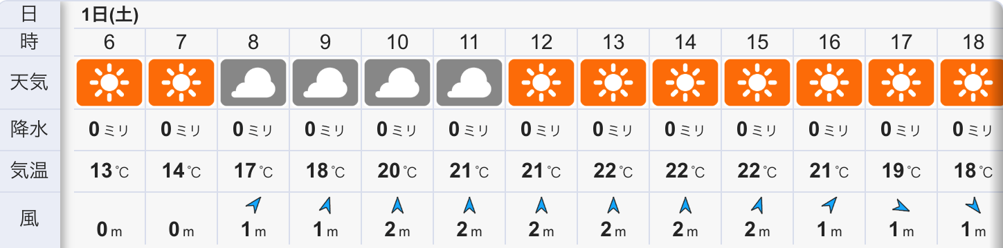 風は日中気温の上昇に寄り南風が吹く予想ですが、然程強まらない予想です。