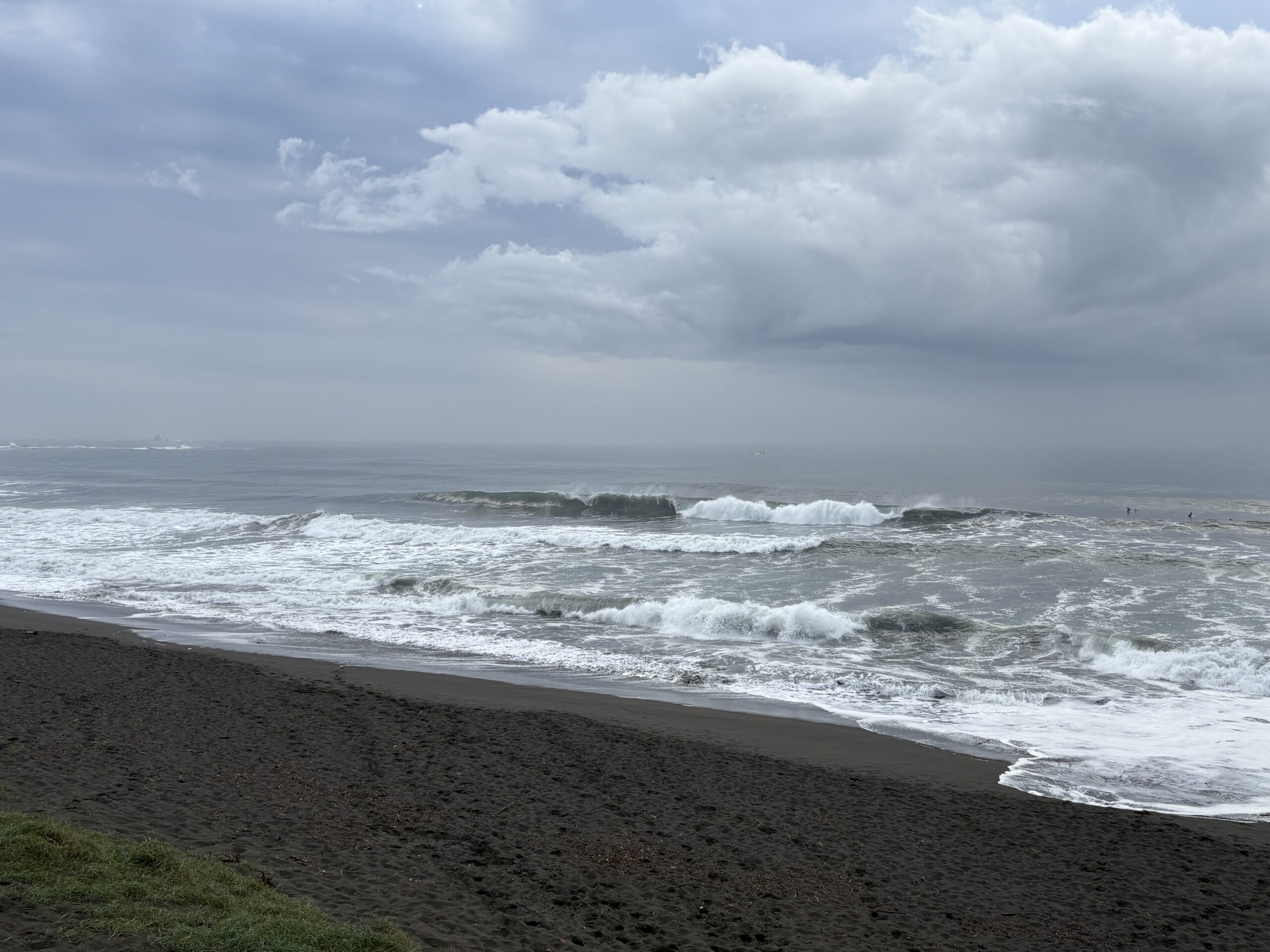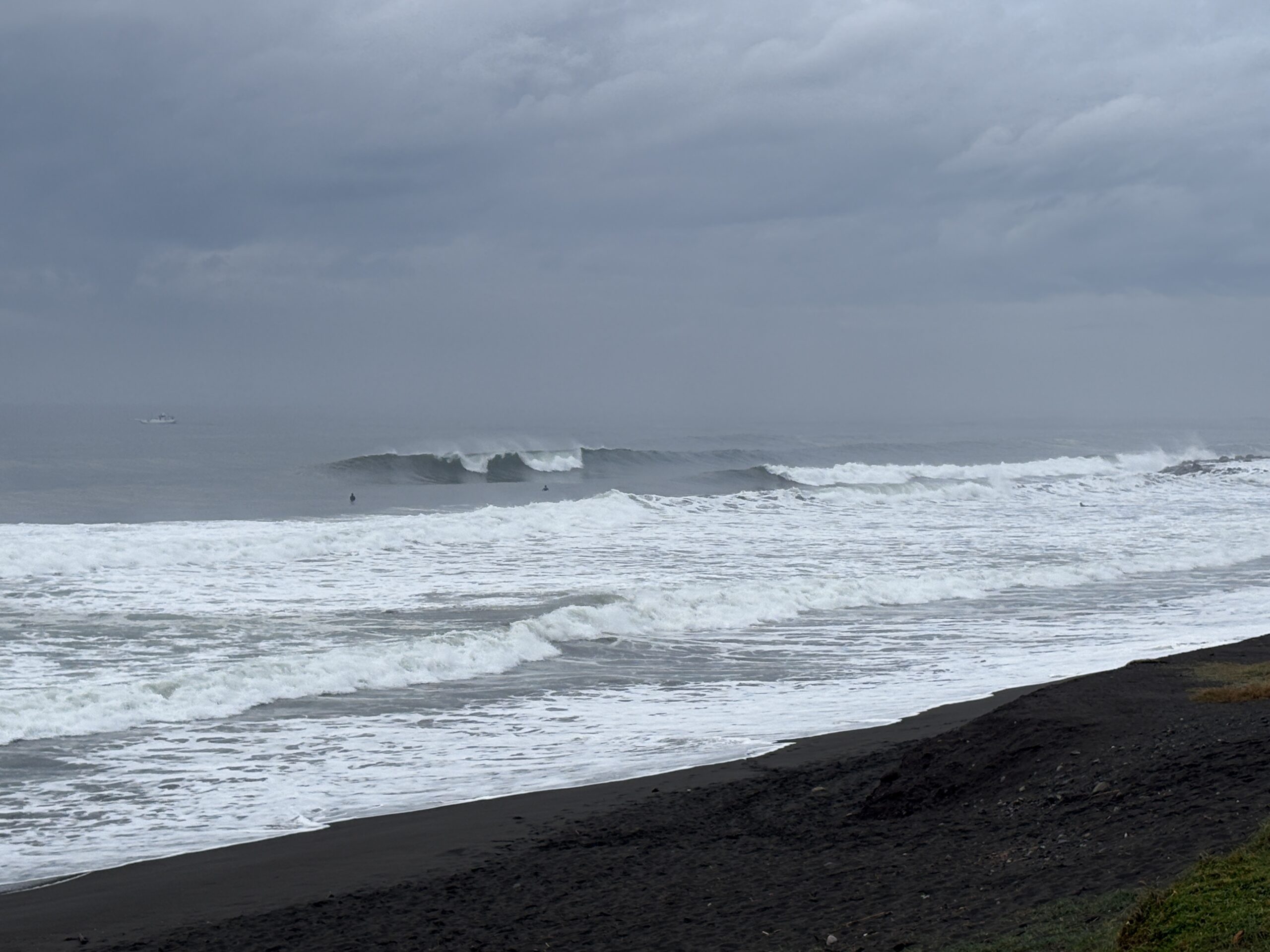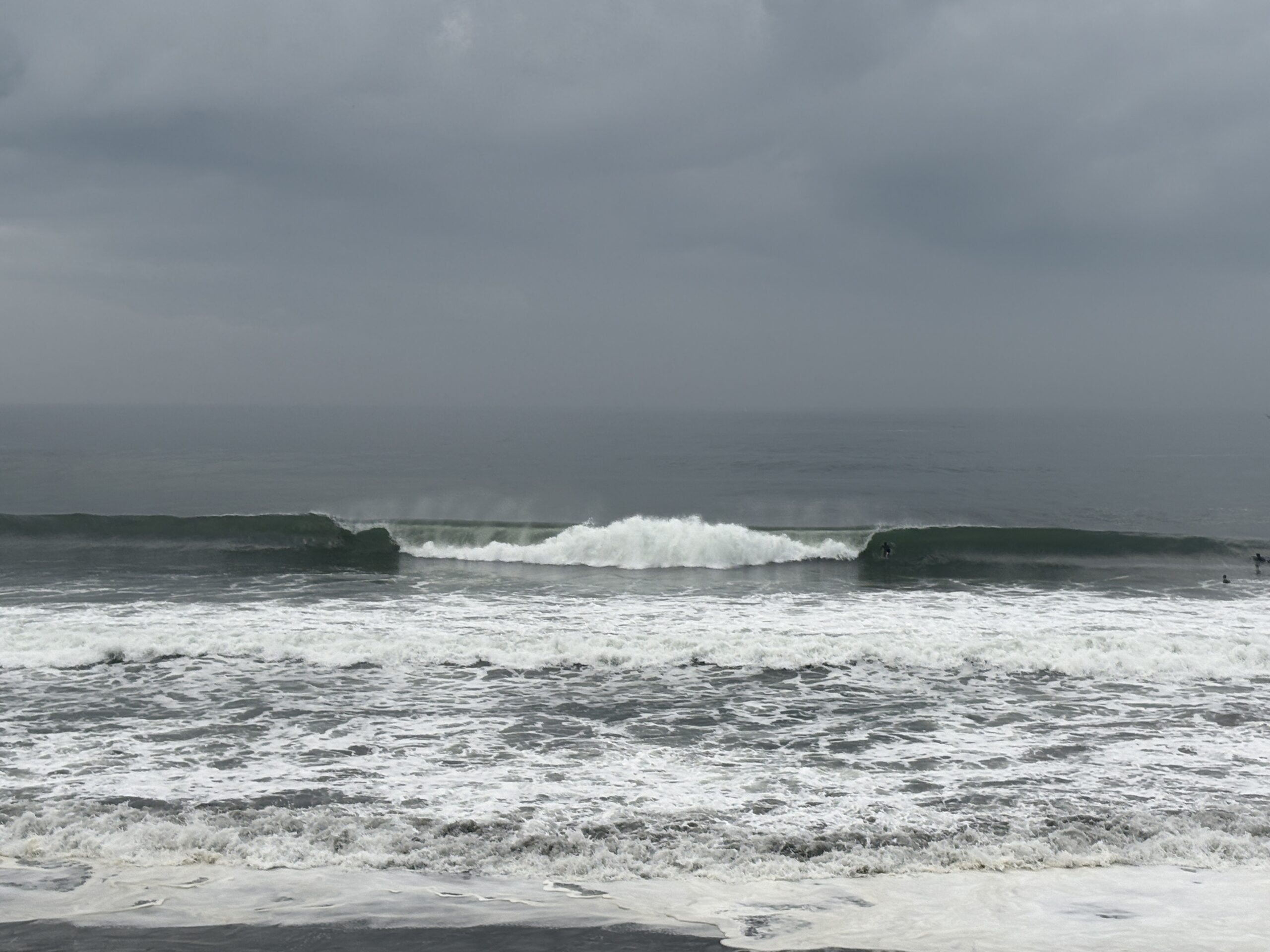 海は久々に炸裂し、頭からオーバーヘッドのウネリが入り各所で形いい波がブレイクしています。