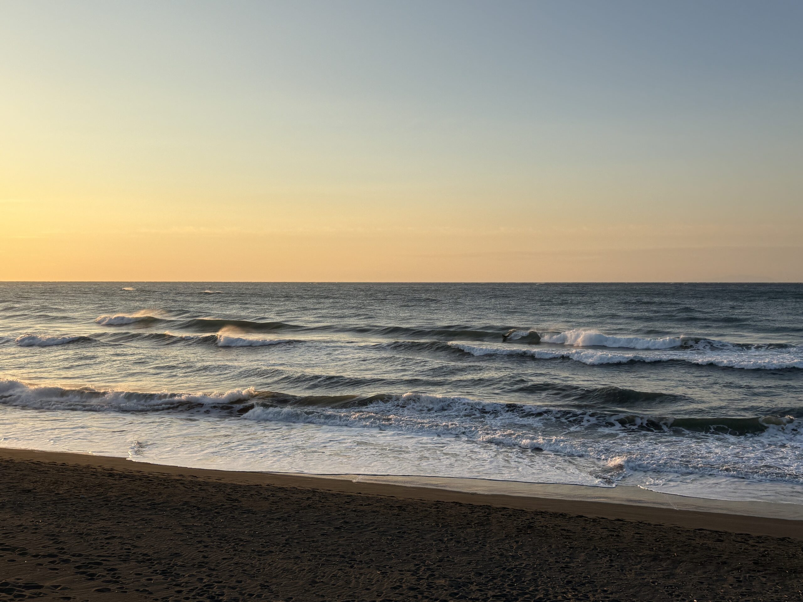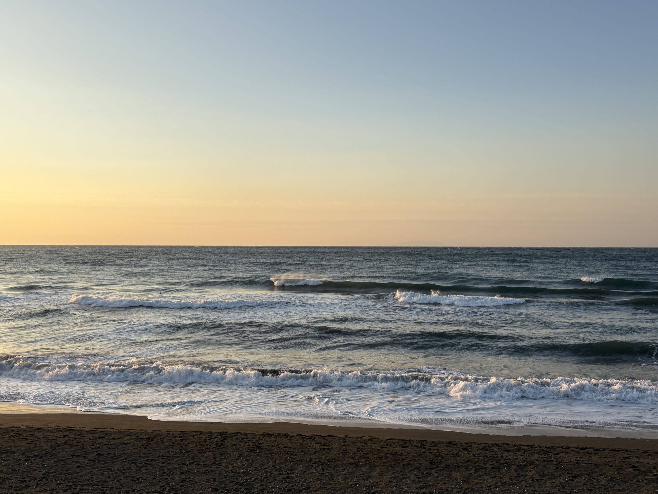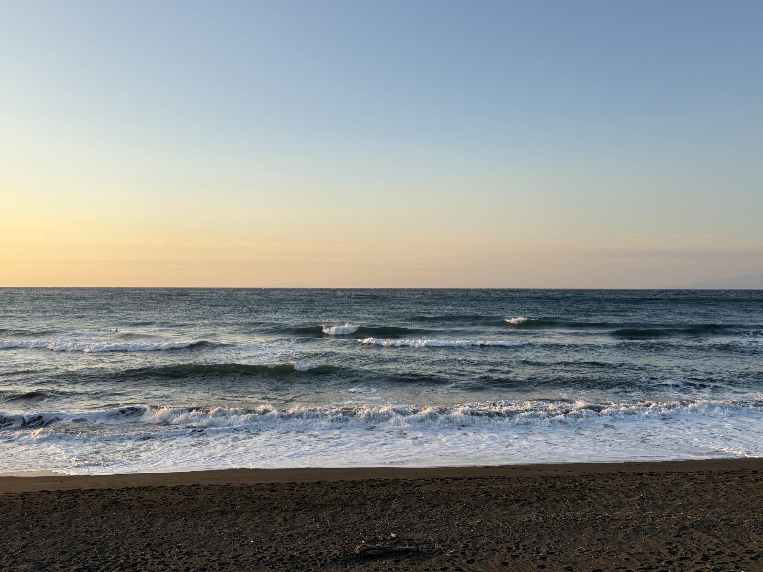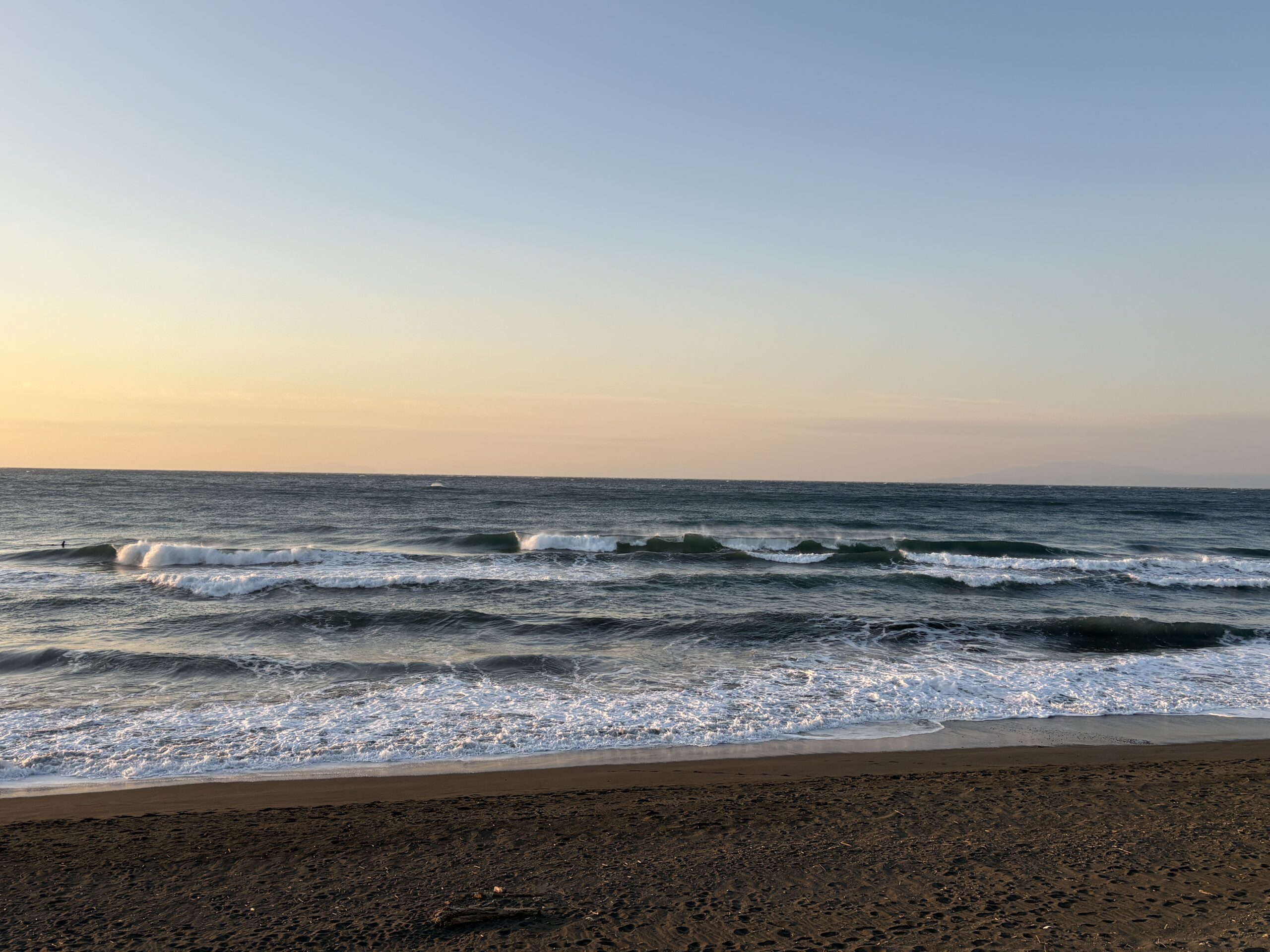 海は腰〜腹セットで胸前後のバラつくウネリが入り、乗れる波が掴み辛く、乗ってもショルダーが無くショートライドな感じです。
