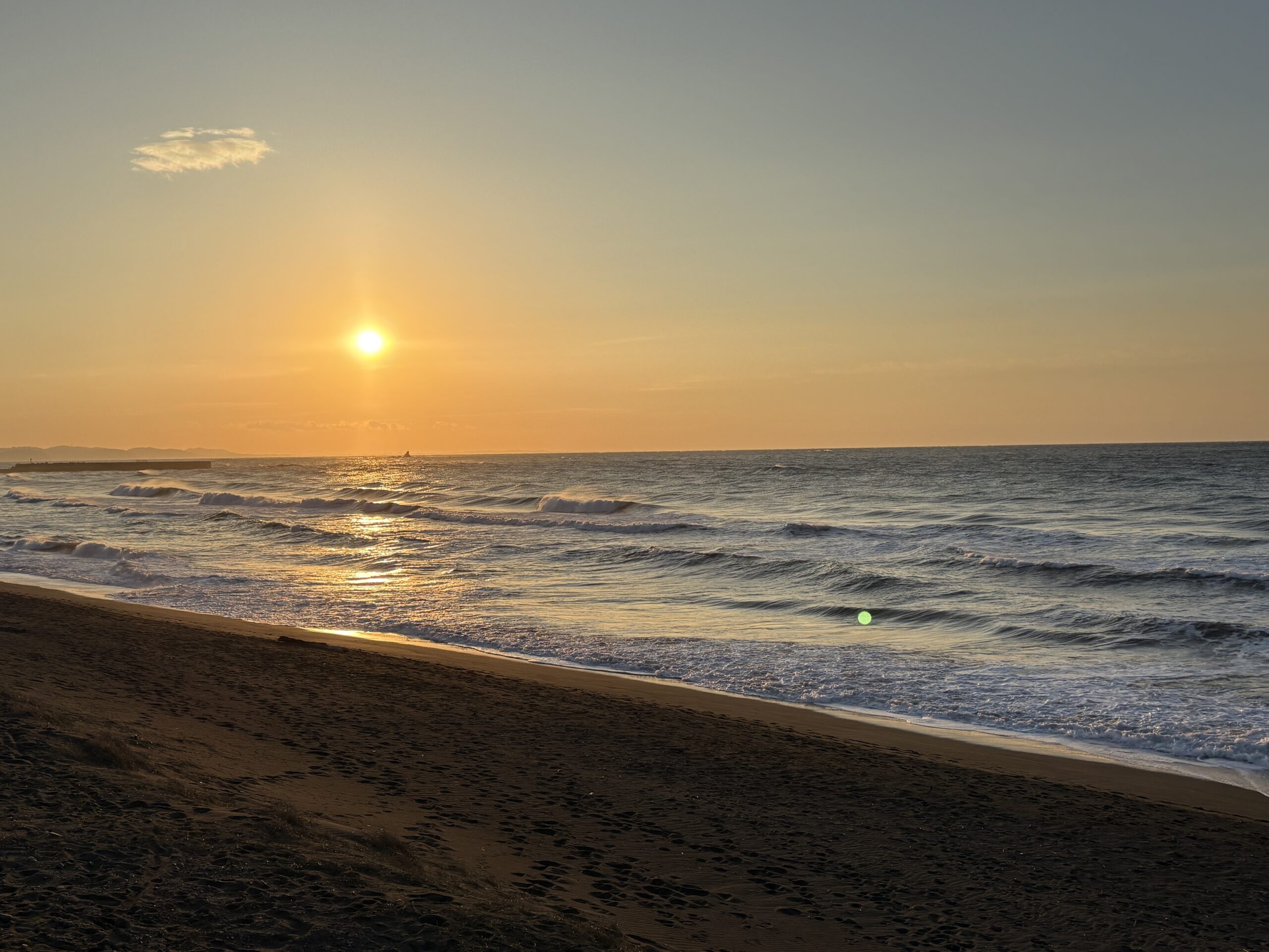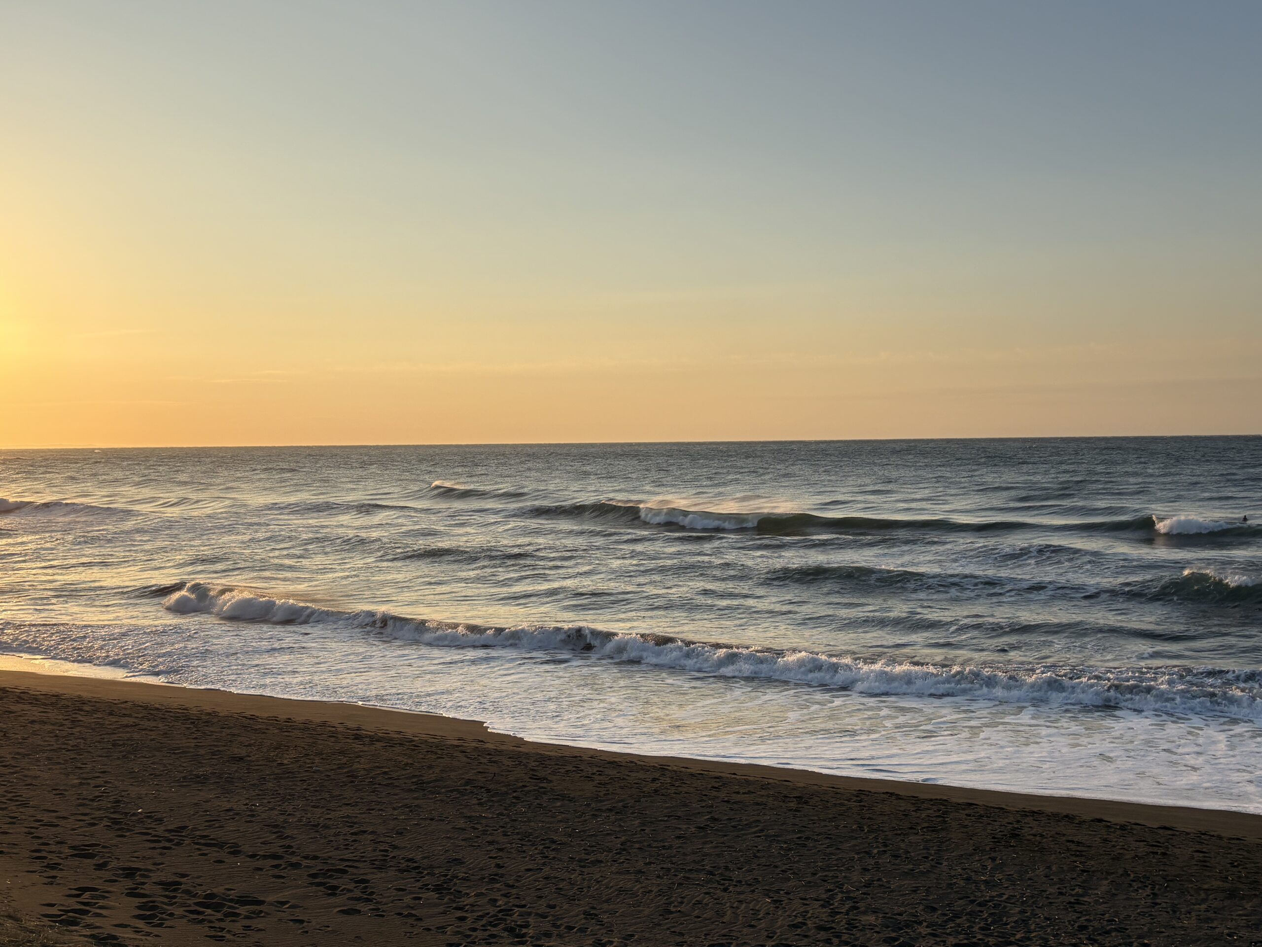 風は、海岸サイドは辛うじて北のオフショアですが、沖合には既に西風に寄る白波が立っているので、直ぐにオンショアに変わりそうな感じです?!