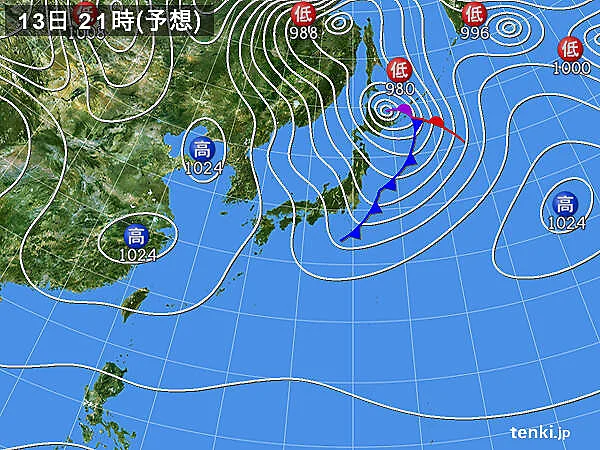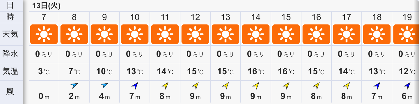 今日の天気は晴れの予報。今朝は冷たい北風が吹き冷えた朝ですが、西高東低の気圧配置が今夜に掛け発達し、その影響でこれから南西風が強まる予想です。
