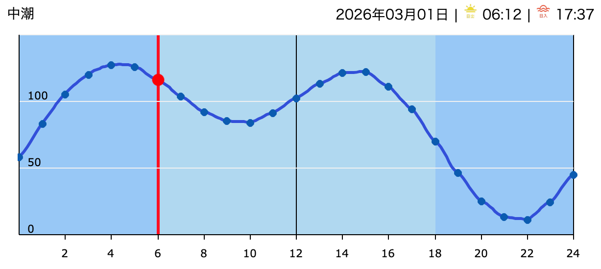 今日の天気は晴れの予報。今朝はブルースカイ広がる晴れの気持ちの良い朝です。海は未だ筋張ったウネリが残っており、膝前後の稀なセットは地形のある所で少し沖でブレイクしますが朝は潮が多い為、厚めのブレイクです。 本日のタイドグラフ。これから昼前までもう少し潮が引いて来るので、初心者のテイクオフの練習は出来そうです?!