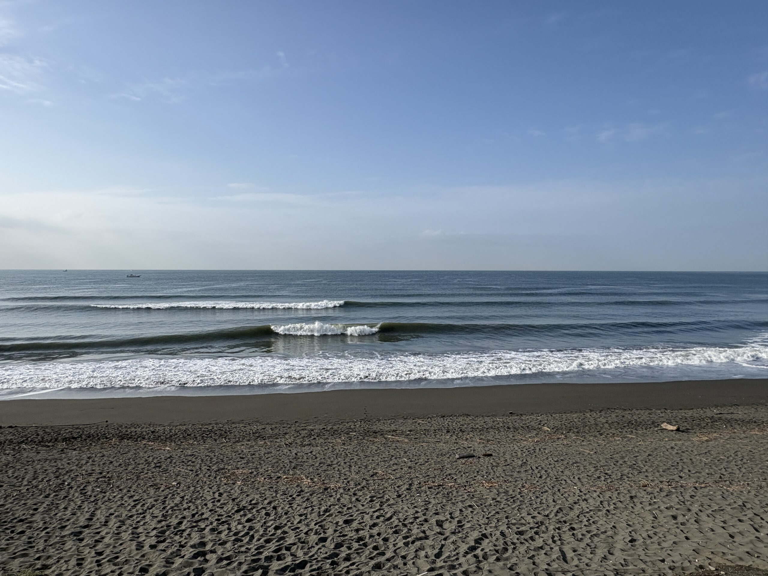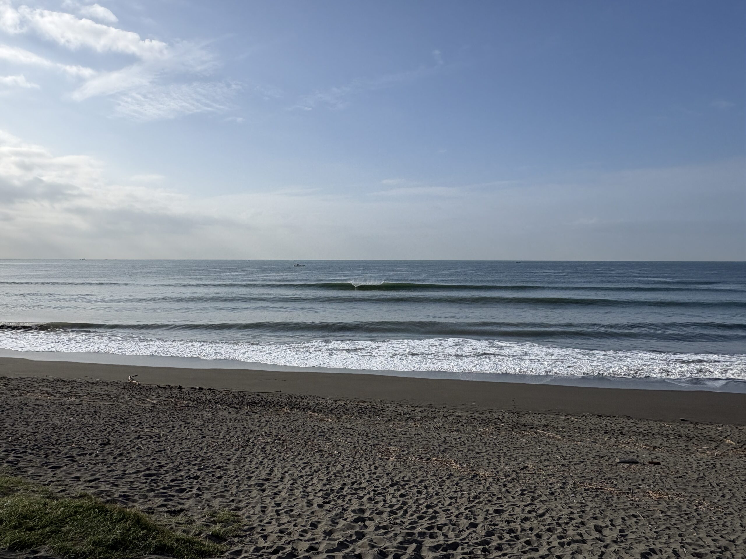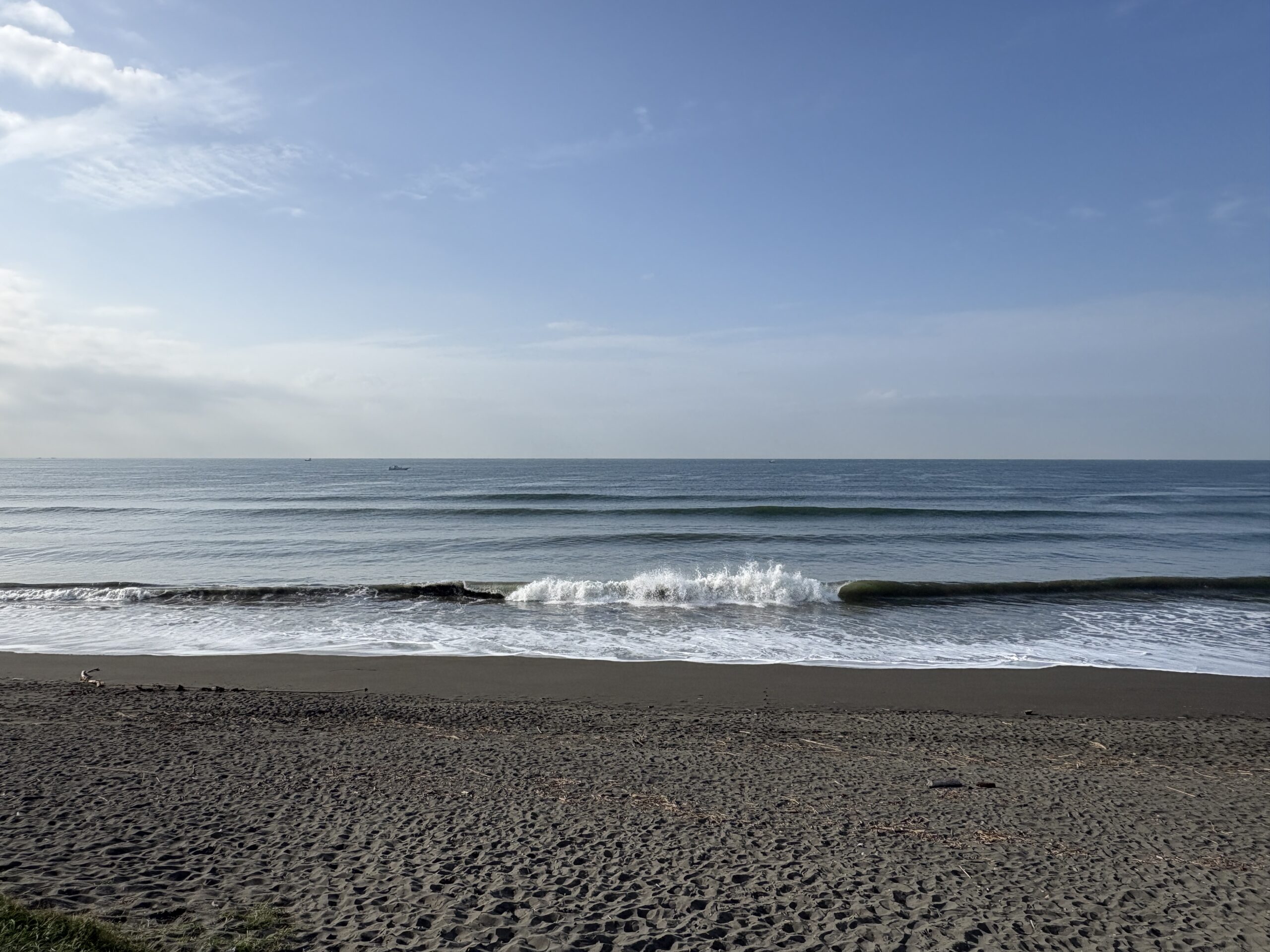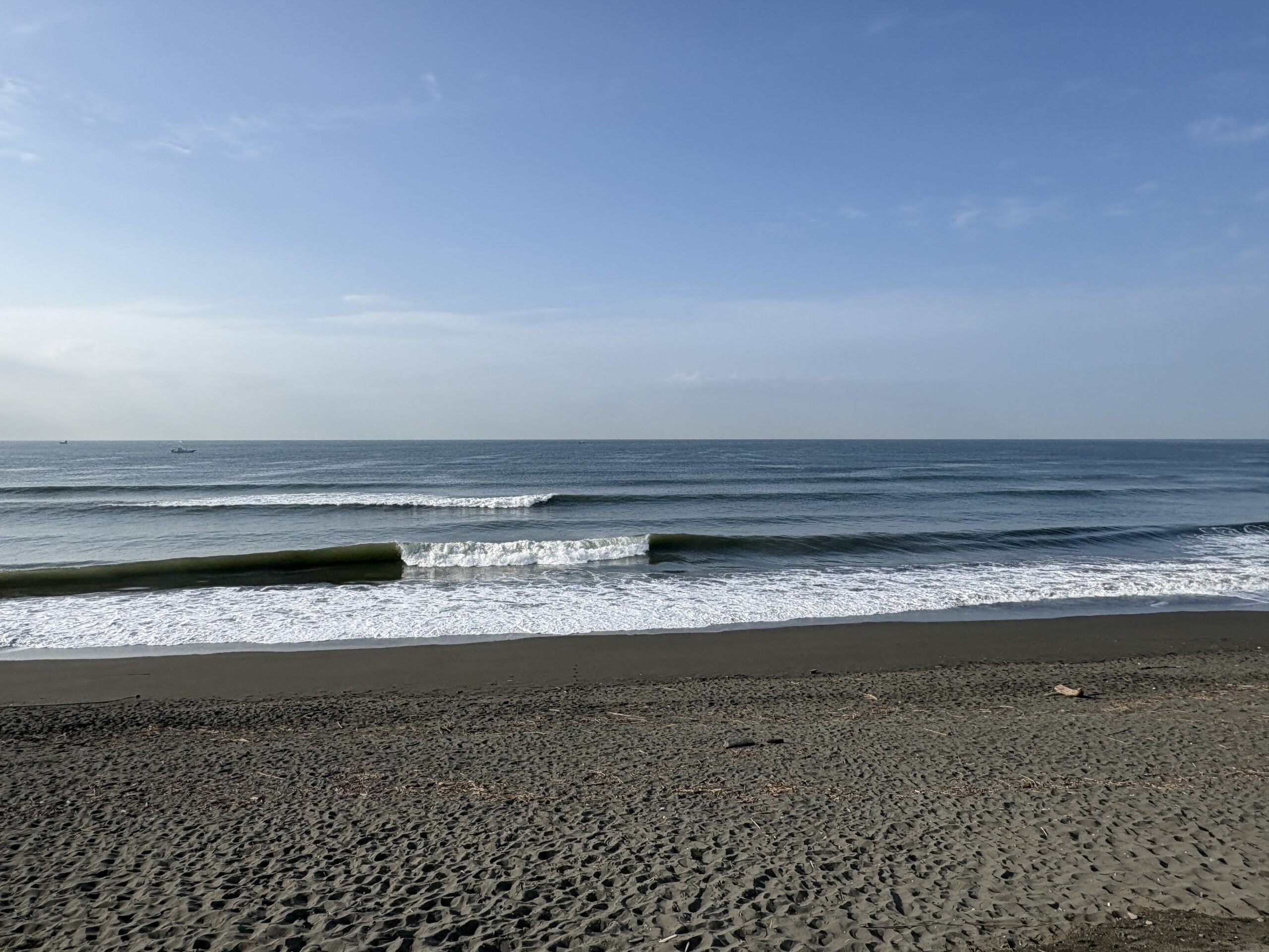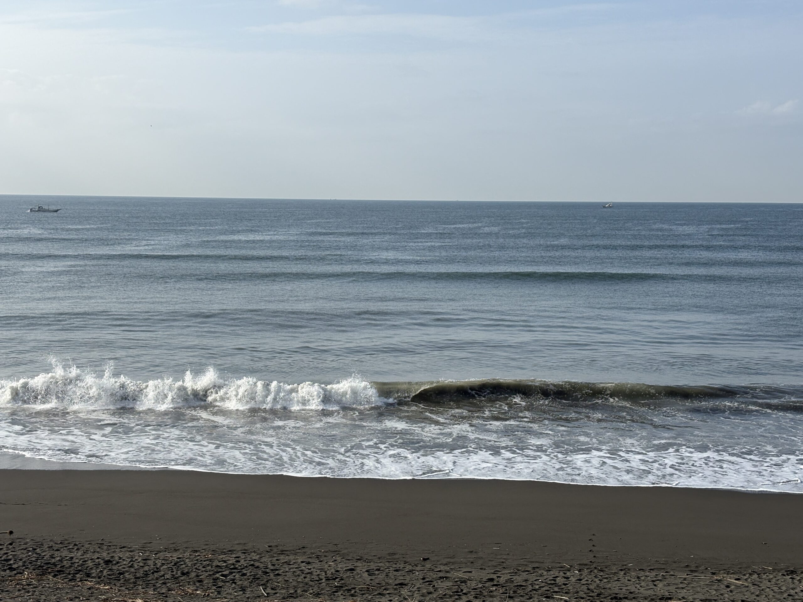 海はしっかりとした筋張ったウネリが入りサイズもそこそこ有りますが、柳島・西浜共の地形が崩れ殆どがインサイドブレイク。稀に入って来たセットが一度だけ沖でブレイクしましたが、幻か?!といった感じで遠浅の地形があるところを探してみた方が良さそうです?!