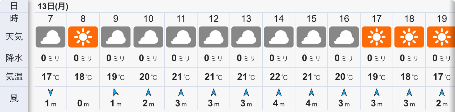 今日の天気は晴れ時々曇りの予報。今朝は緩い北風が吹き晴れで、ポカポカ陽気の気持ちの良い朝です。
