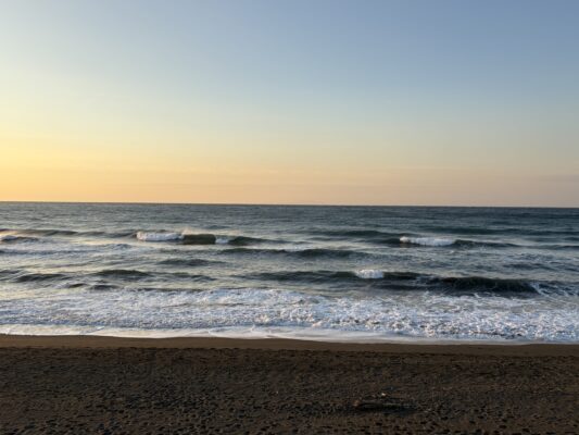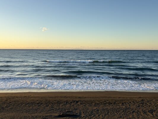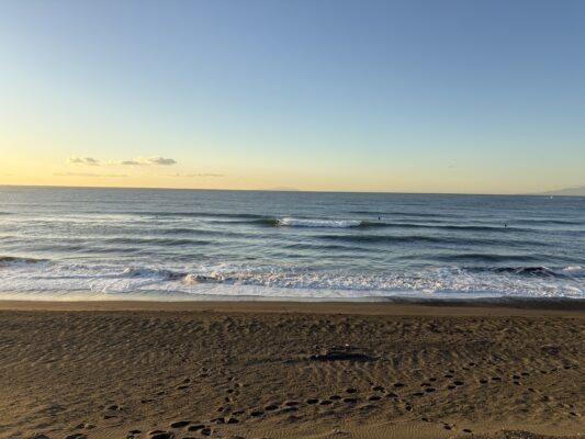 おはようございます。 今日の天気は晴れの予報。今朝は朝日が温かく感じ、風は無風で穏やかな状態の天気です。海はクリーンな海面に腰から腹前後のたまに入るセットで胸近くの波が柳島から西浜までの各所でブレイクしています。 沖で形 [...] [...]