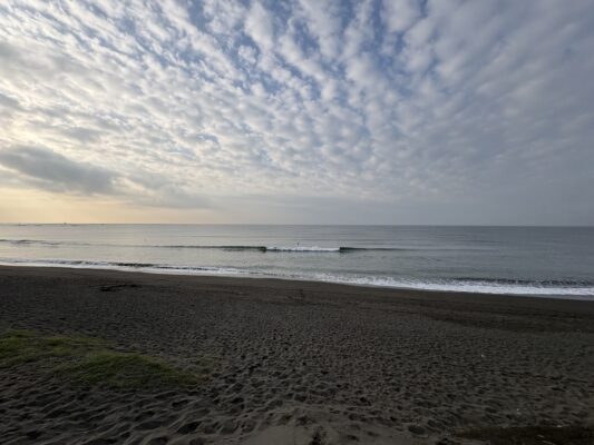 おはようございます。 今日の天気は晴れの予報。今朝の朝日は暖かく感じますが、冷たい北寄りの風が吹きやや寒い朝です。海は筋張った小さなウネリが入りますが、午前中は潮が多くインサイドブレイク。今日は午後の夕方に掛け潮が引いて [...] [...]