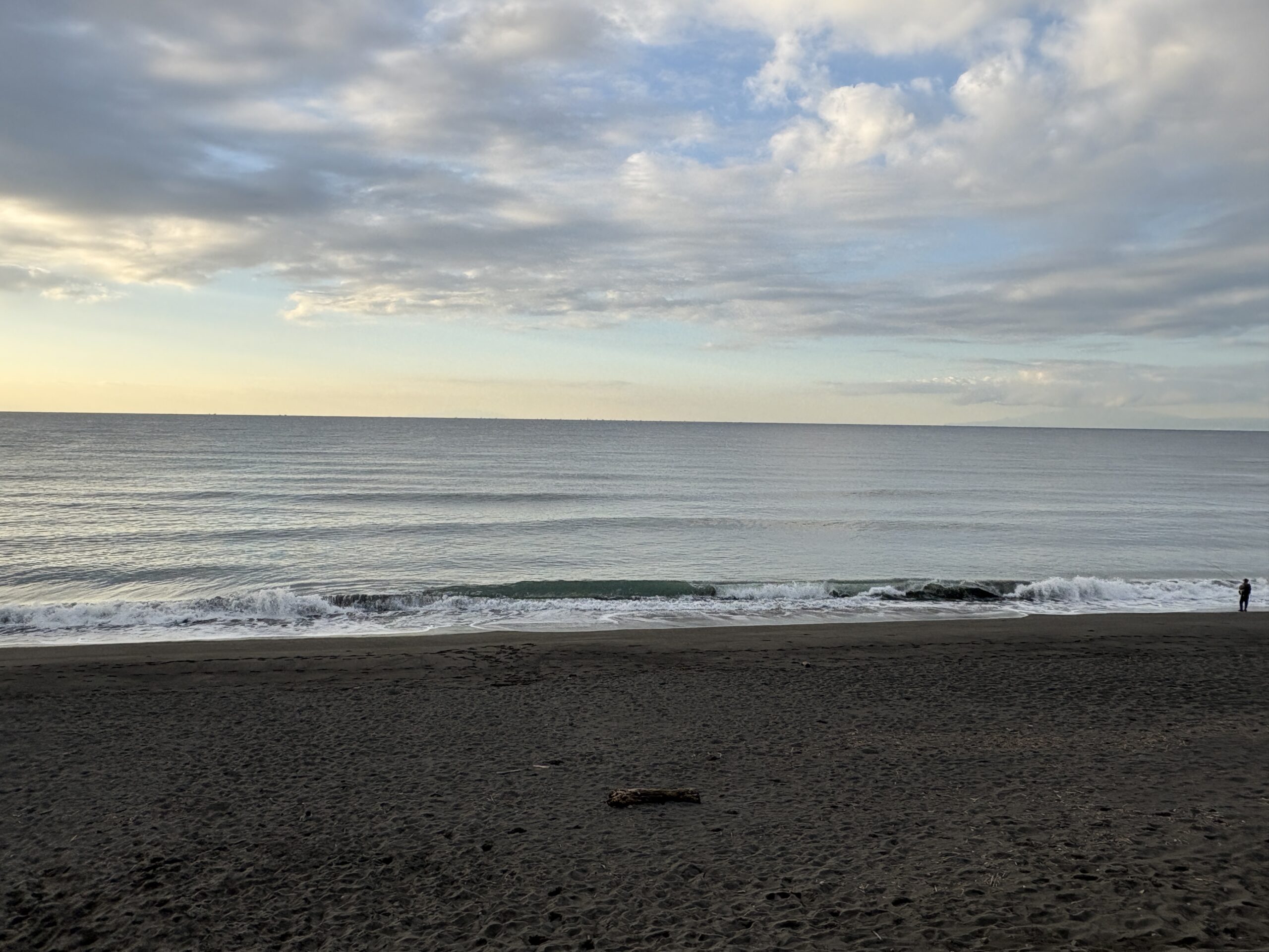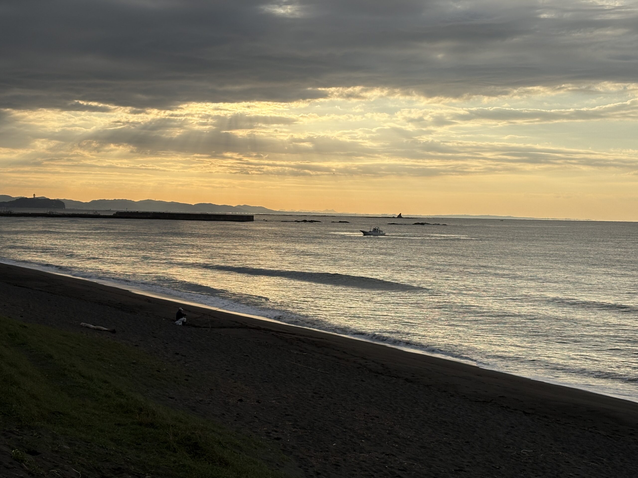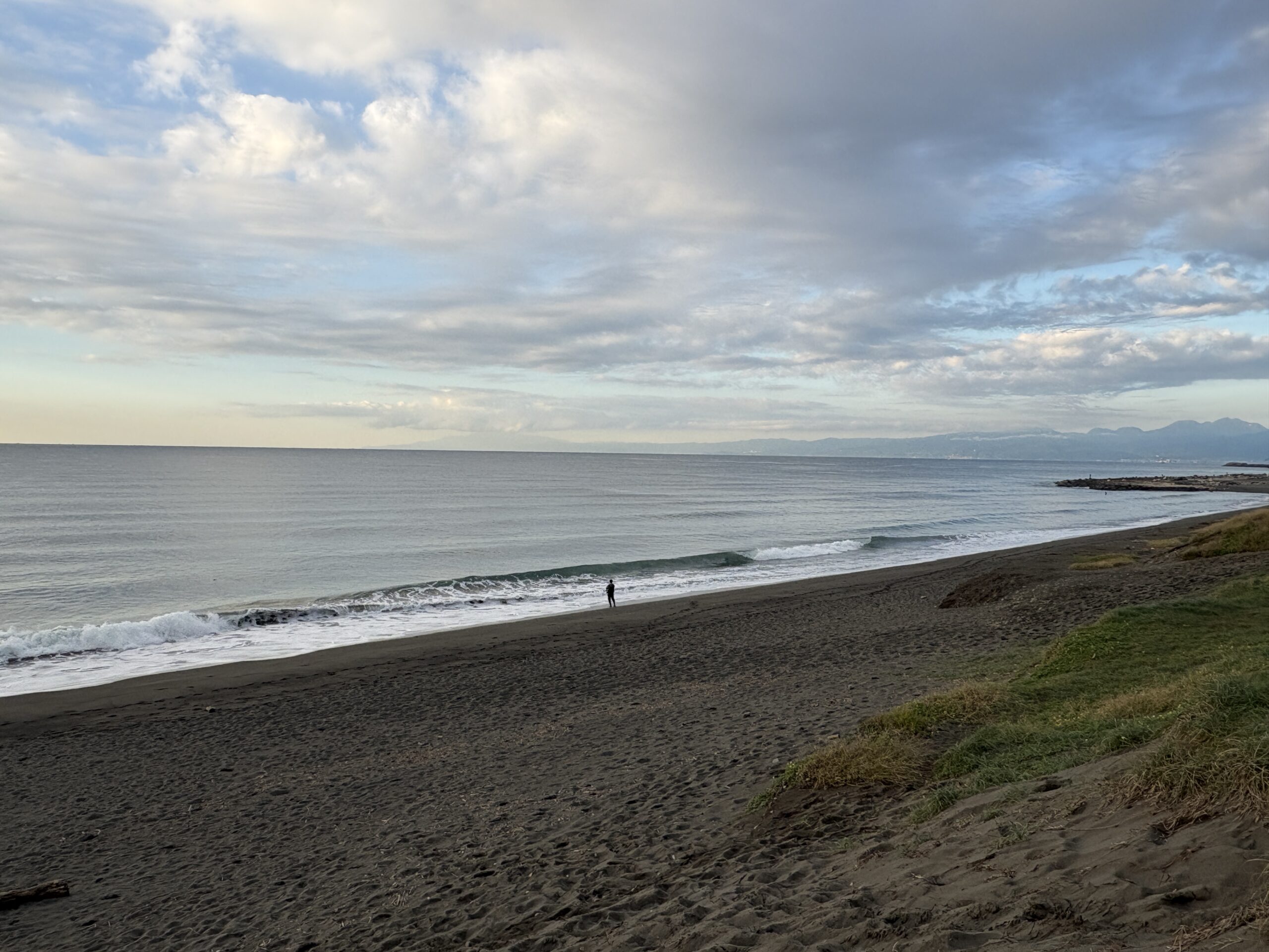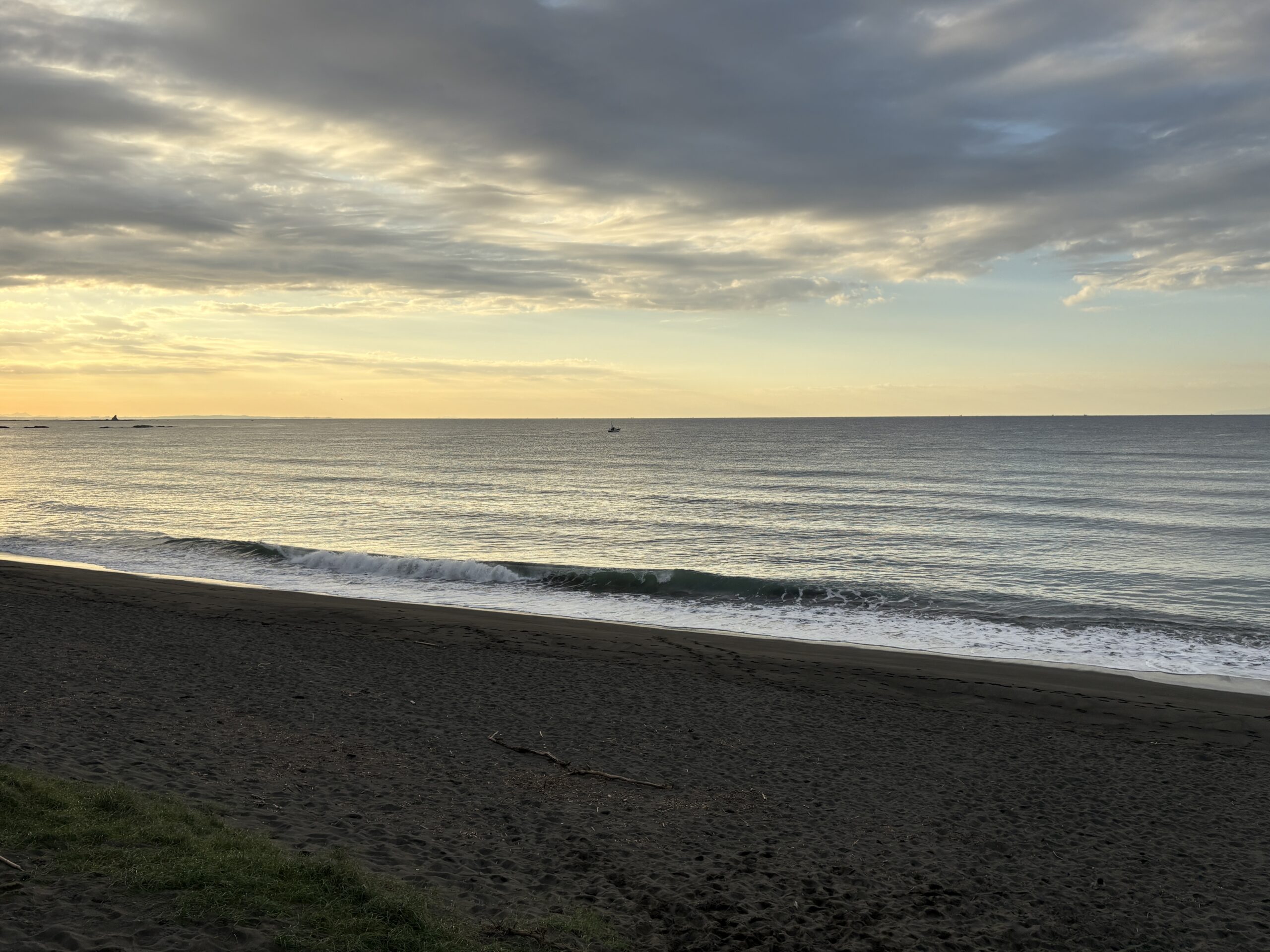 海はウネリの間隔が狭い膝前後のウネリが入りますが、沖で割れ辛くインサイドブレイクで、夜明け時から入っているカリフォルニア・ポケのテッペイ君曰く、やや潮が引いた夜明け時から割れ辛かったとの事。