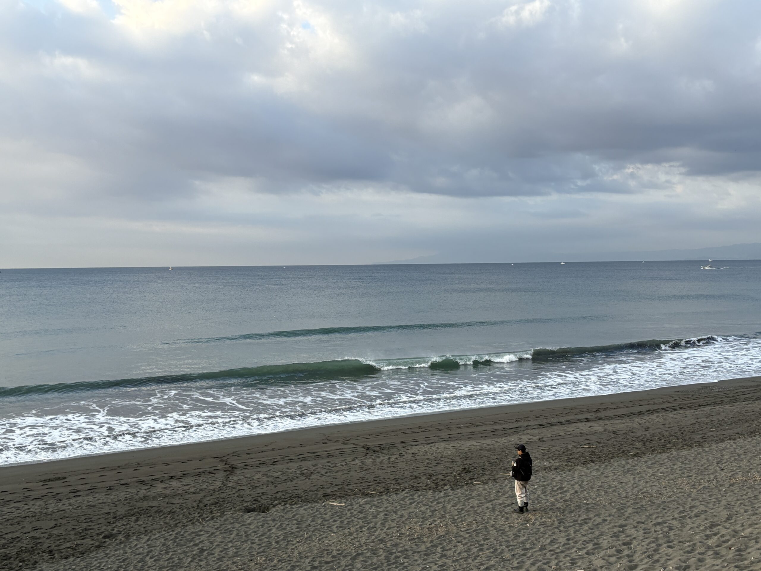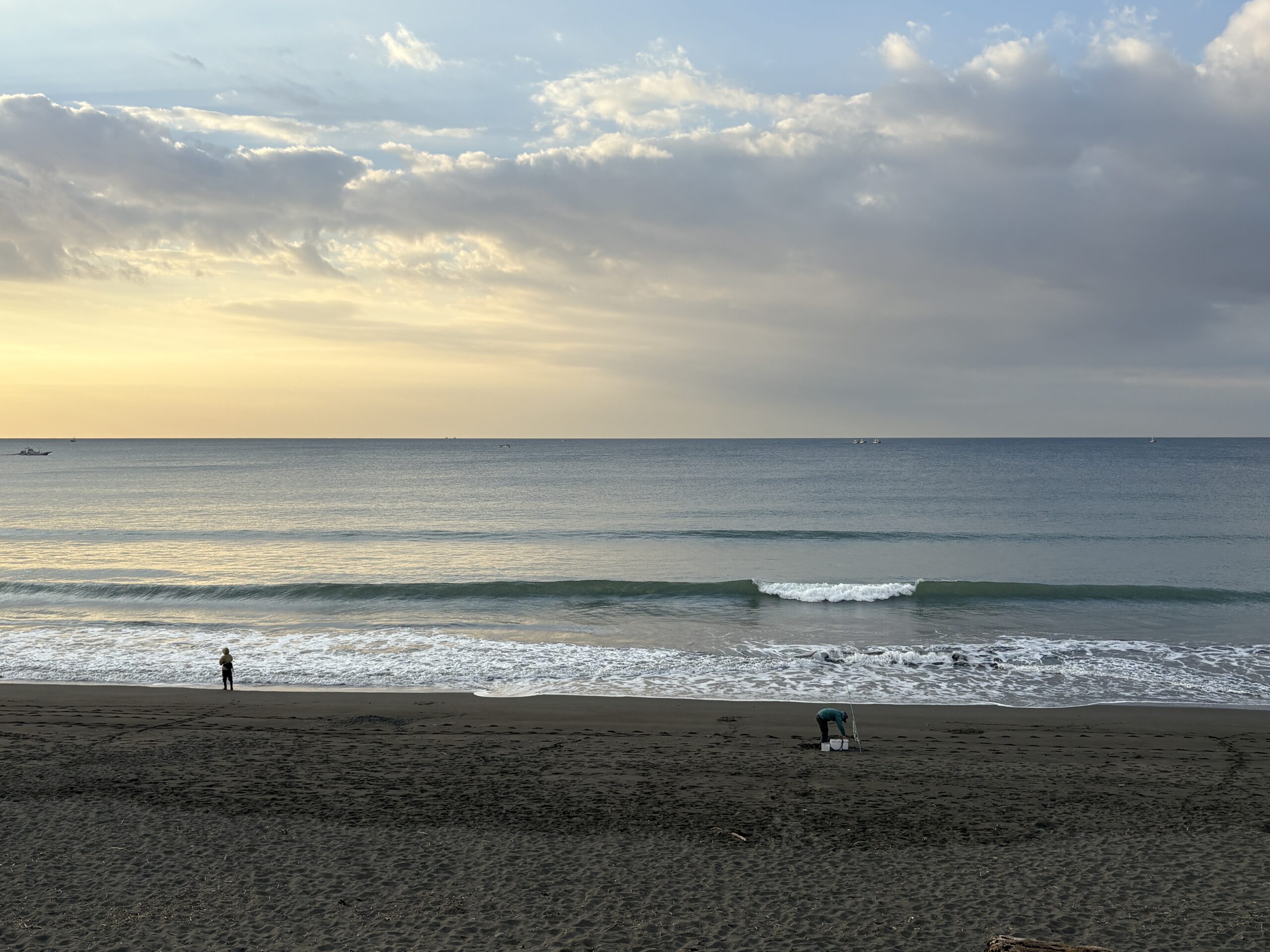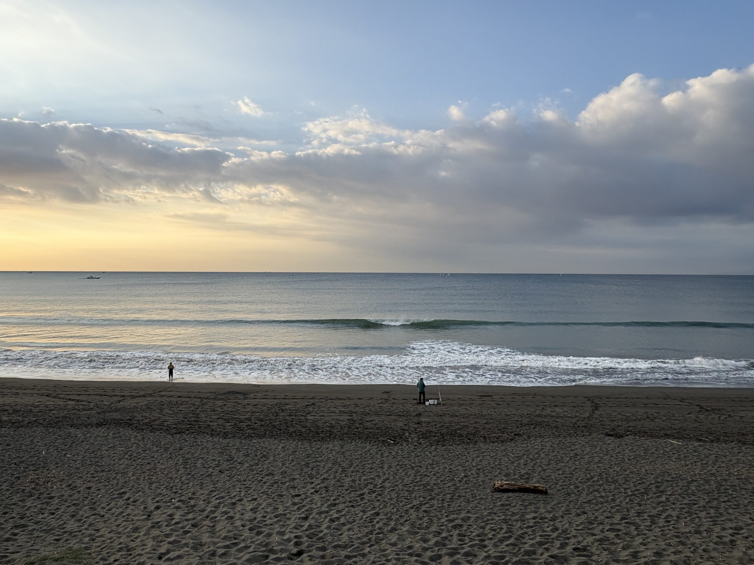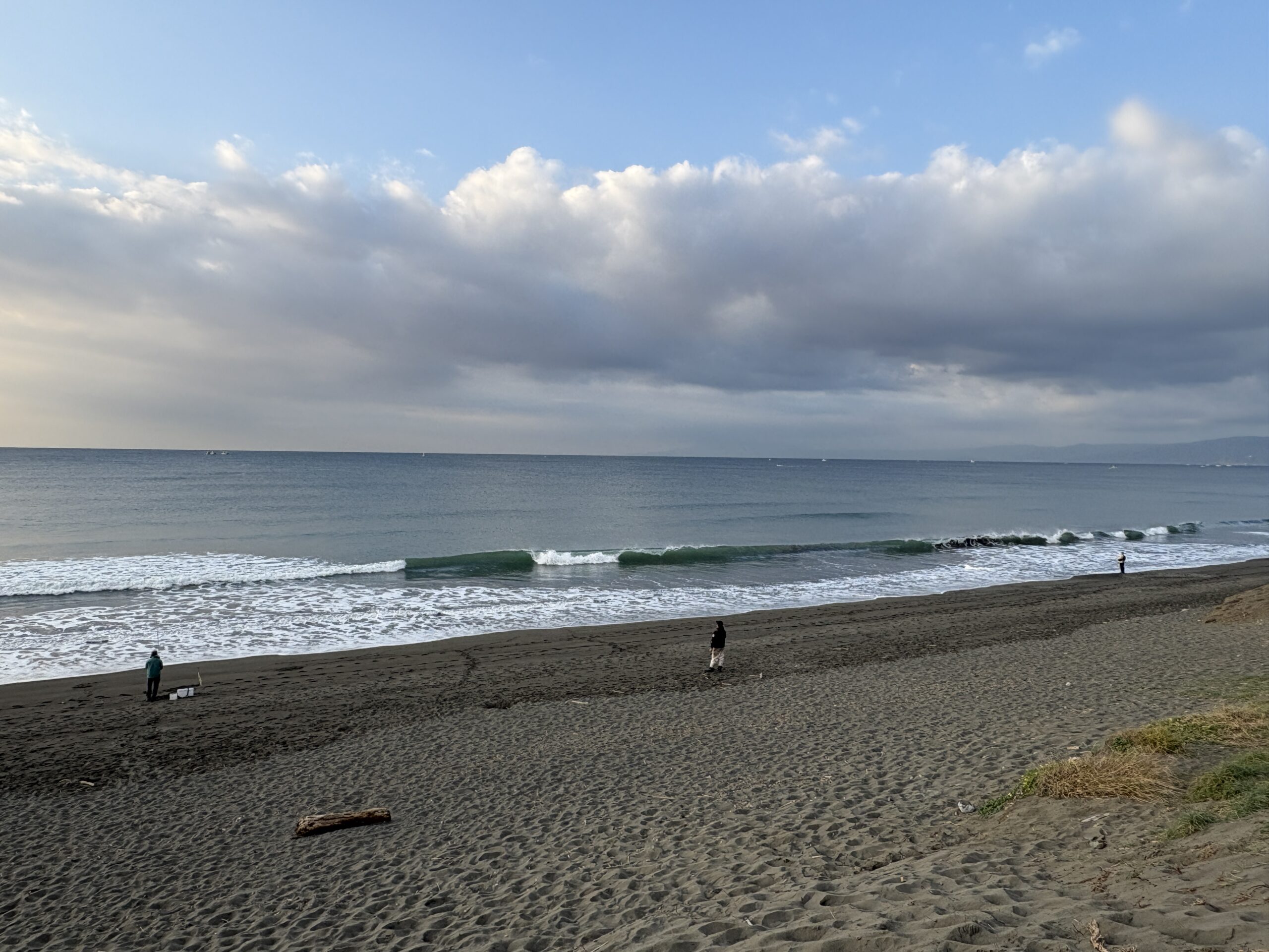 海は筋張った膝近くのウネリが入り、朝イチは潮が引いているので何とかテイクオフ出来ています。
