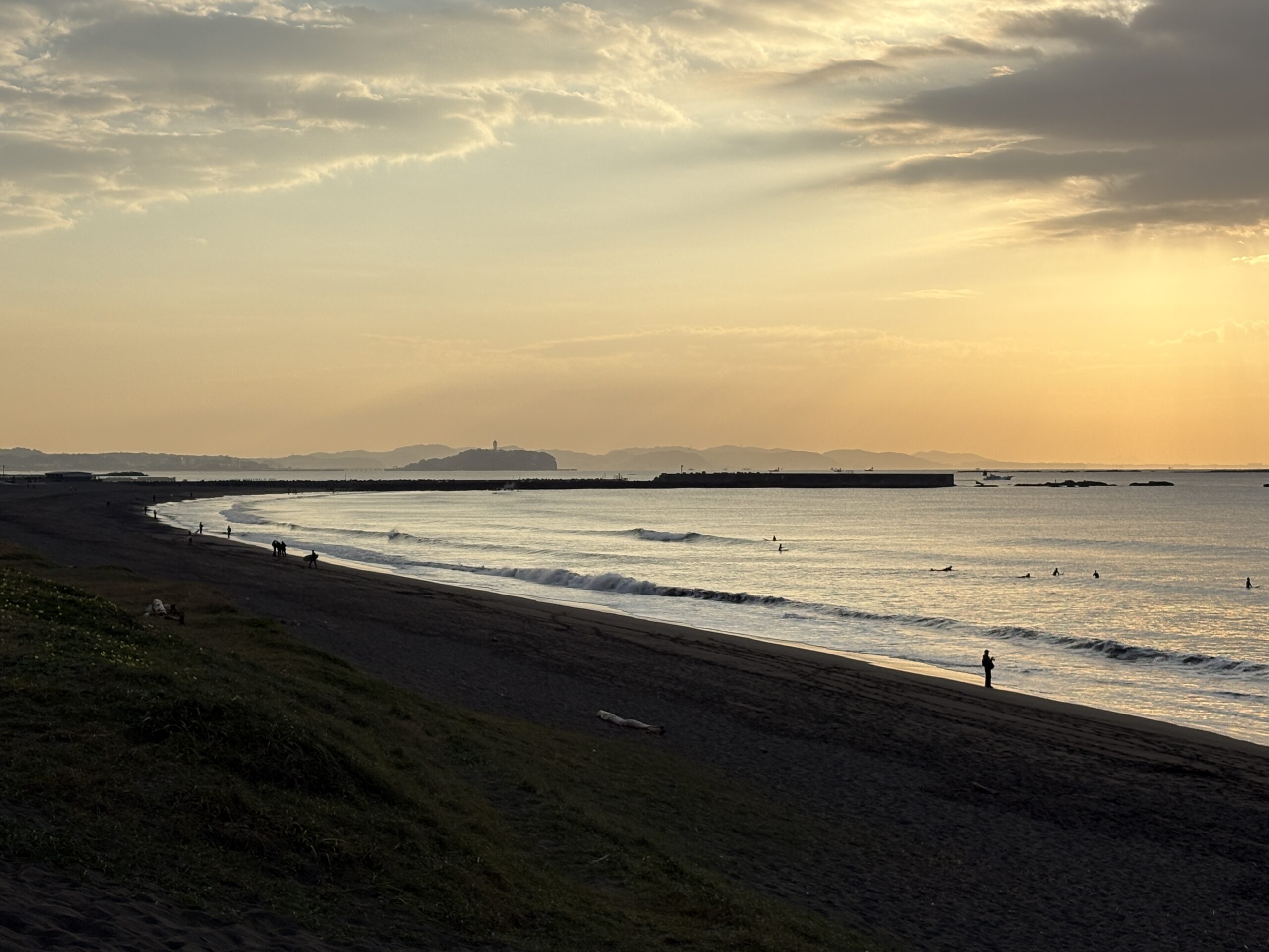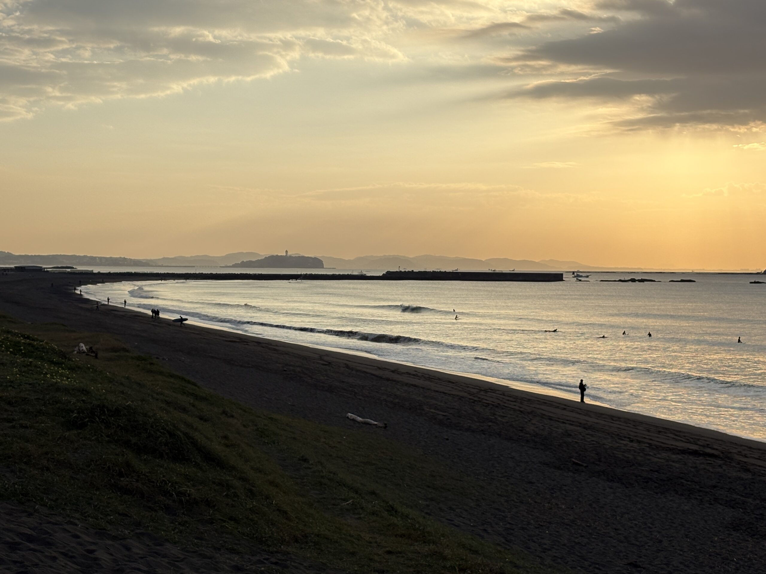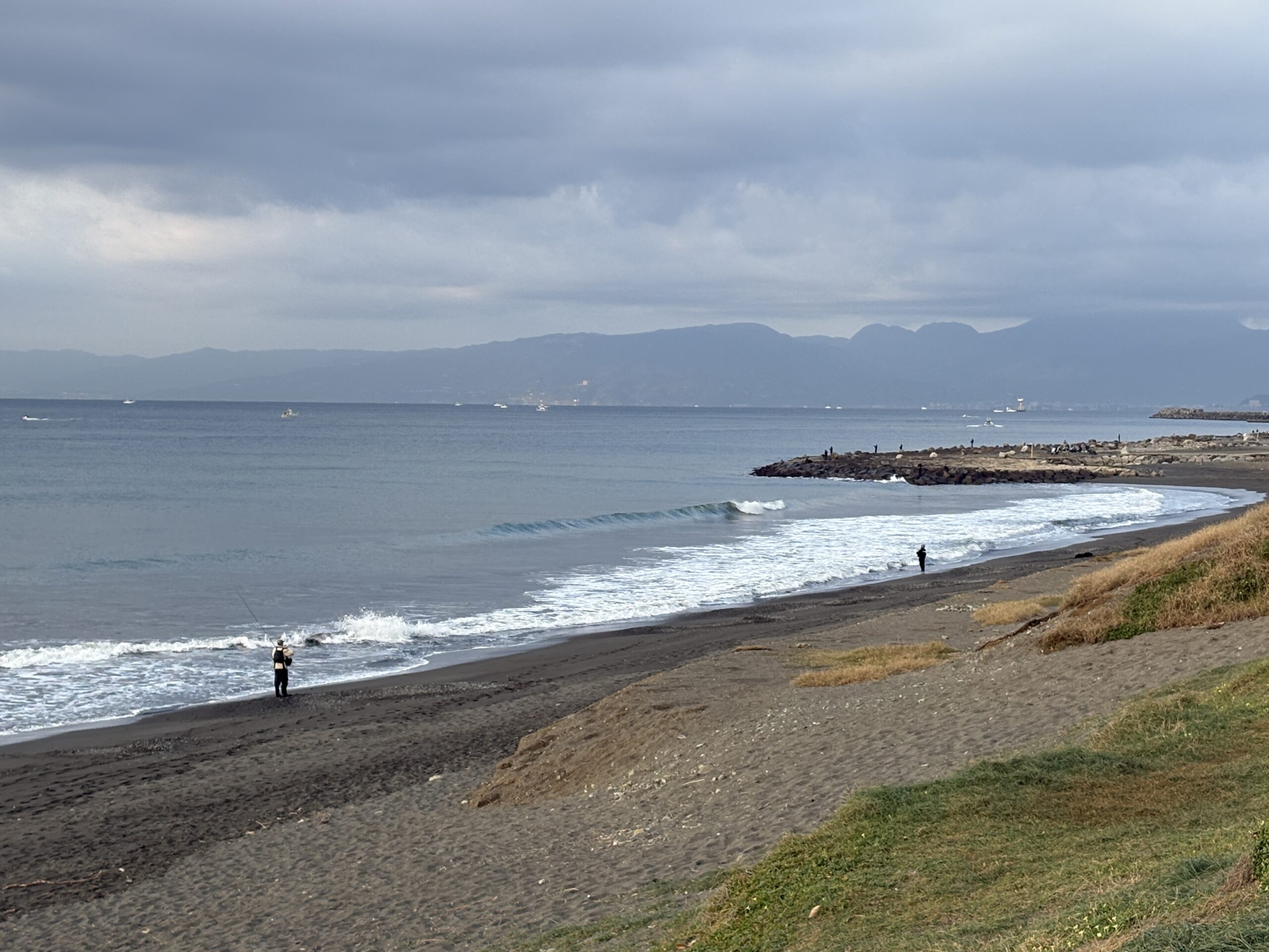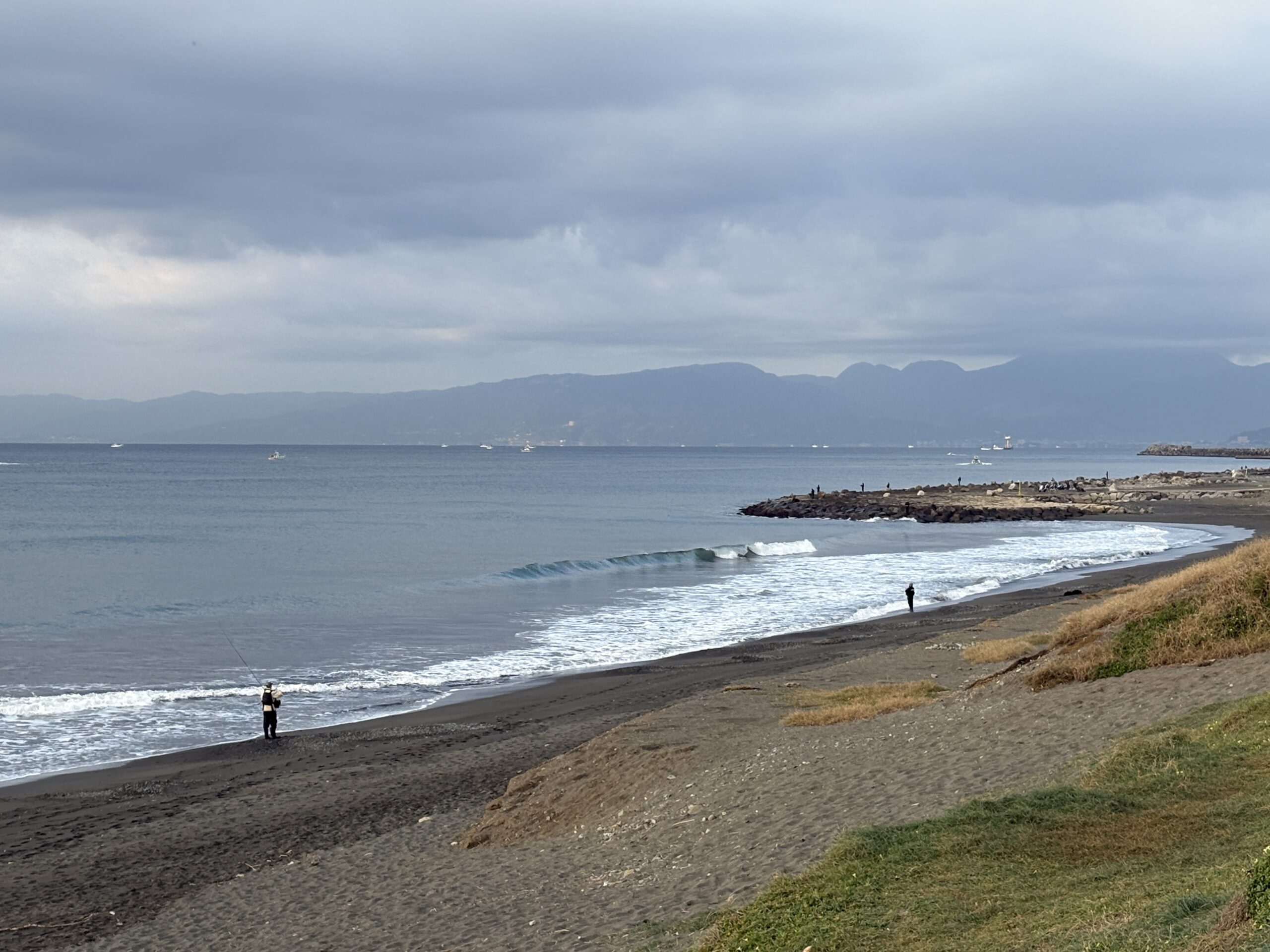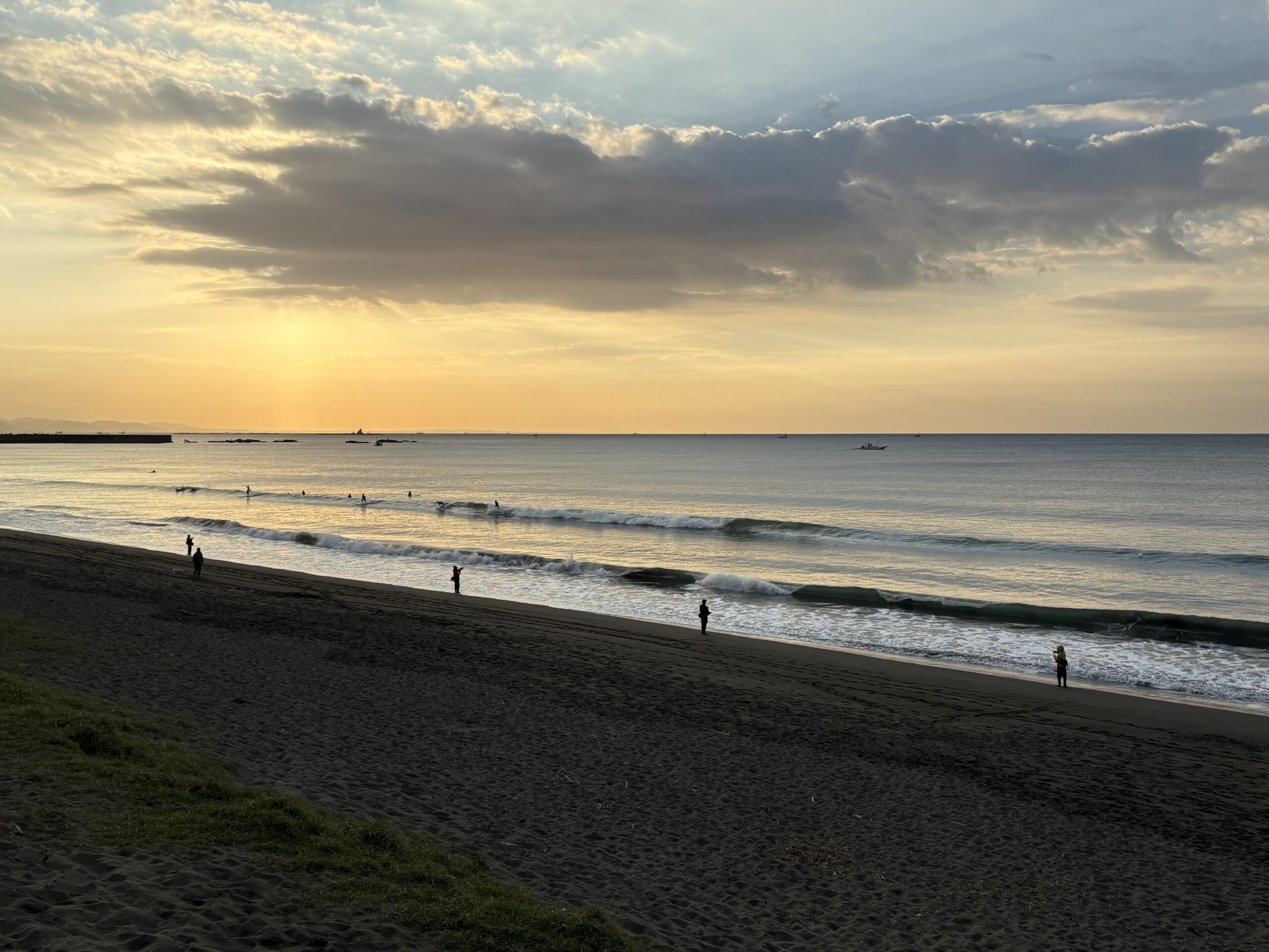 海は筋張った膝近くのウネリが入り、朝イチは潮が引いているので何とかテイクオフ出来ています。
