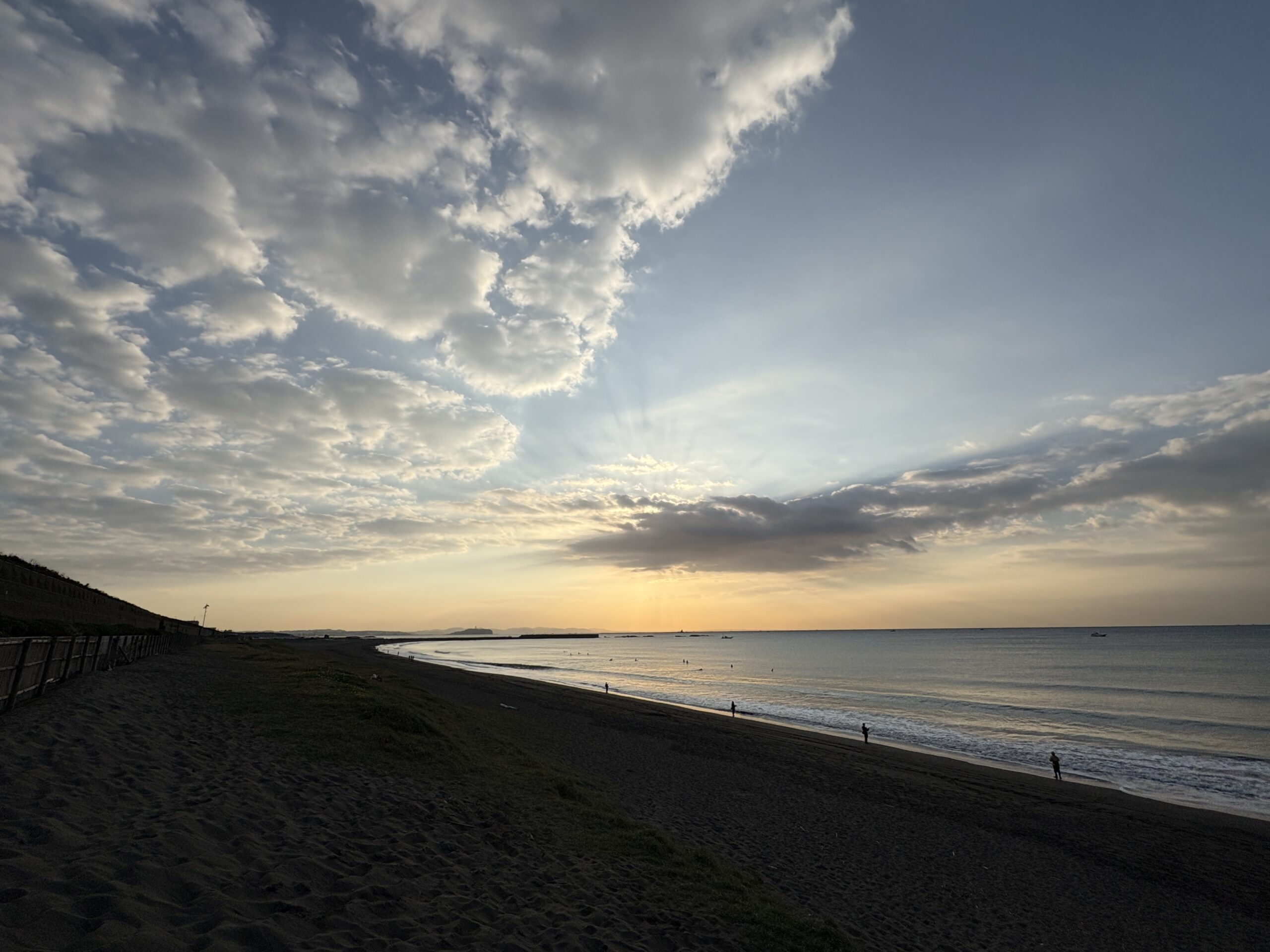今日の天気は晴れの予報。今朝は朝日が雲に隠れ冷たい北風が吹き肌寒い朝です。