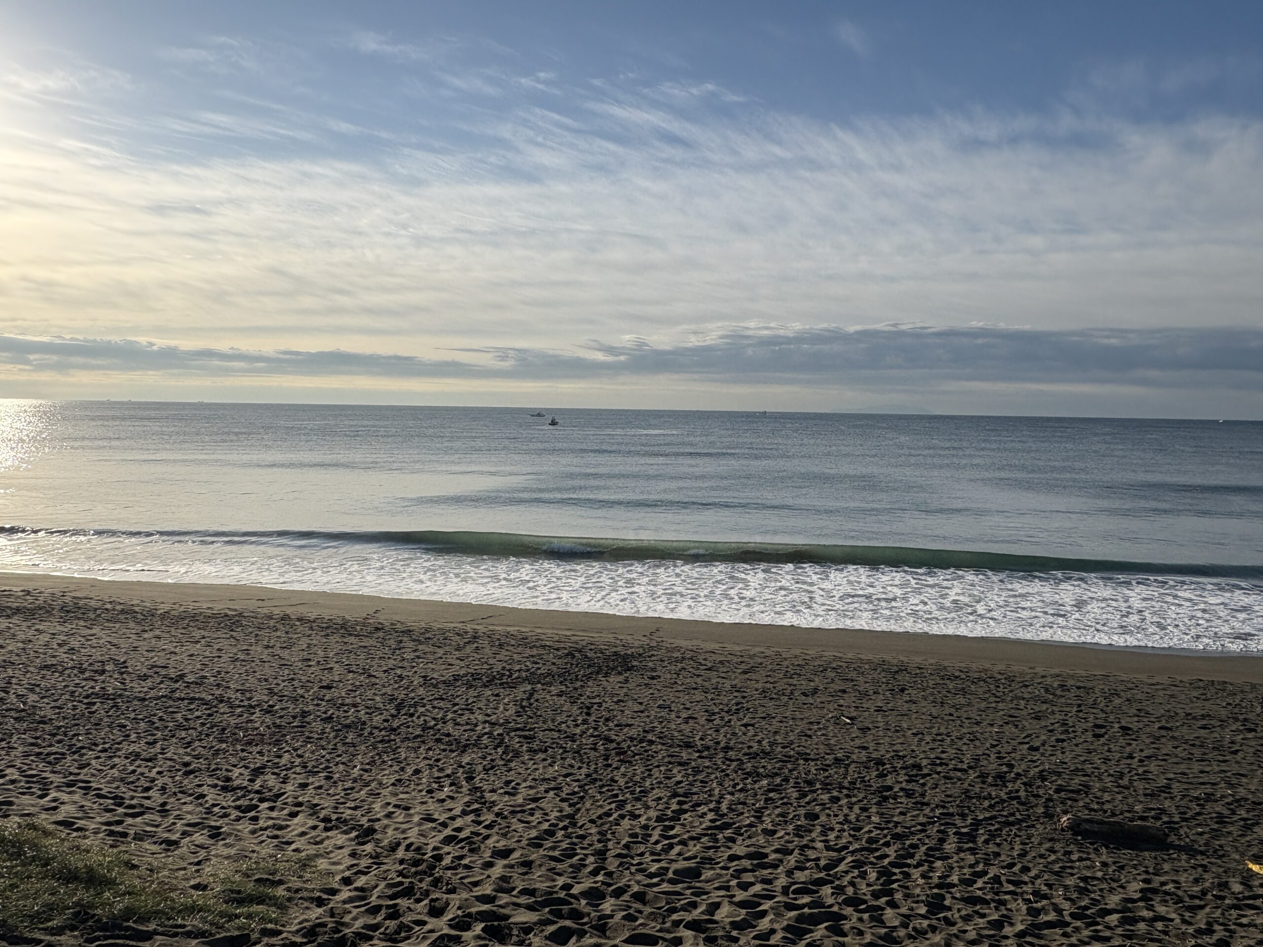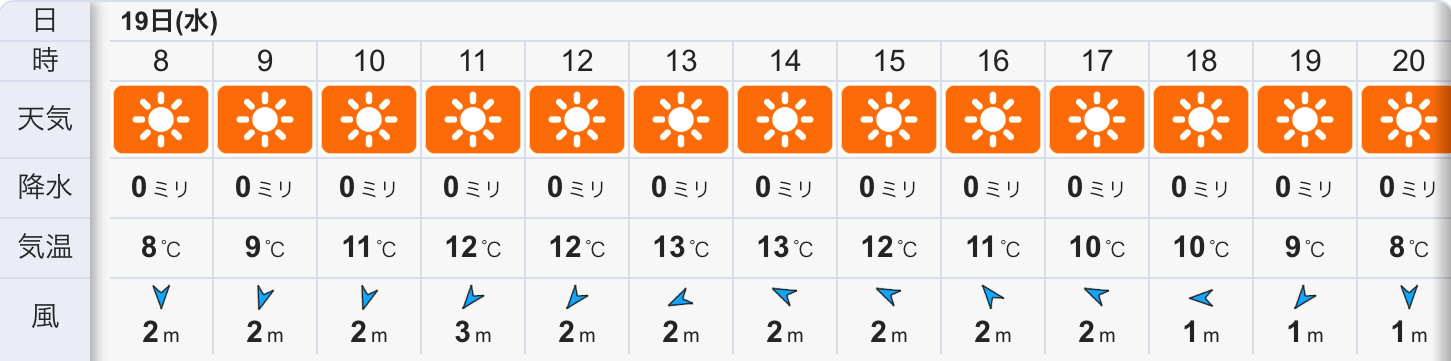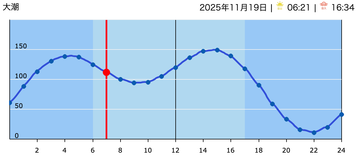 今日の天気は晴れの予報。今朝は晴れて気持ちの良い天気ですが、一桁台の気温でかなり冷えた朝です。海は筋張った膝前後のウネリが入りますが、インサイド寄りのブレイクで厳しい感じの波です。 本日のタイドグラフ。今日は最高気温も13℃と寒い1日になりそうです?!