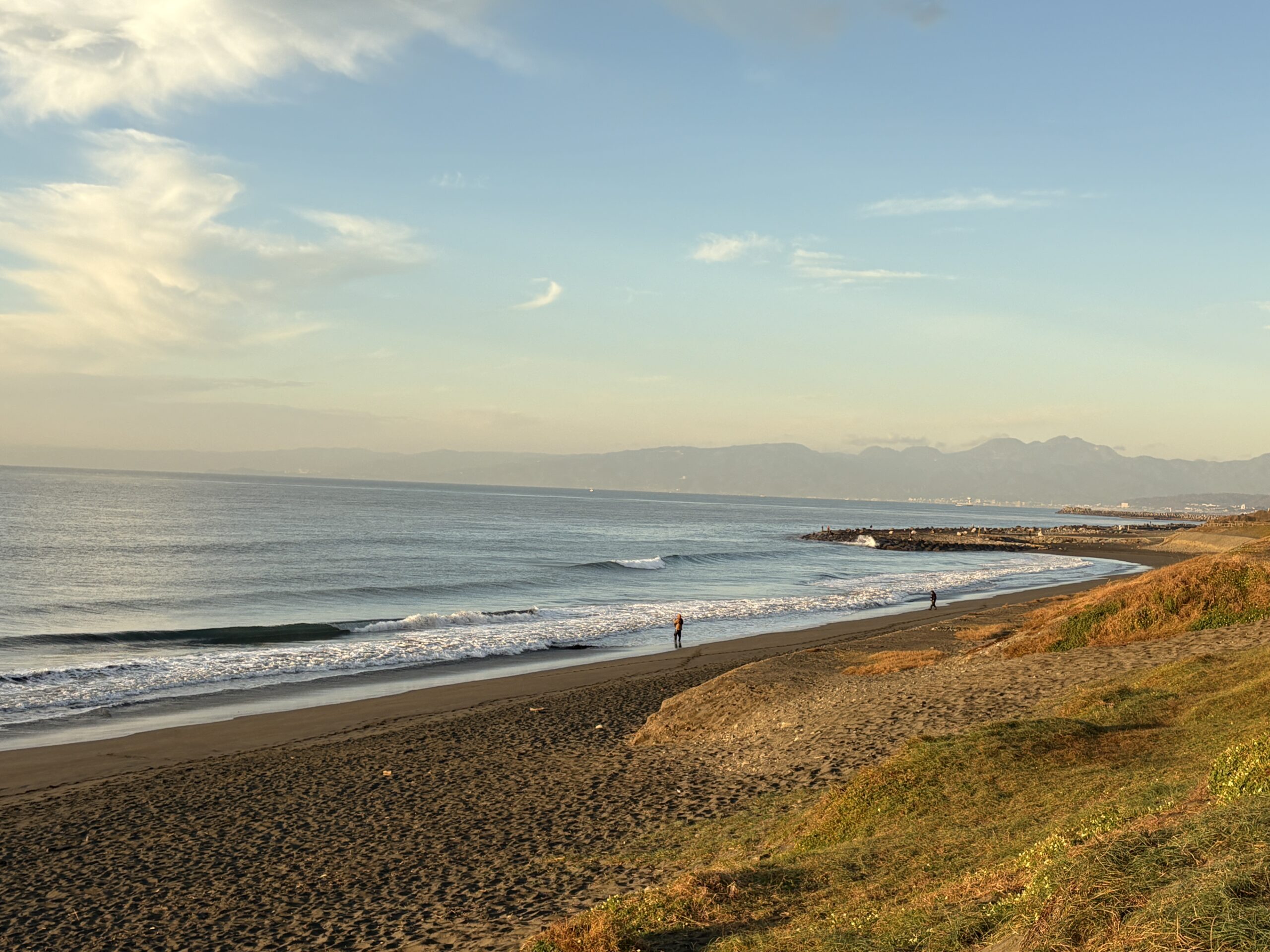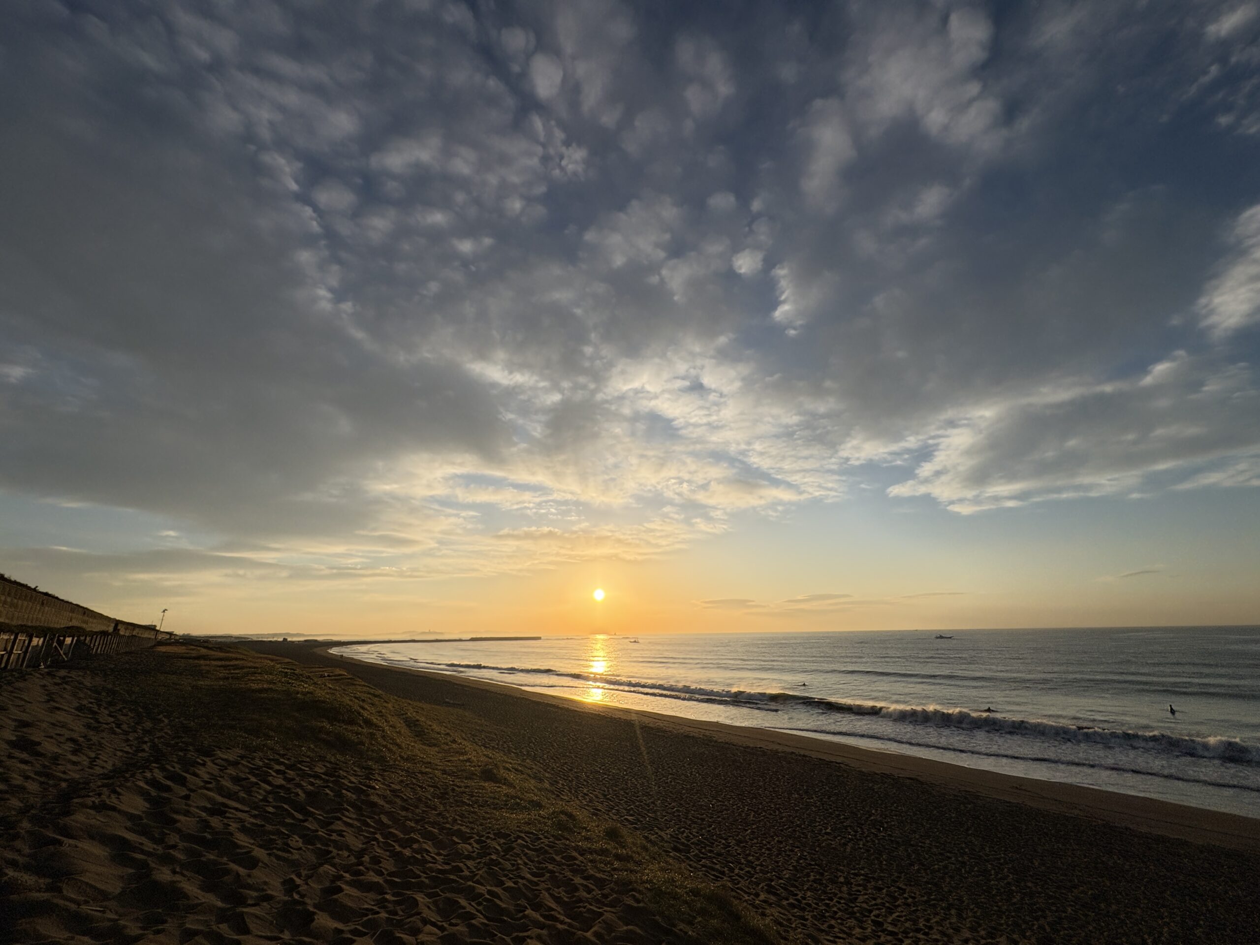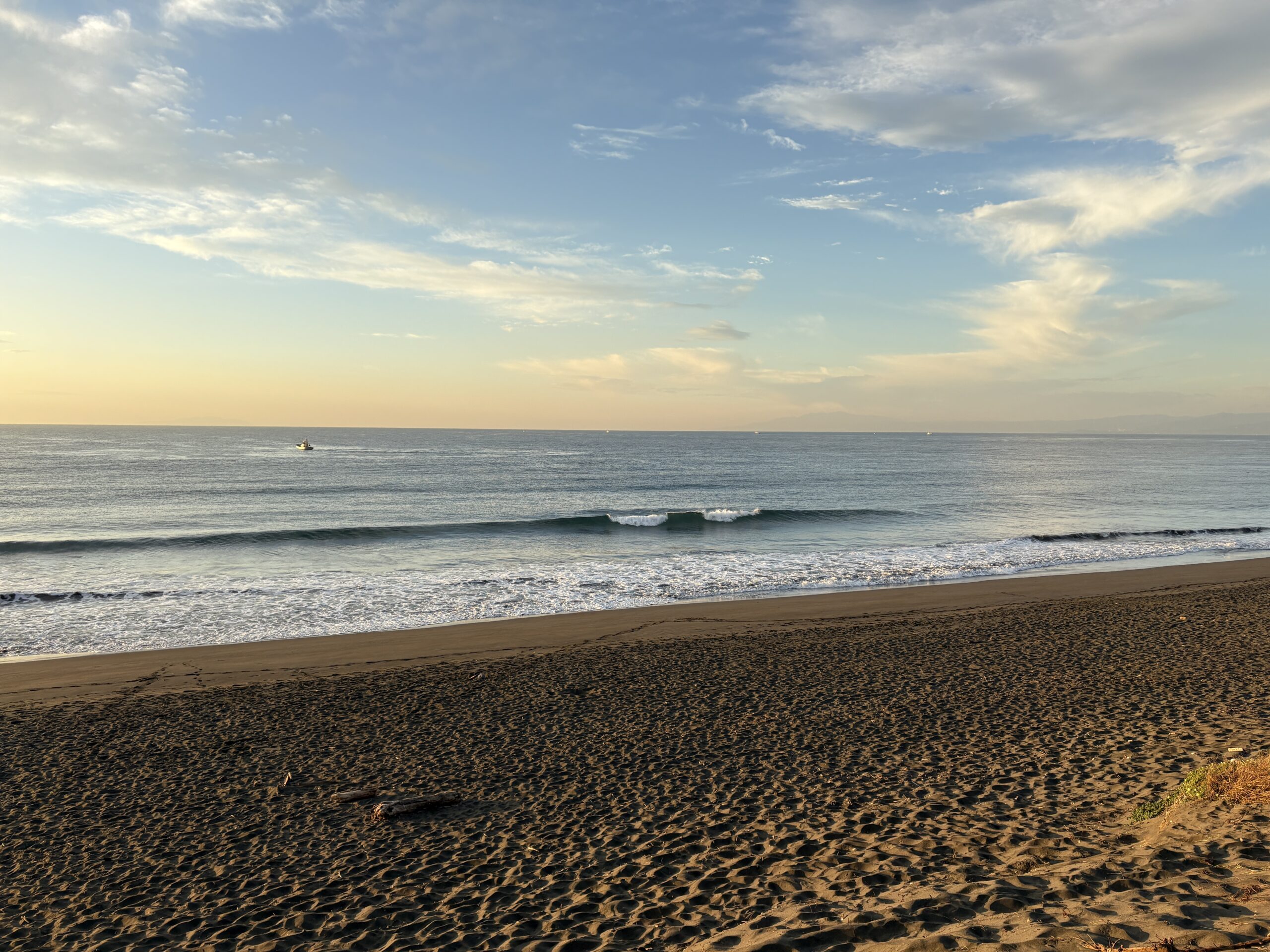 海は筋張った膝からモモ前後のウネリが入り、朝は辛うじて潮が引いているのでブレイクしていますが、インサイド寄りのショートライドな感じです。