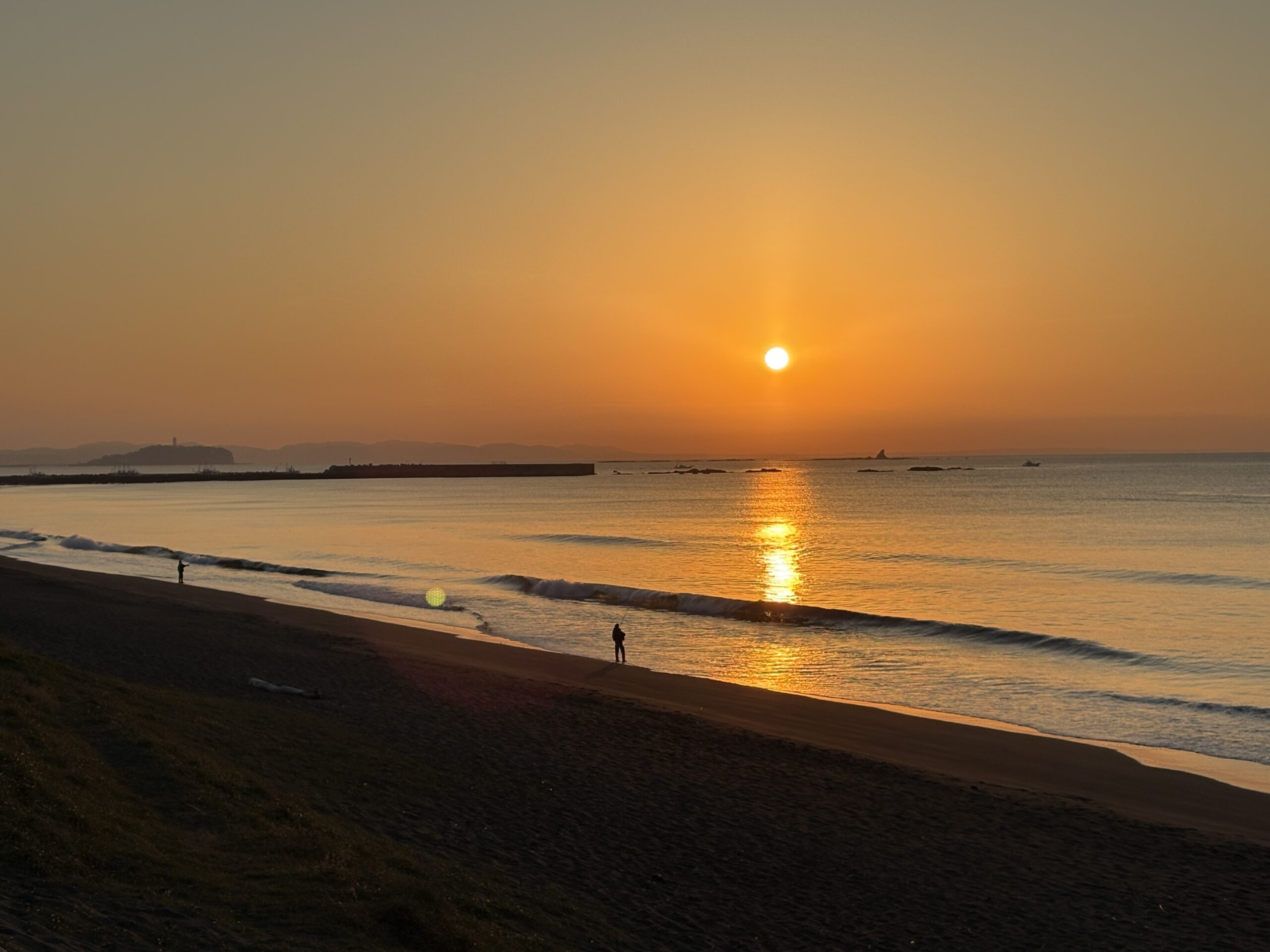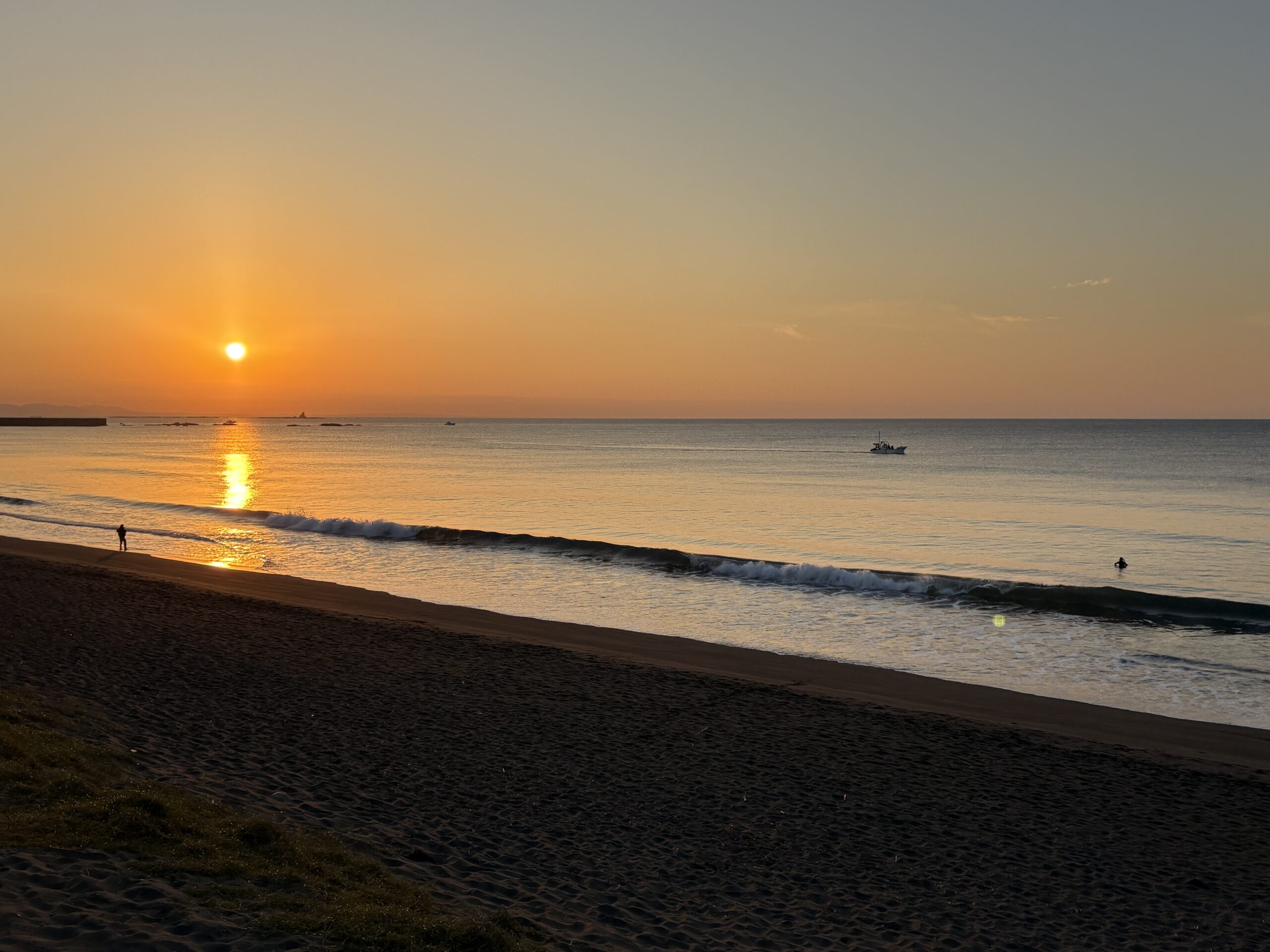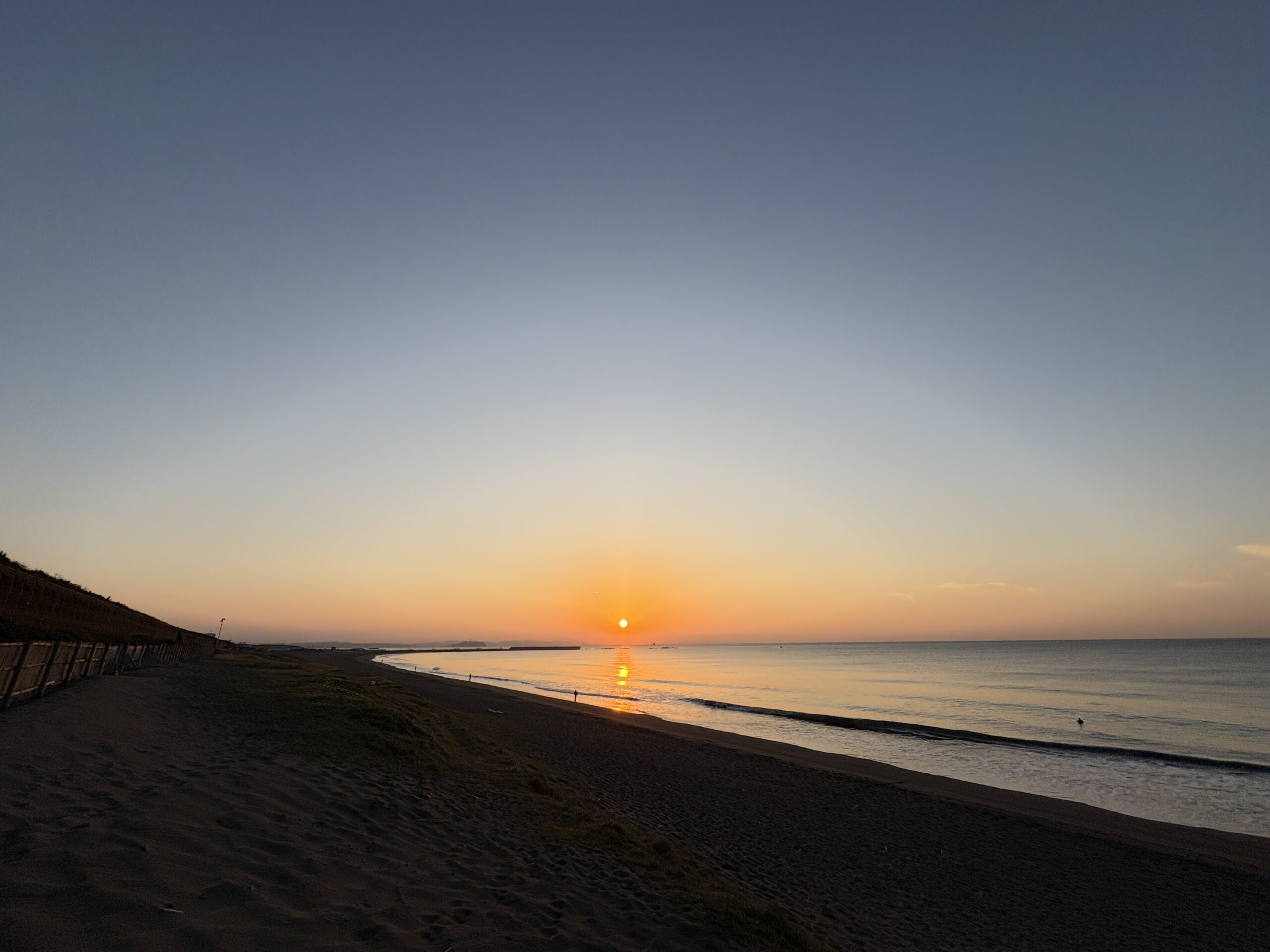 今日の天気は晴れのち曇りの予報。今朝は緩い北風の上空はブルースカイが広がり朝焼けがとても綺麗な朝でした。