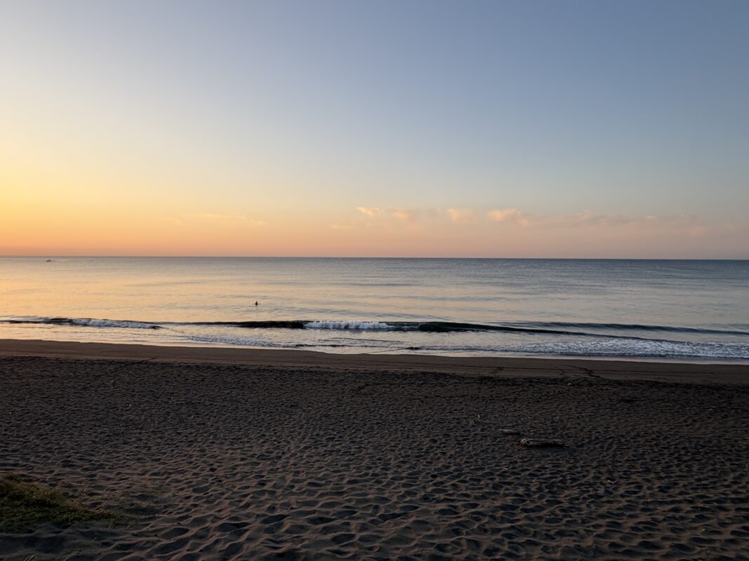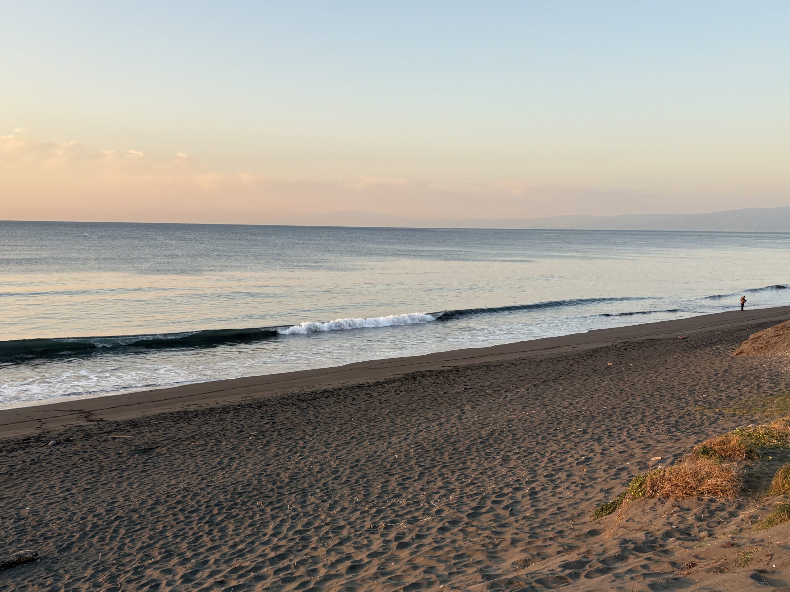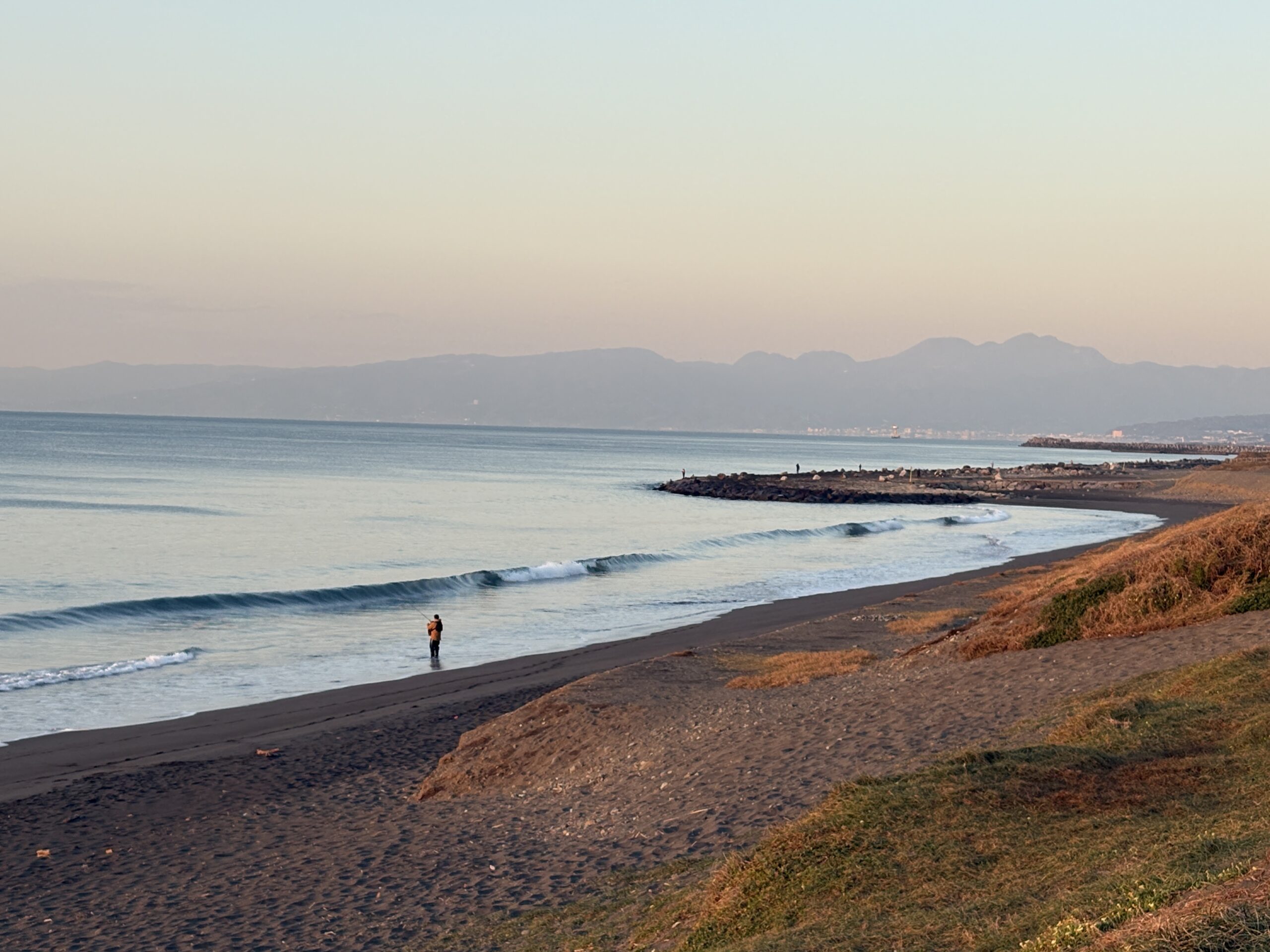 海は筋張ったスネから膝くらいのウネリが入る程度で、店前にて1名のサーファーが入っていましたが全く乗れておらず、インサイドのショアブレイクの厳しいコンディションです。