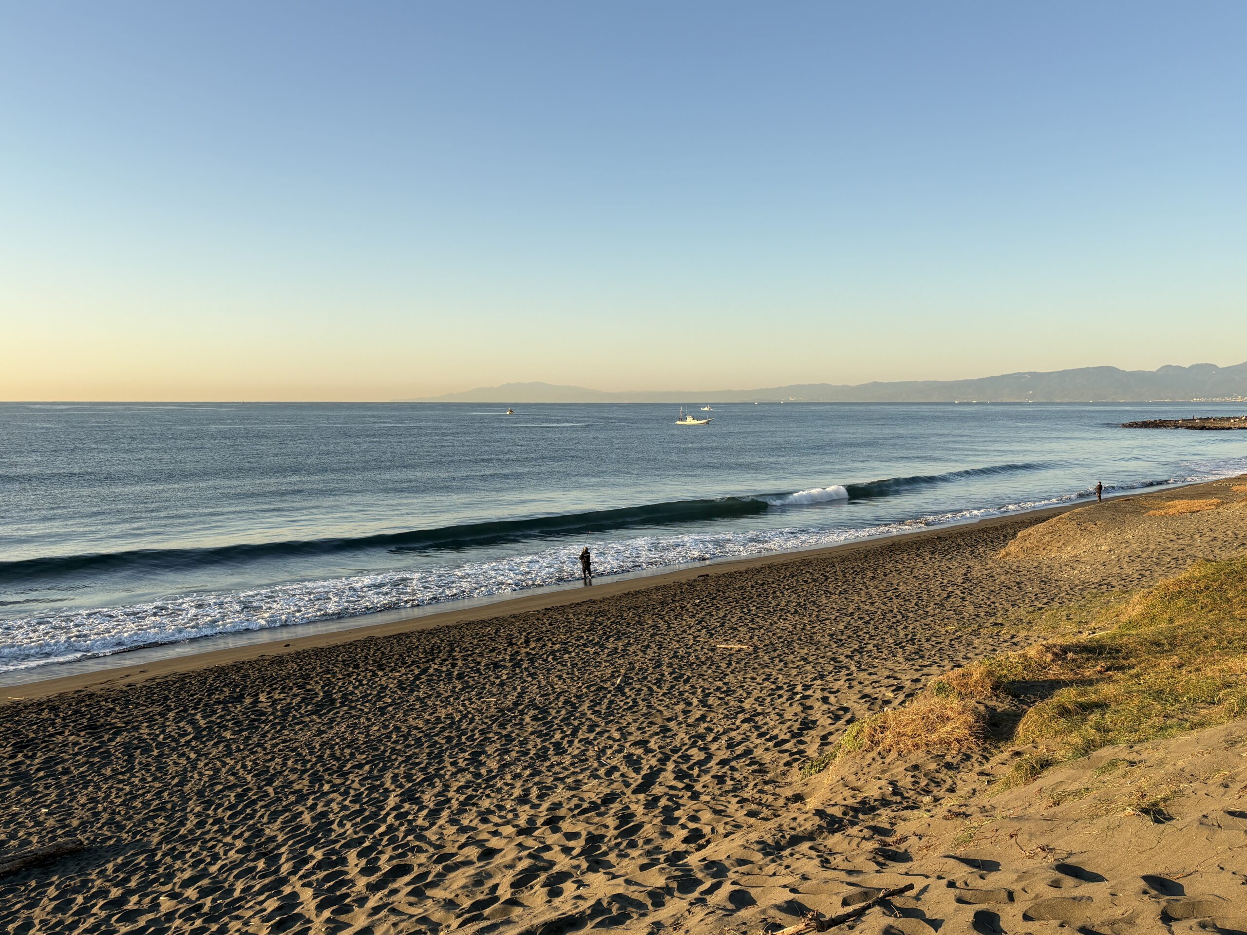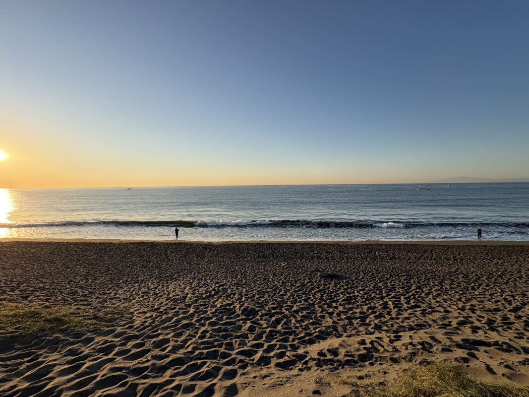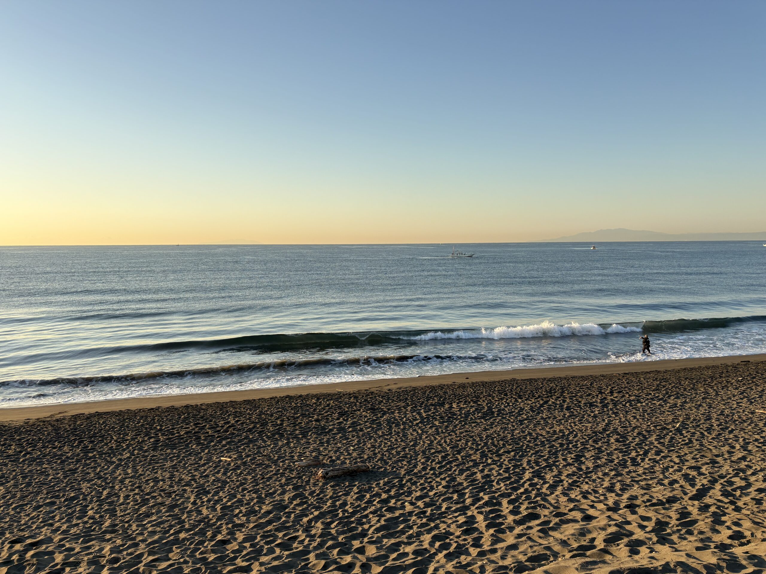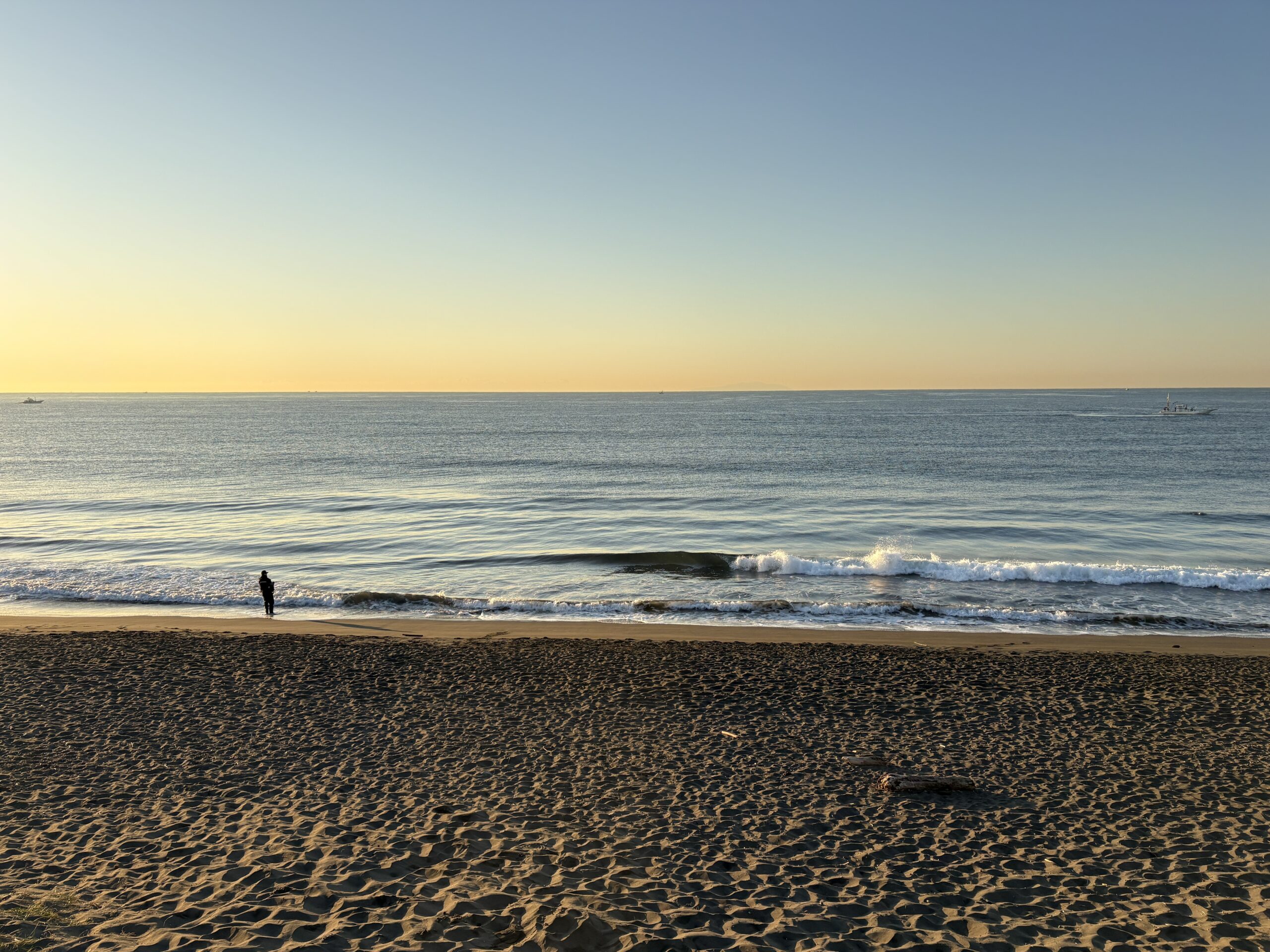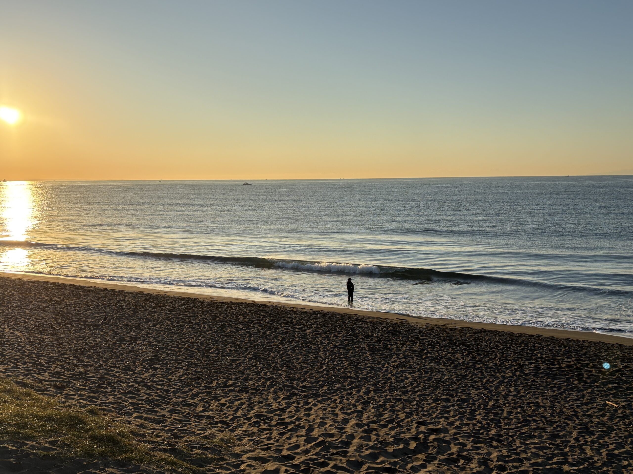 海は筋張ったスネから膝近くのウネリが入る程度のスモールコンディションで、朝は潮が上げているのでインサイドのショアブレイクです。