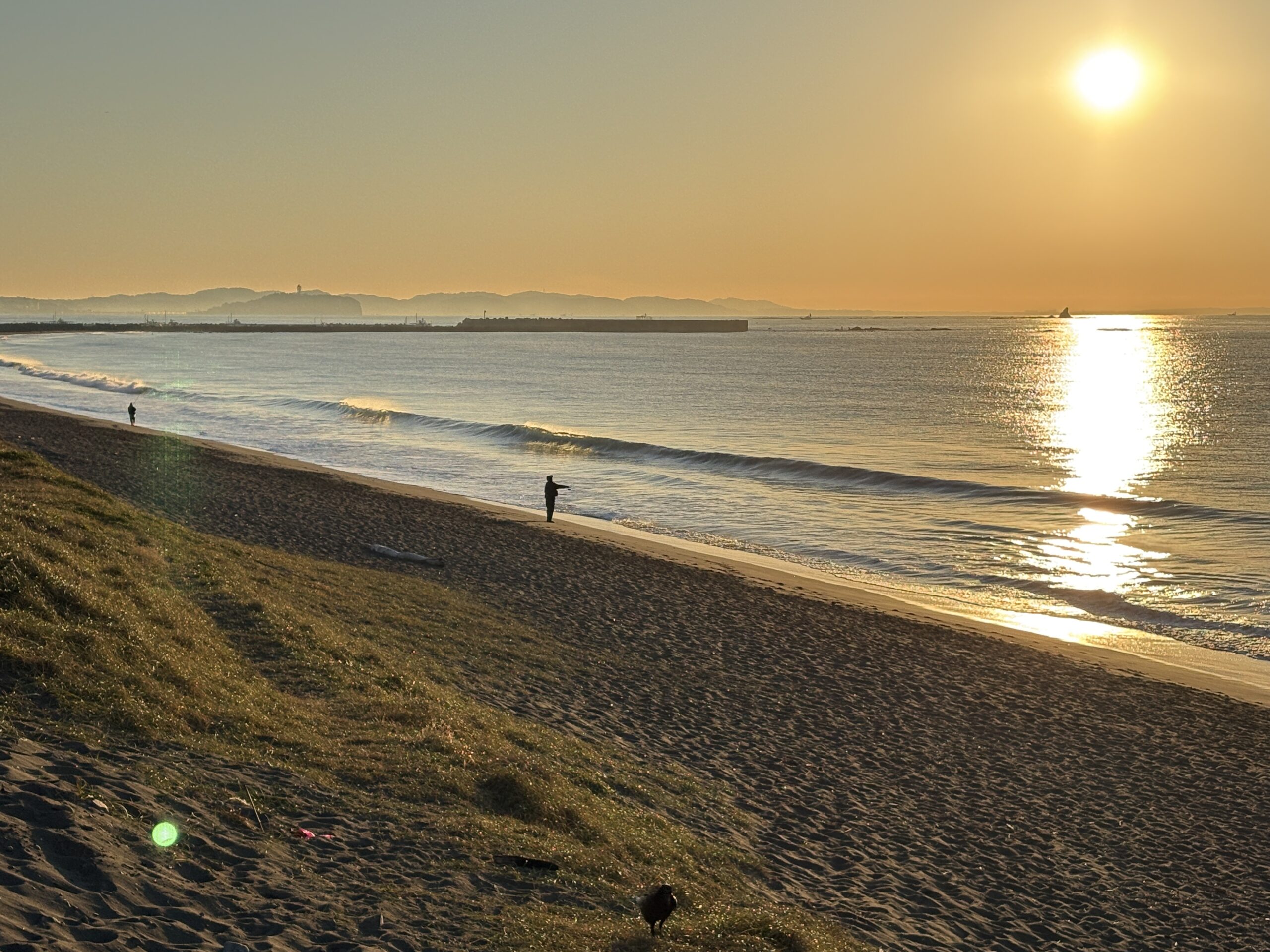 お昼頃の若干潮が引いたタイミングで柳島看板前の地形がマシなので、初心者のテイクオフの練習が出来るかも知れませんが、気温の上昇したお昼位から南風が吹いて来る予想です?!