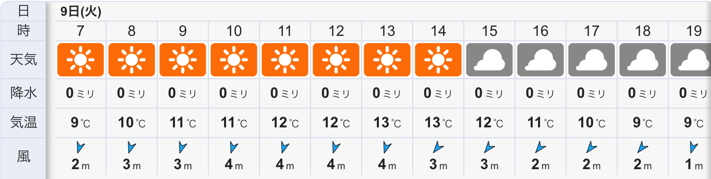 今日の天気は晴れのち曇りの予報。今朝は緩い北風が吹いて肌寒い朝で、日中も気温が上がらず寒い1日になりそうです。