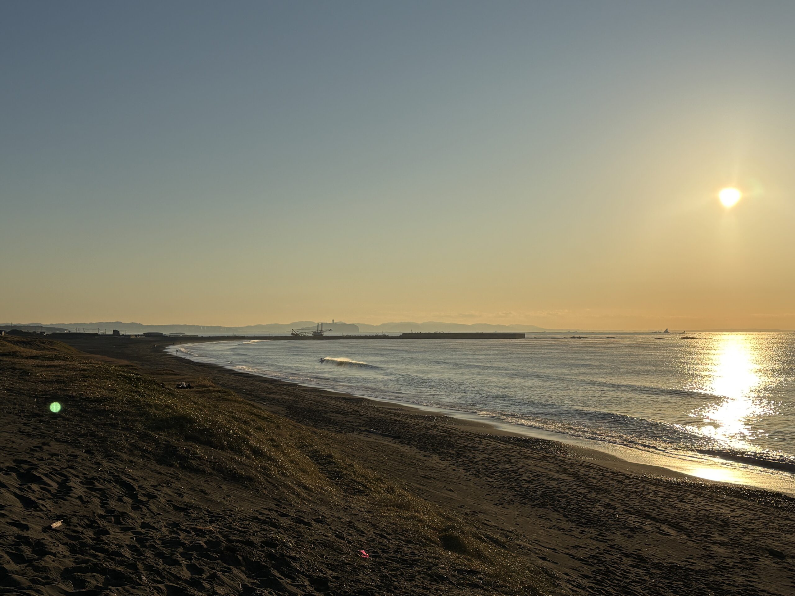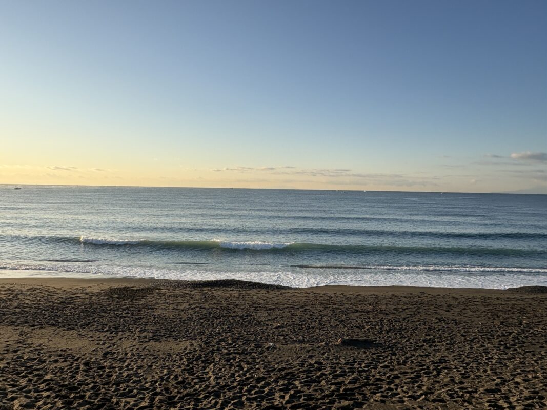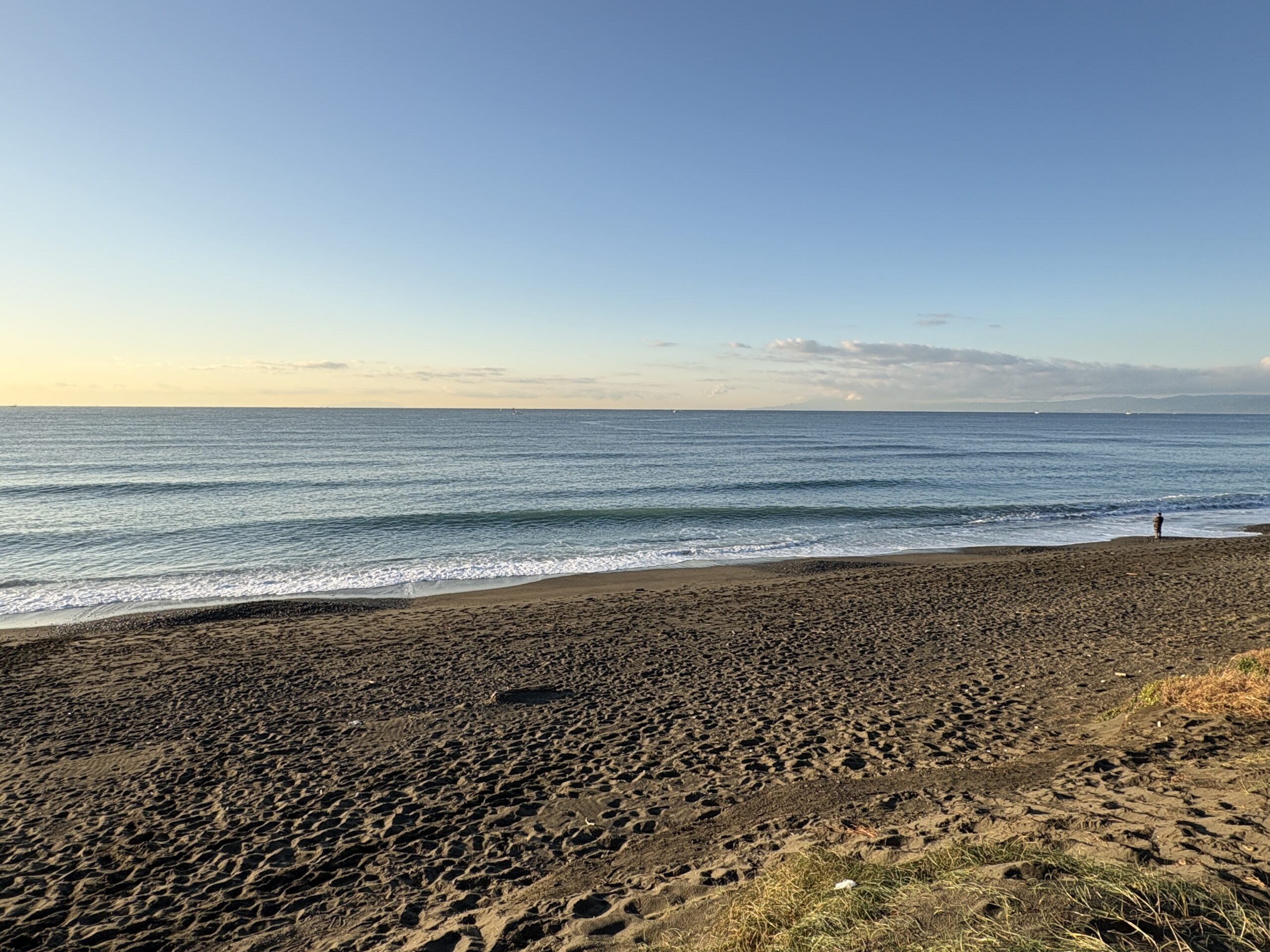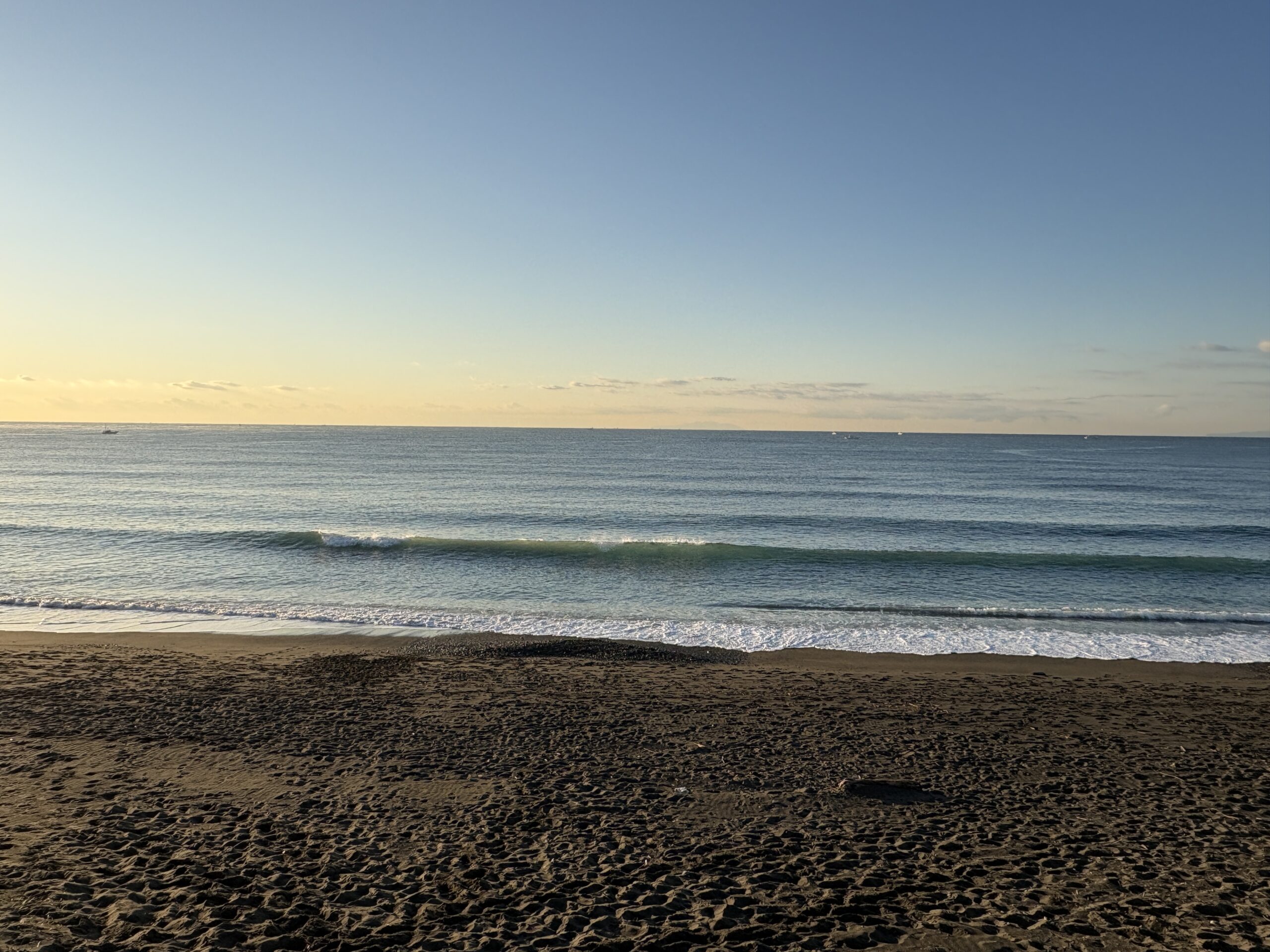 海は、筋張った膝前後のウネリが入りますが、潮も多くインサイドのショアブレイクに近い状態で、西浜スピーカー前のみ1名のサーファーが入っていて何とかテイクオフ出来ている程度です。