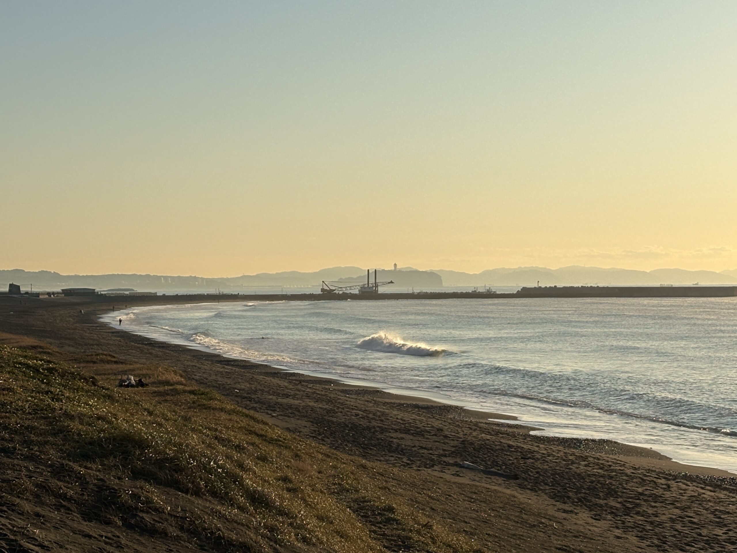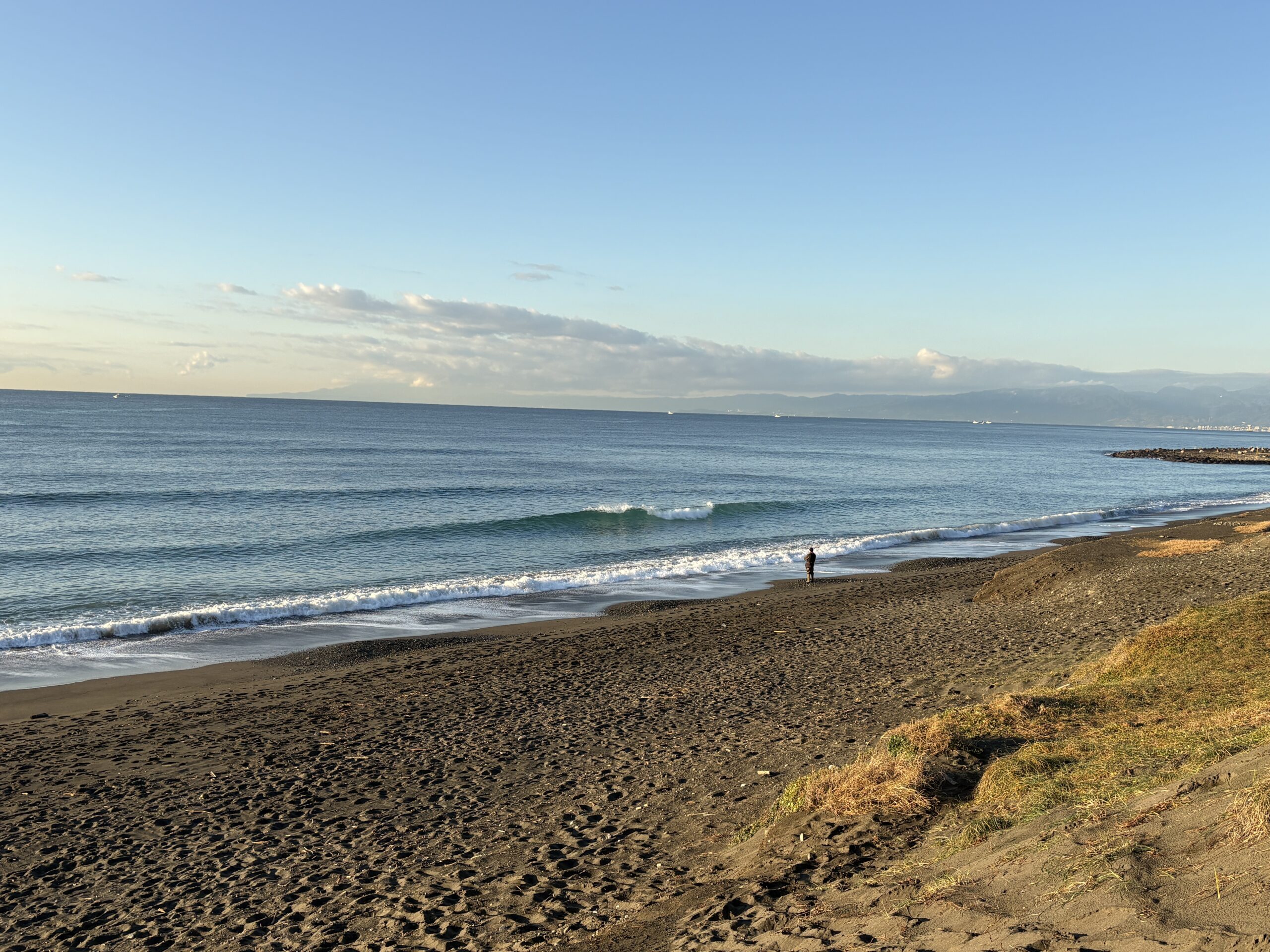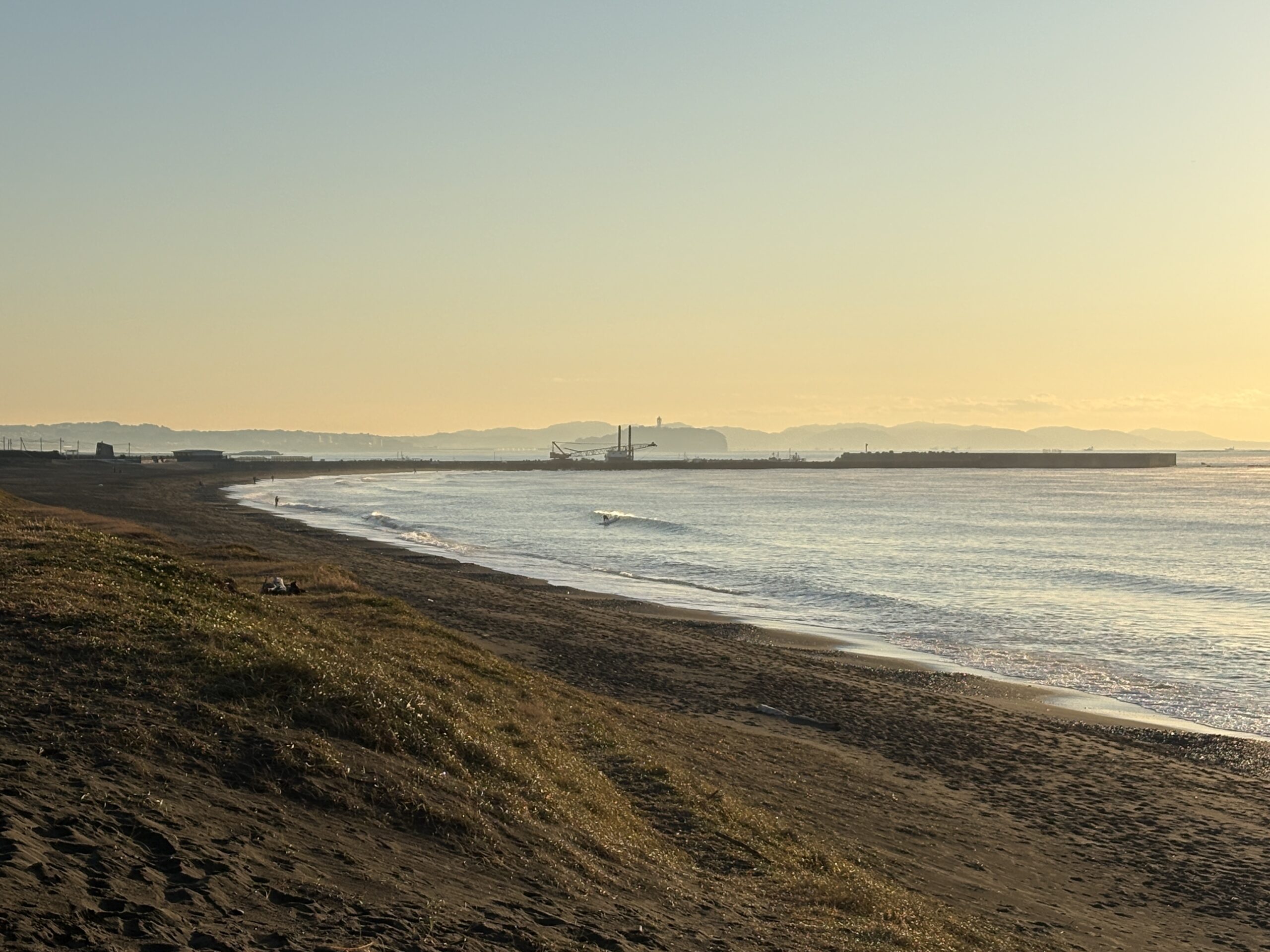 海は、筋張った膝前後のウネリが入りますが、潮も多くインサイドのショアブレイクに近い状態で、西浜スピーカー前のみ1名のサーファーが入っていて何とかテイクオフ出来ている程度です。