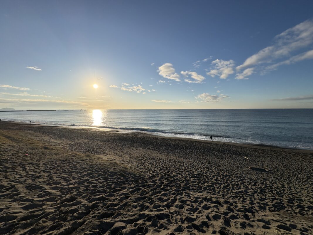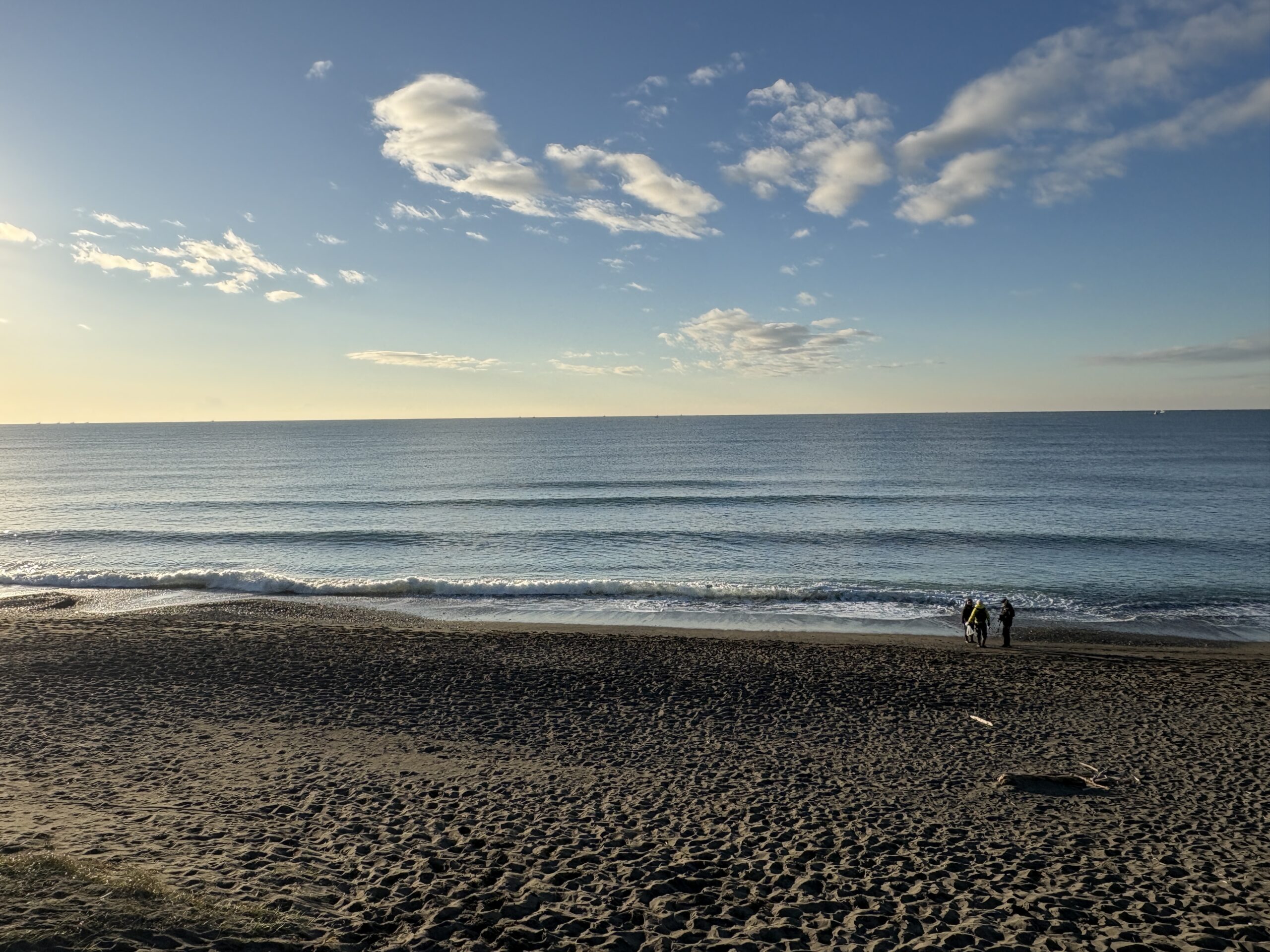 今日の天気は晴れの予報。今朝は放射冷却に寄り冷えた手が悴む朝ですが、波チェック中の朝日の日差しは暖かく感じています。