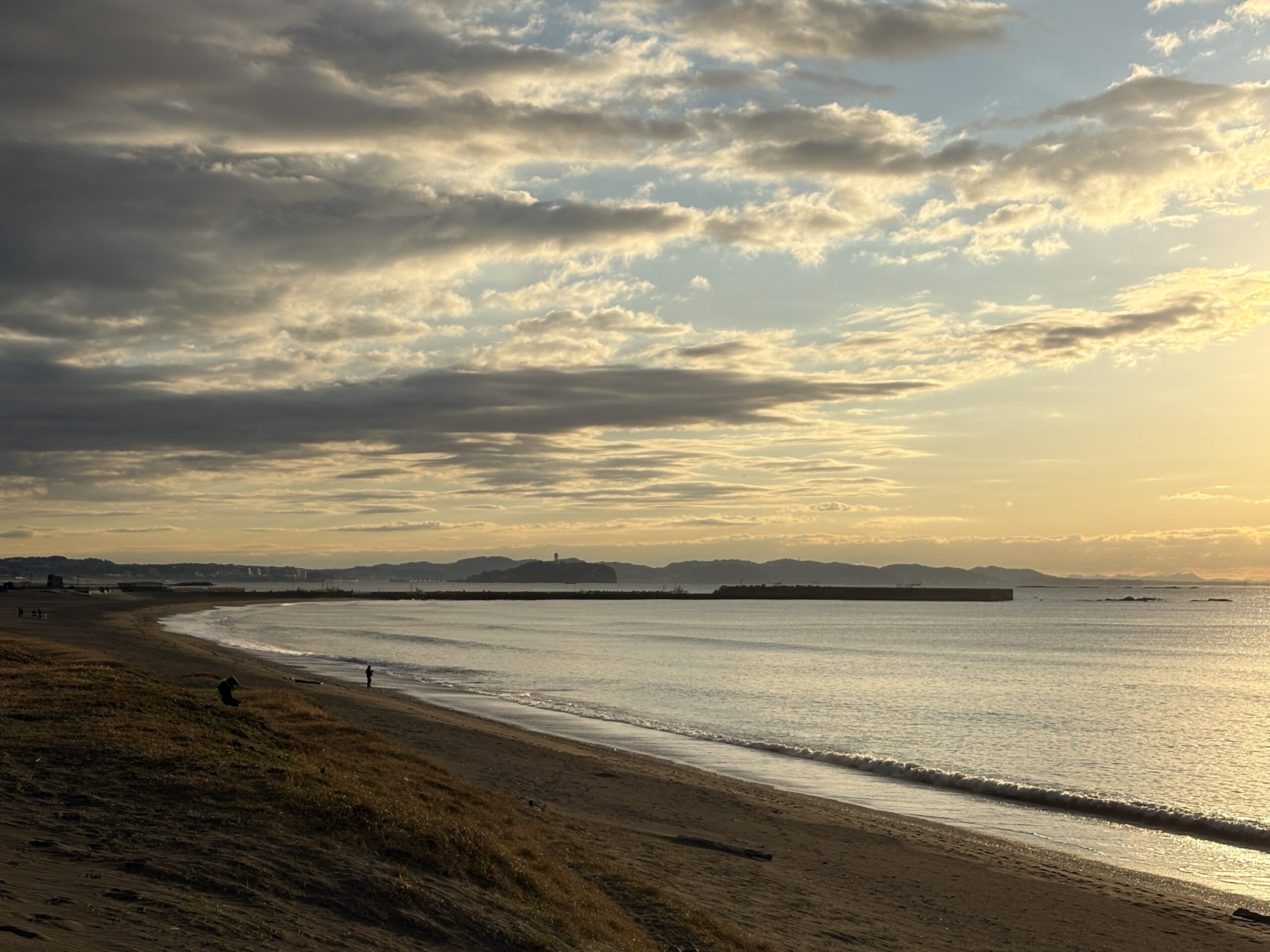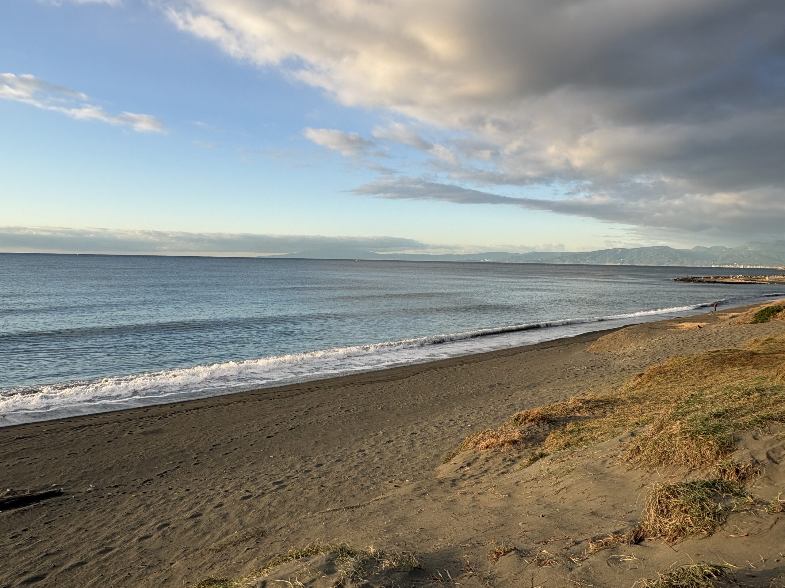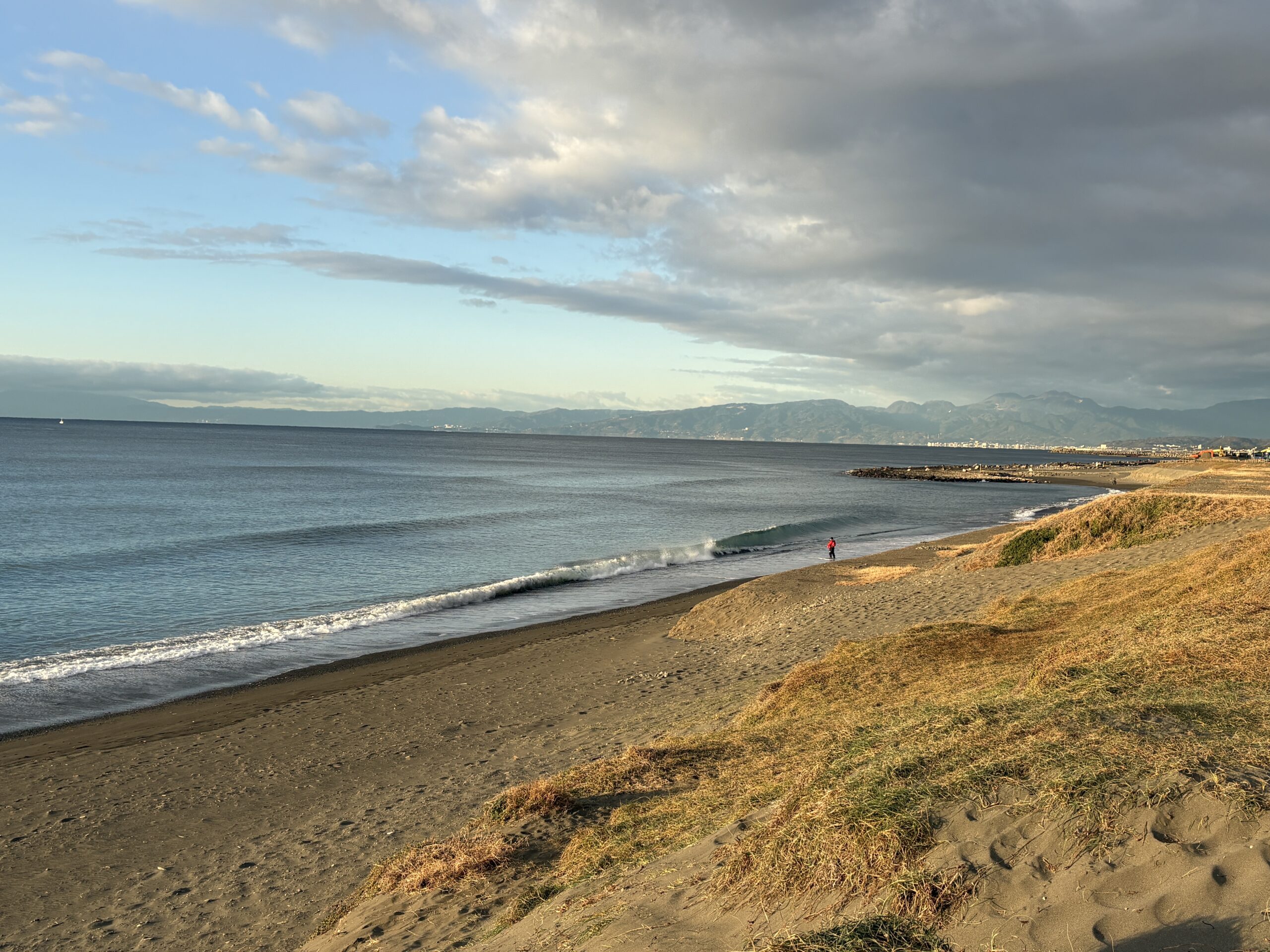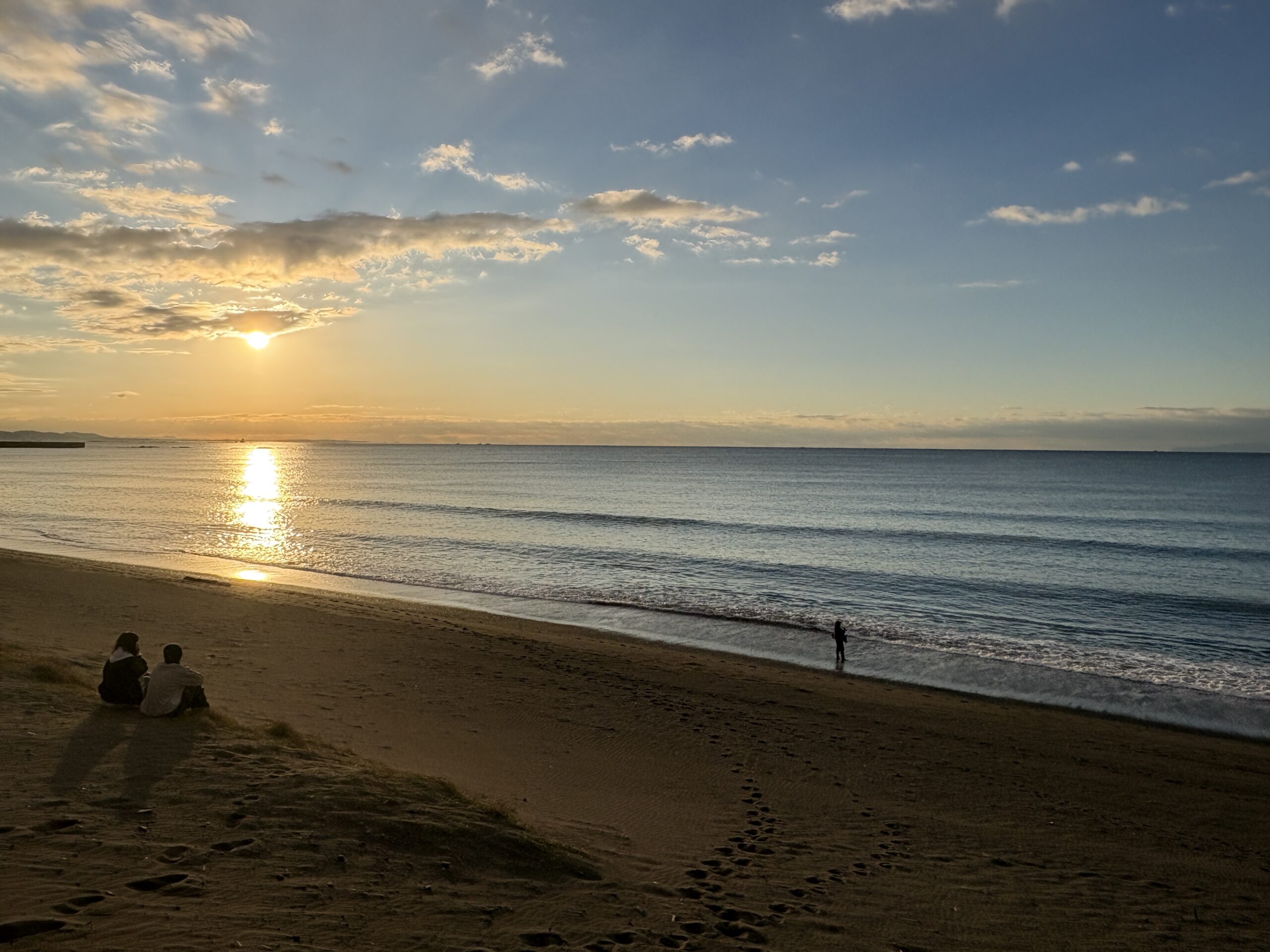 今日の天気は曇りのち晴れの予報。今朝は雲の多かった夜明け時から波チェック時には雲も抜け、朝日が差して来て日中は青空が広がる晴れになりそうです。