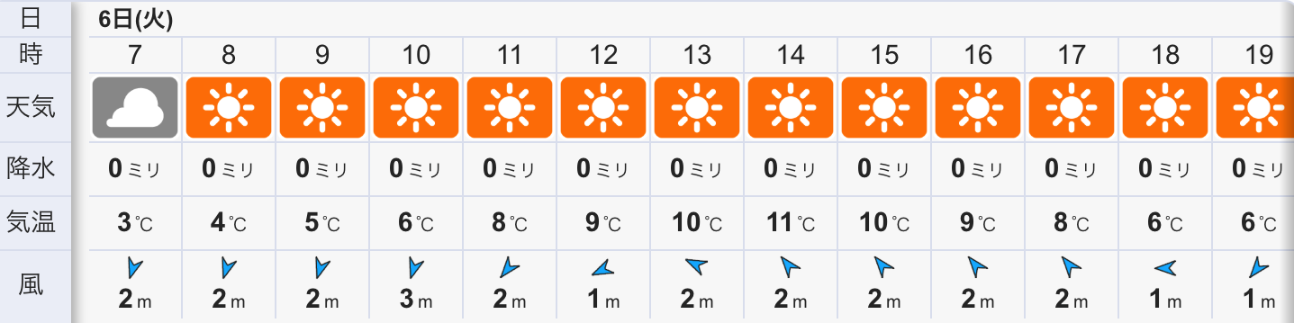 風は昼頃から気温の上昇と共に海風が吹くかも知れません?!