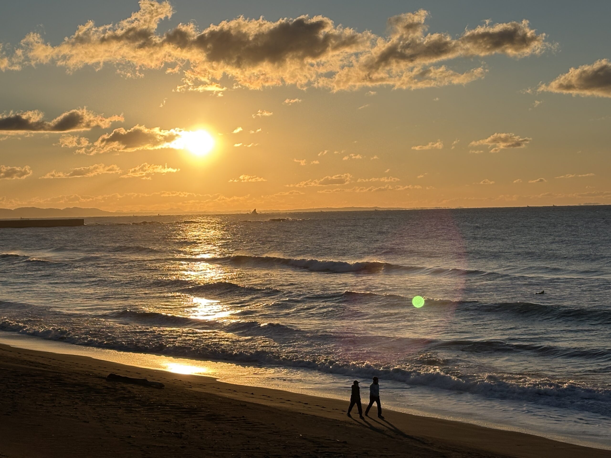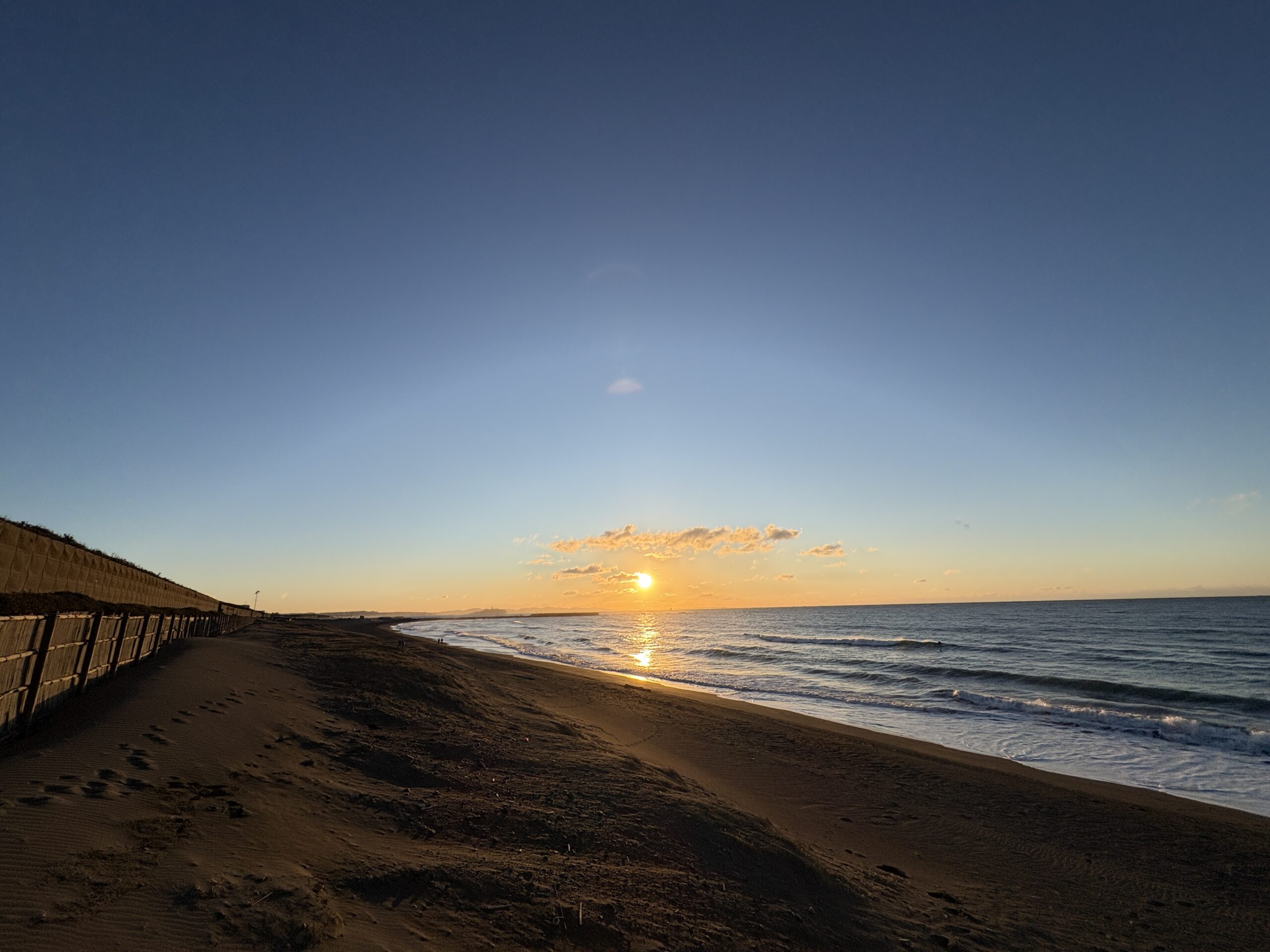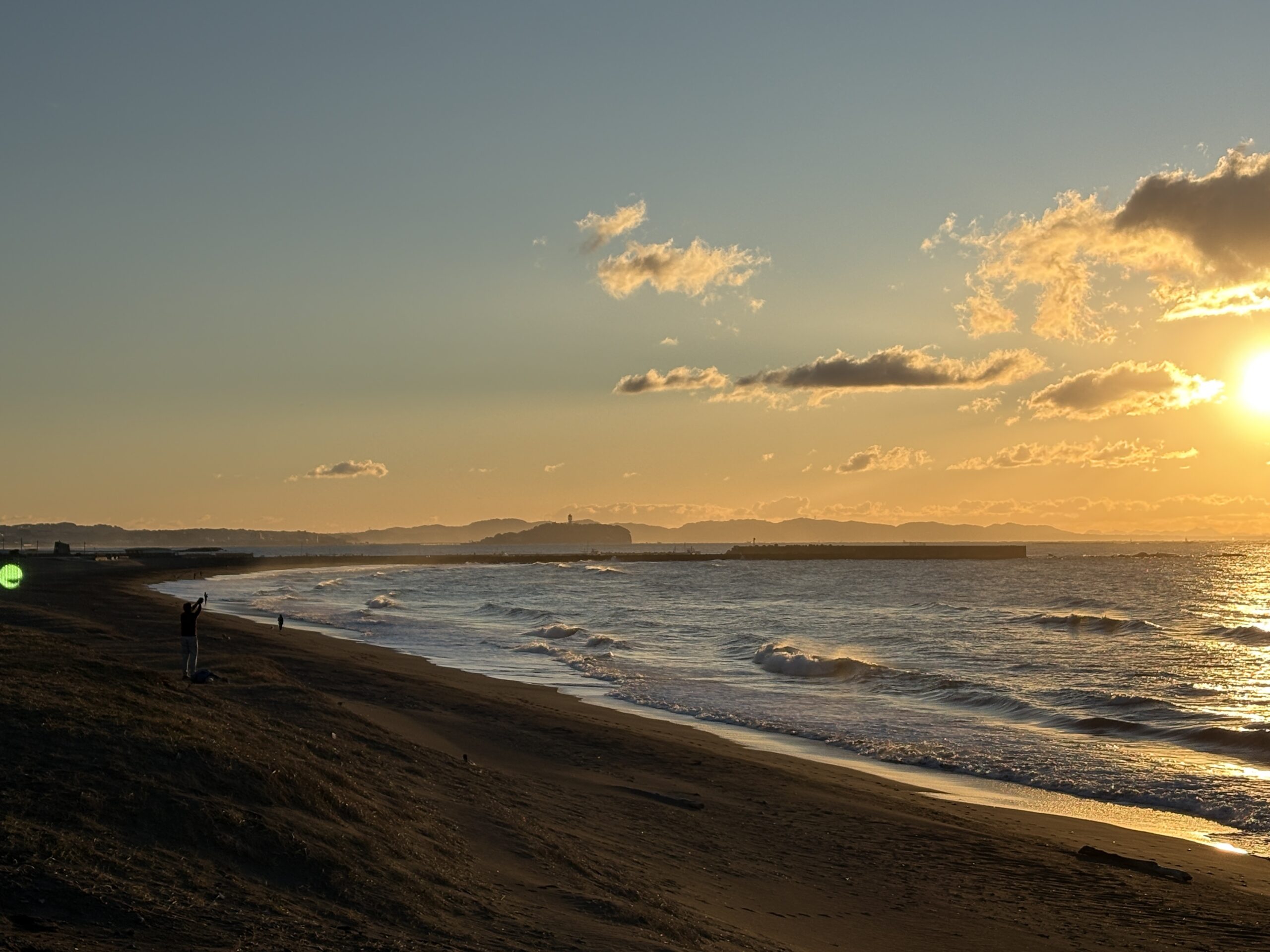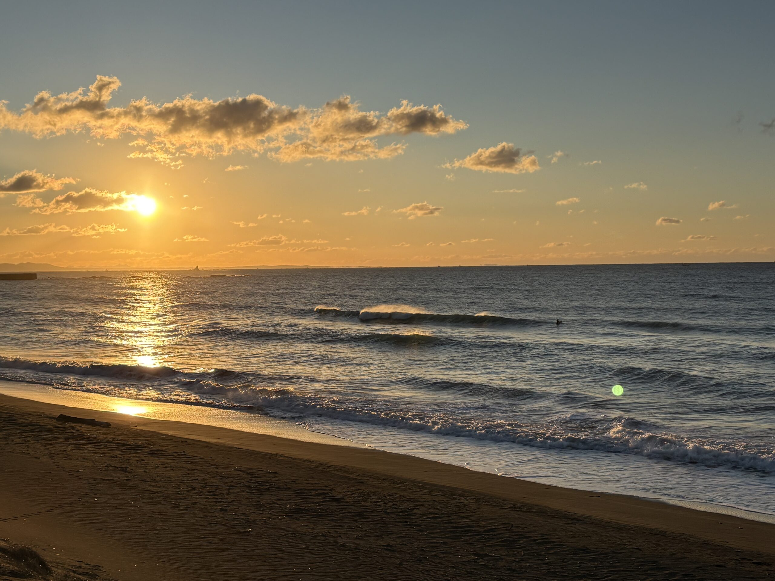 海は昨日まで吹き荒れた南西風の風が今朝は落ち着き、今朝は緩い北風が吹きオフの状態で、ガタついたバラつく力の無さそうな腰前後の波が柳島から西浜までの各所でブレイクしています。