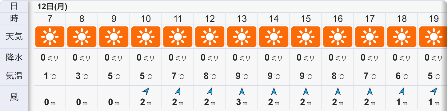 今日の天気は晴れの予報。今朝は晴れて寒気が入り射冷却に寄りかなり冷えた空気の朝です。