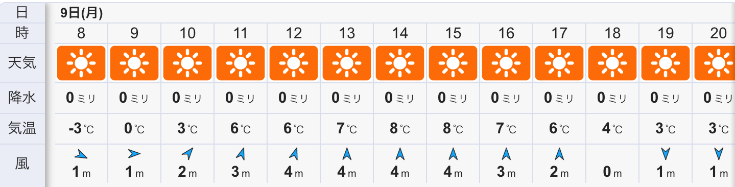 今日の天気は晴れの予報。今朝はブルースカイ広がる晴れで、昨日の雪が未だ多く残り冷蔵庫の中にいる様な冷えた朝です。
