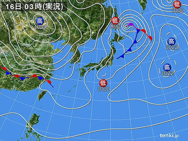 今朝は青空が広がり晴れていますが、相模湾の南海上を小さな低気圧が通過し天気は下り坂です。