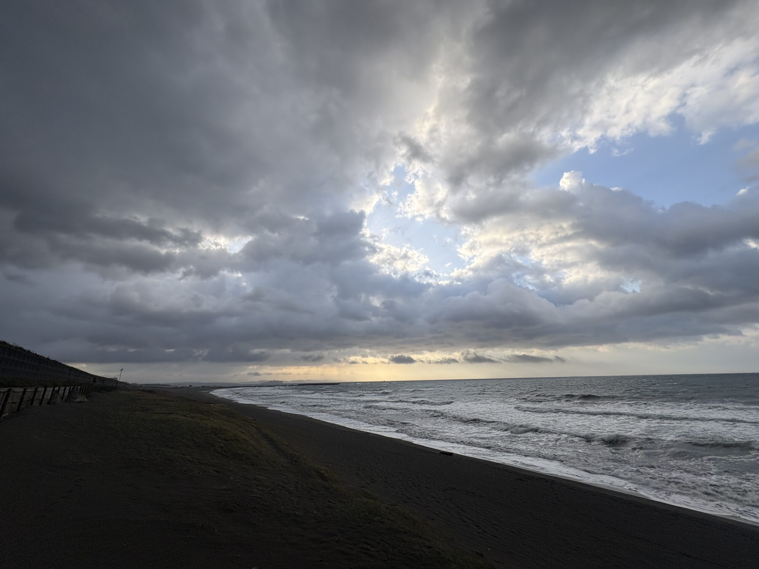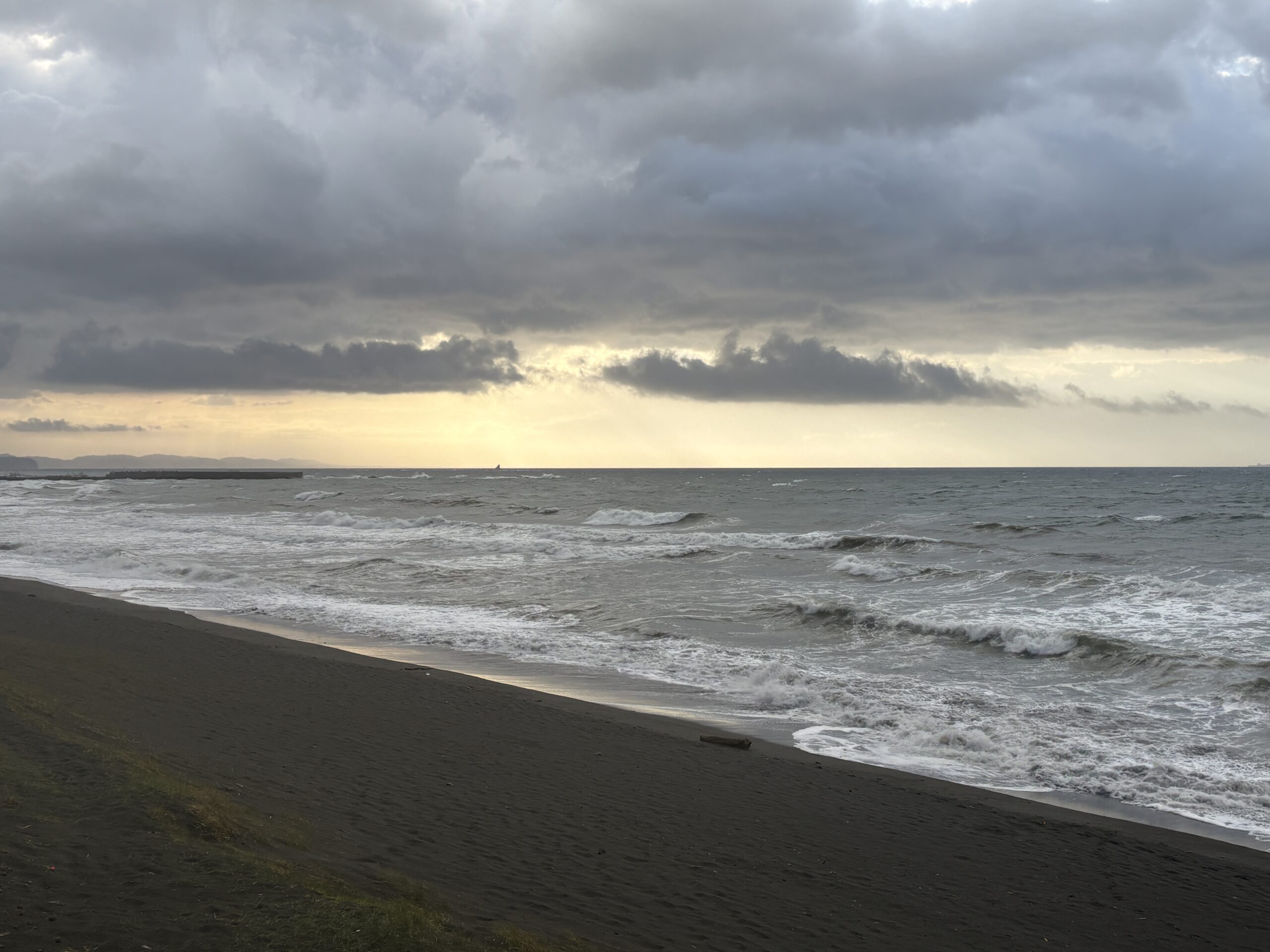 この強い南風も終日吹き続け日中は風速8m級の暴風が吹く予想で、風を若干軽減させるサザンビーチ、パークP又は、大磯方面が出来るかも知れません?!