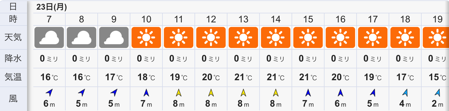今日の天気は曇り時々雨のち晴れの予報。今日は目紛しい天気の変化で、今朝は小雨が降ったり止んだり晴れ間も見えたりしています。