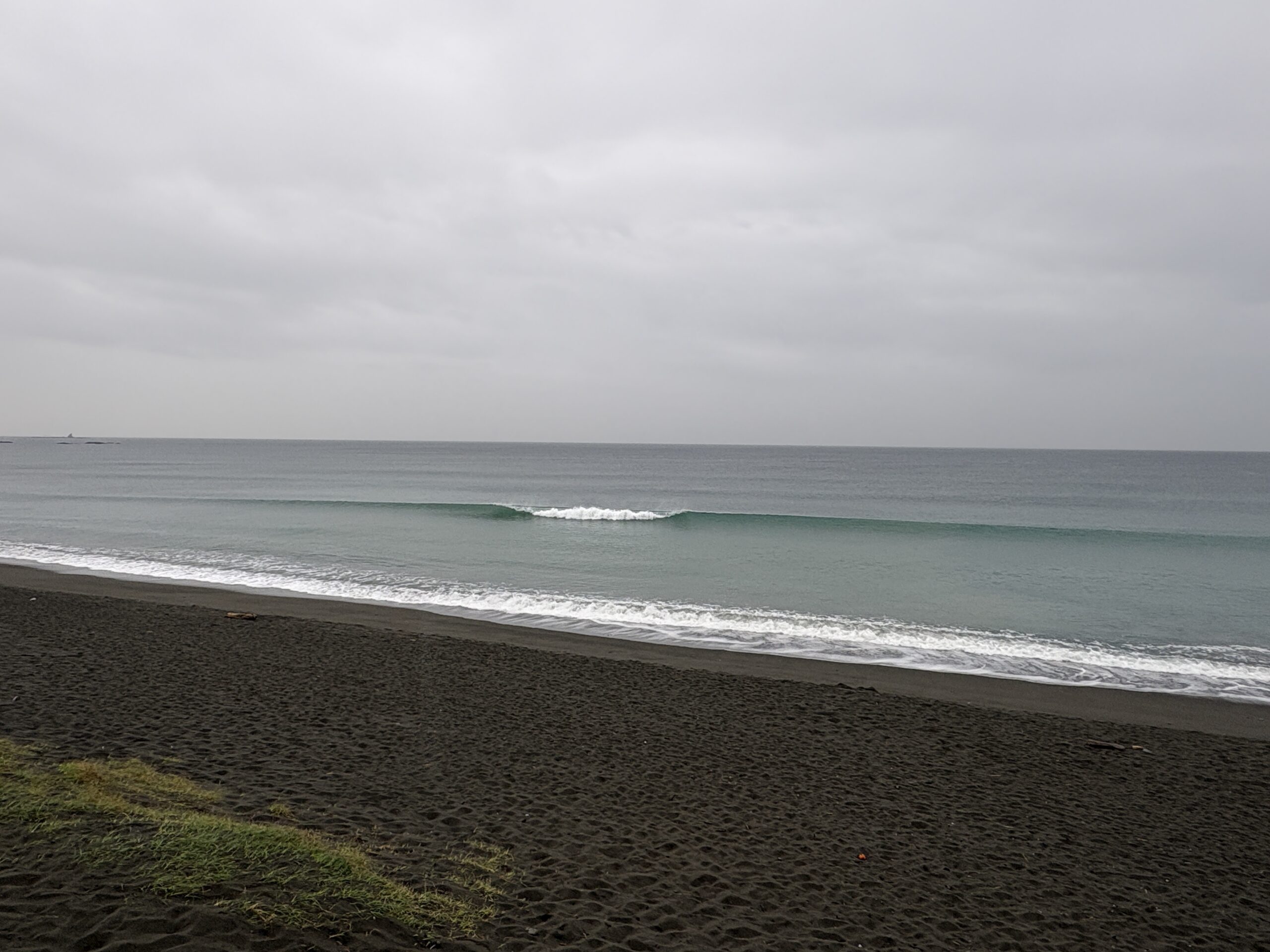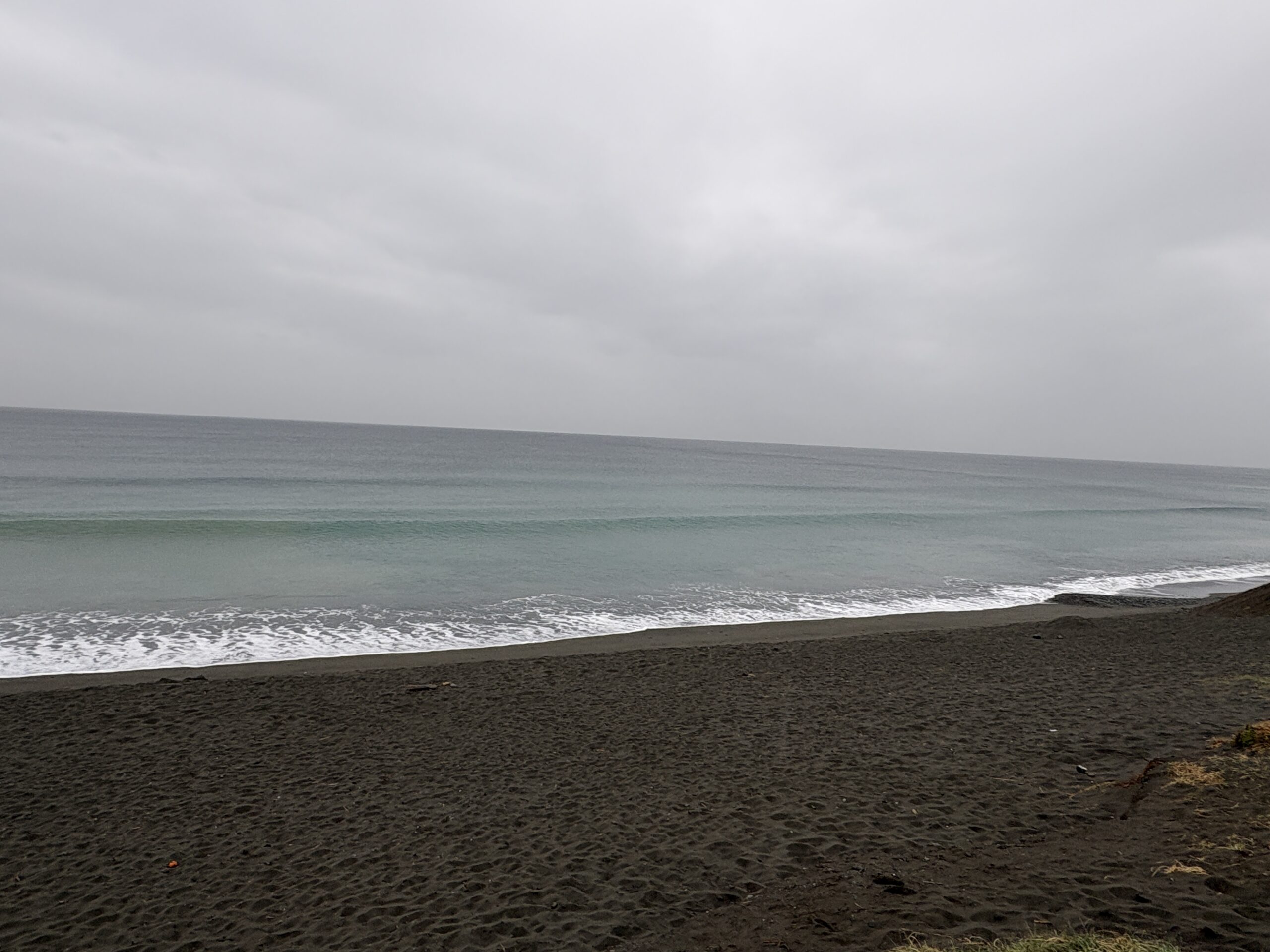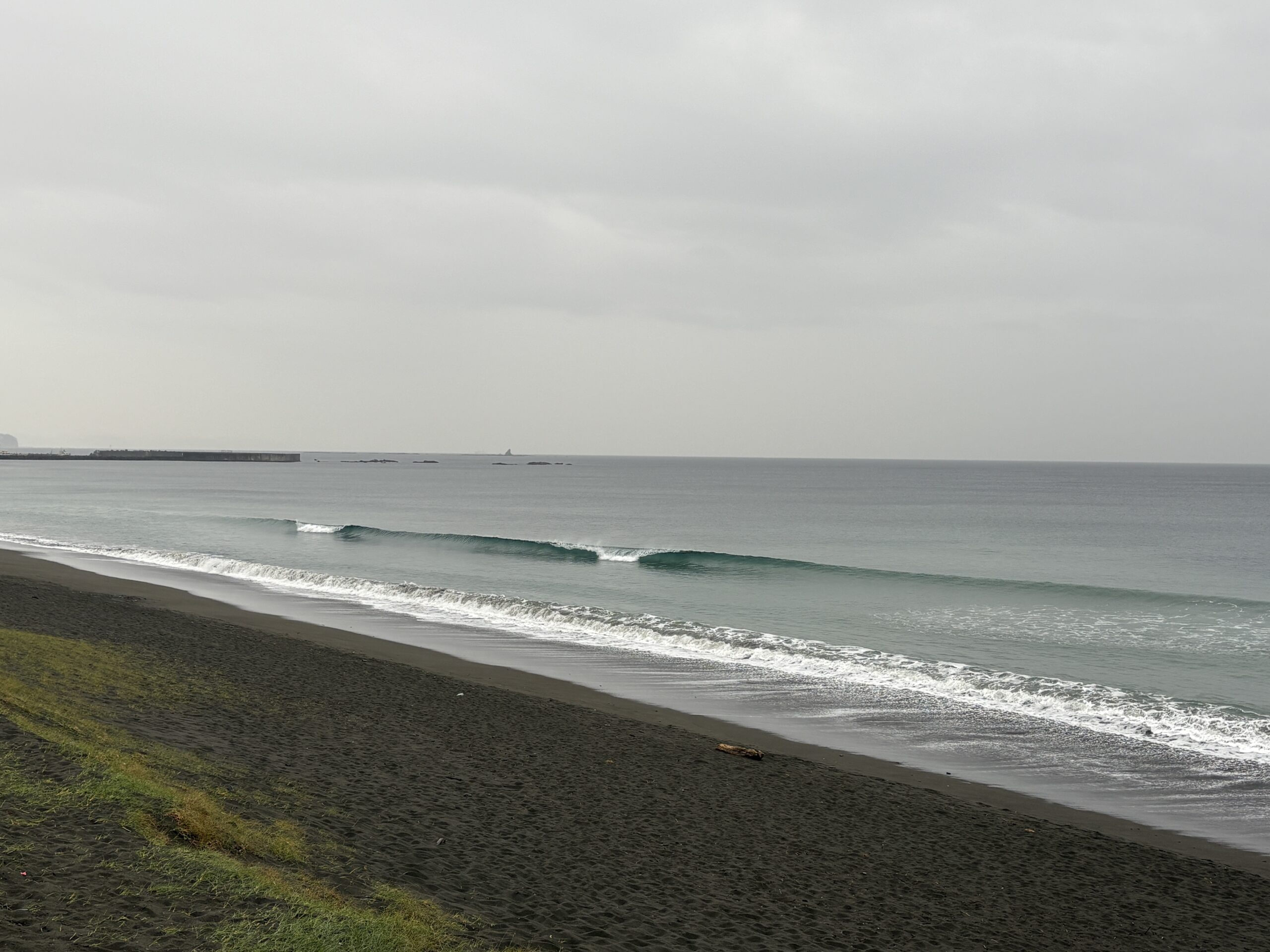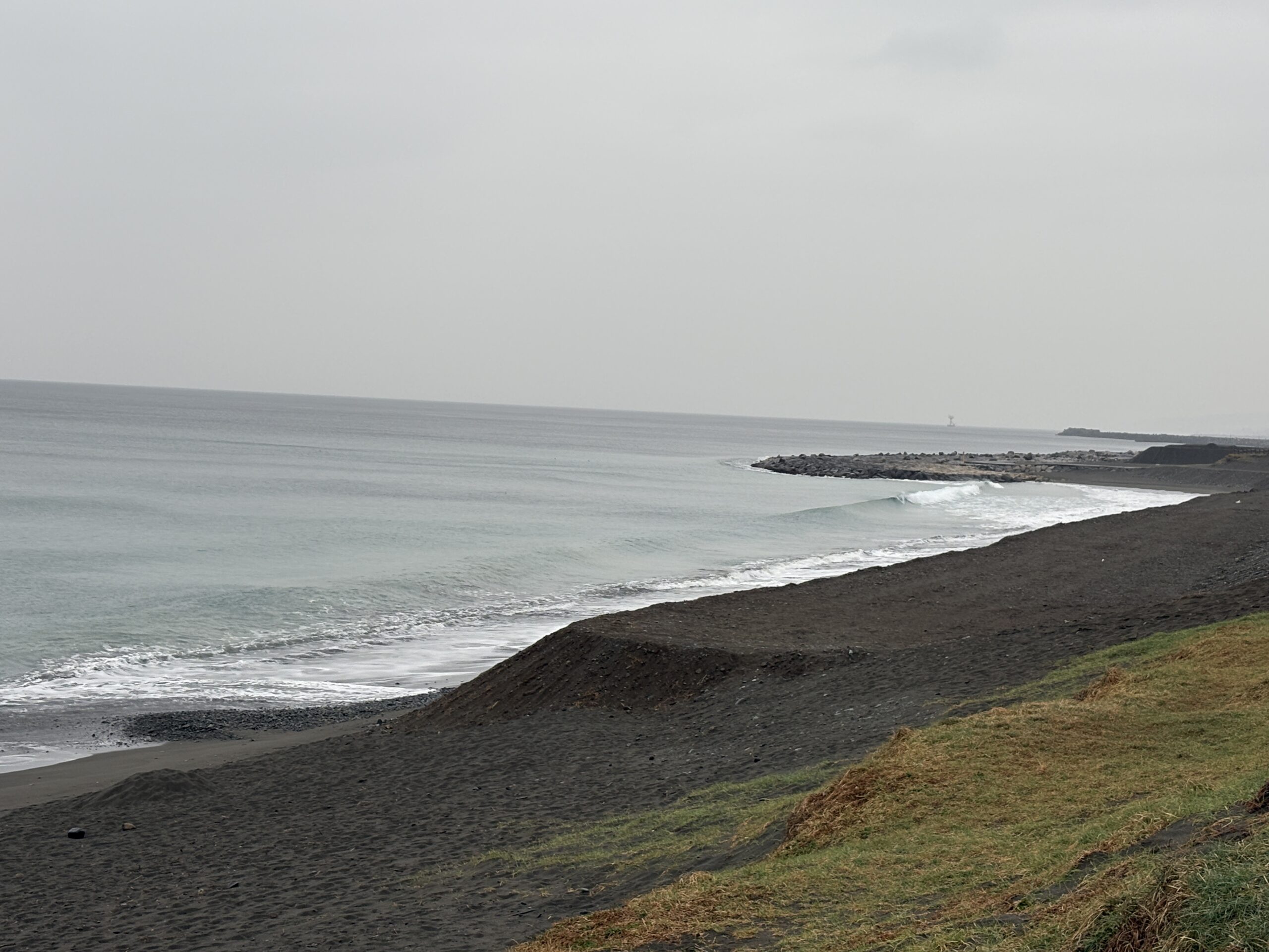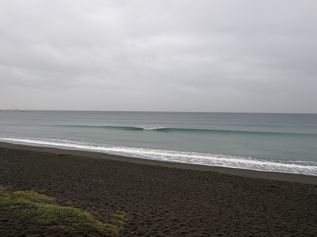 海は、南岸低気圧の通過に寄り筋張った膝からモモ近くのウネリが稀に入って来ていて、朝は潮が上げていますが地形の良い西浜スピーカ前の周辺でたまにブレイクしています。