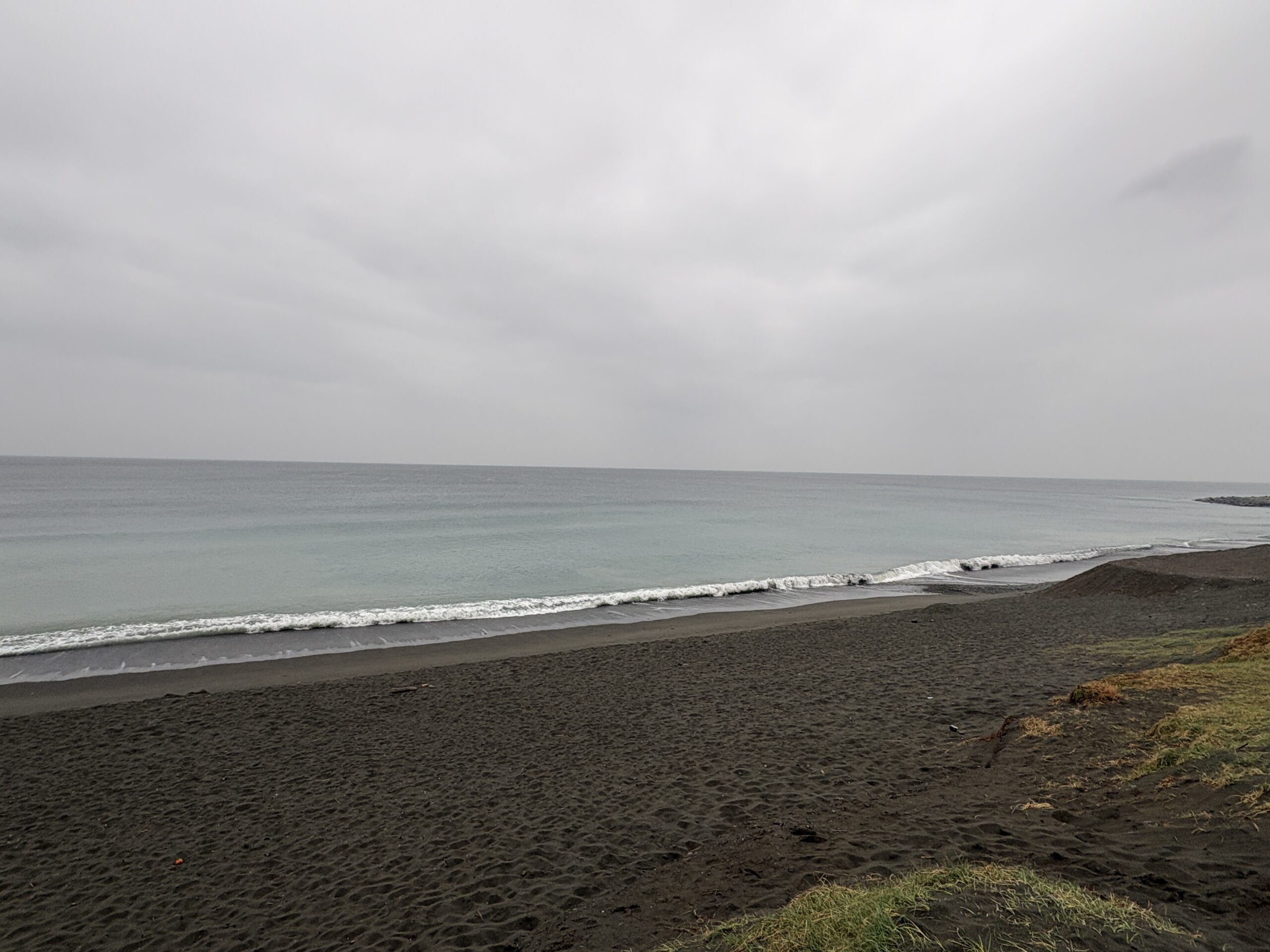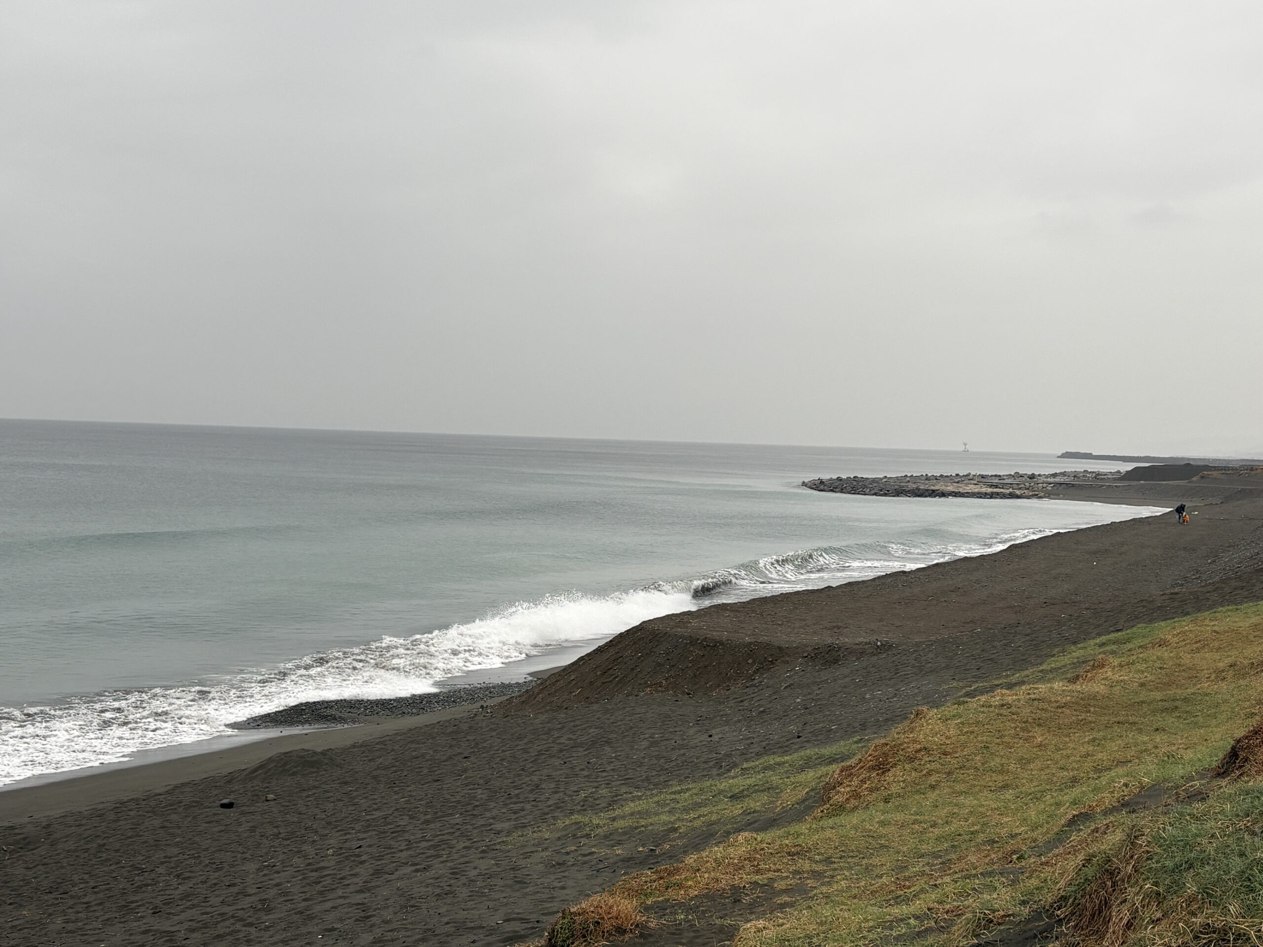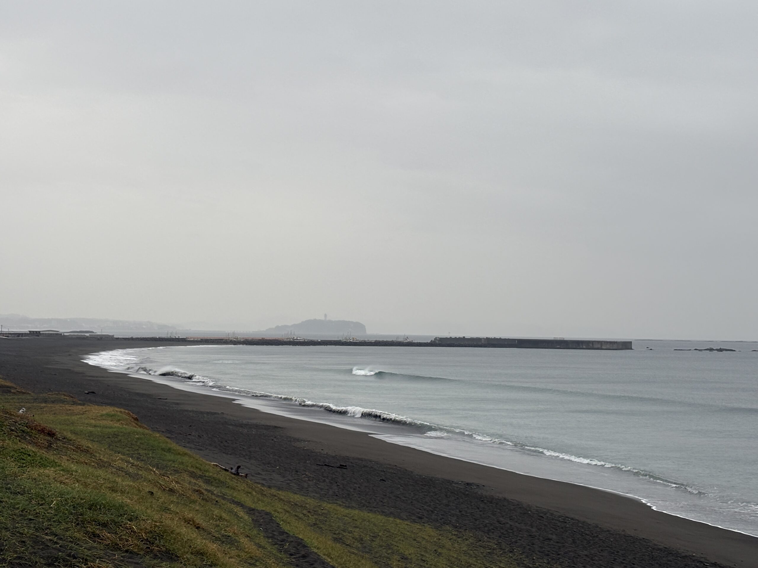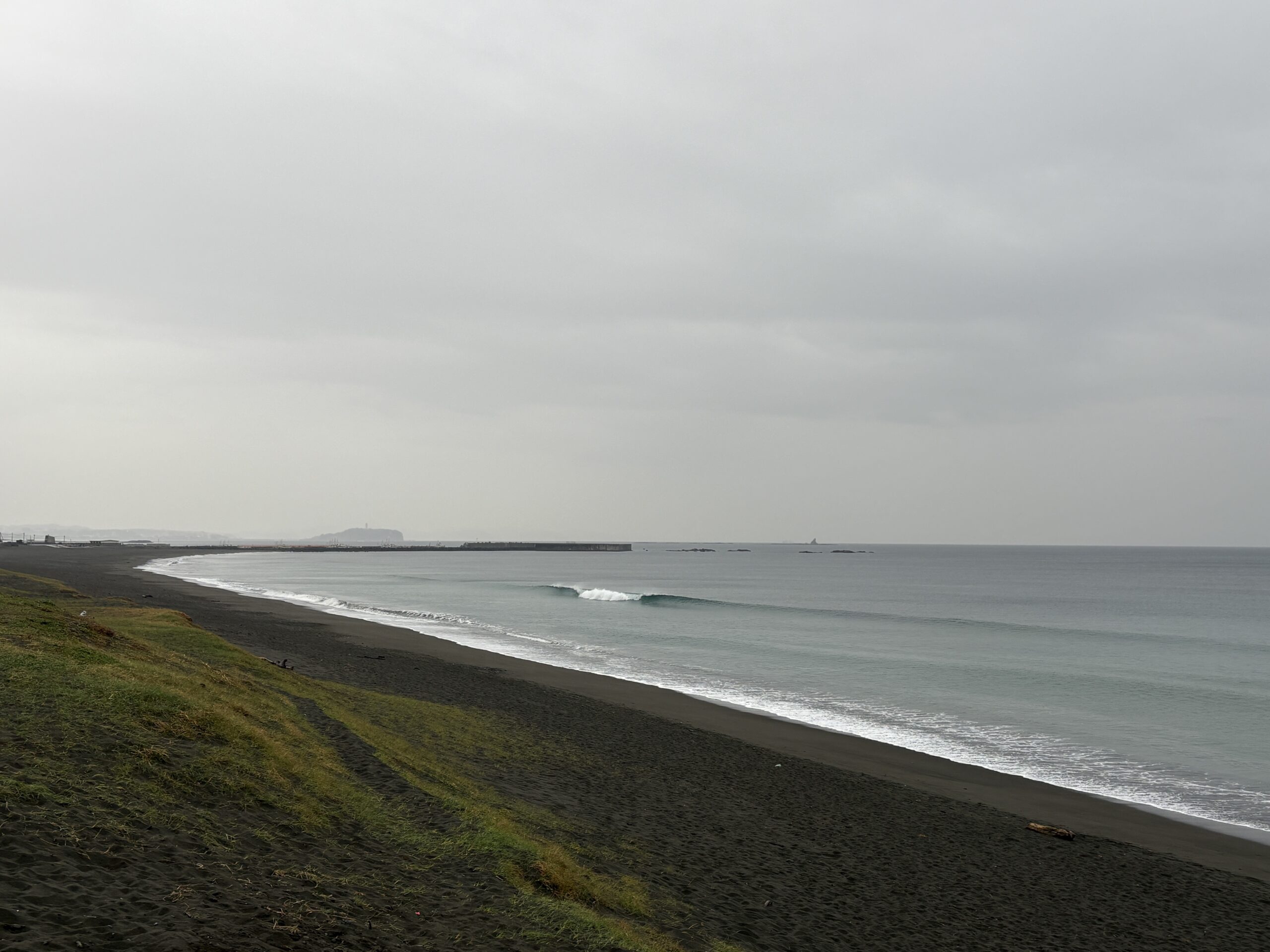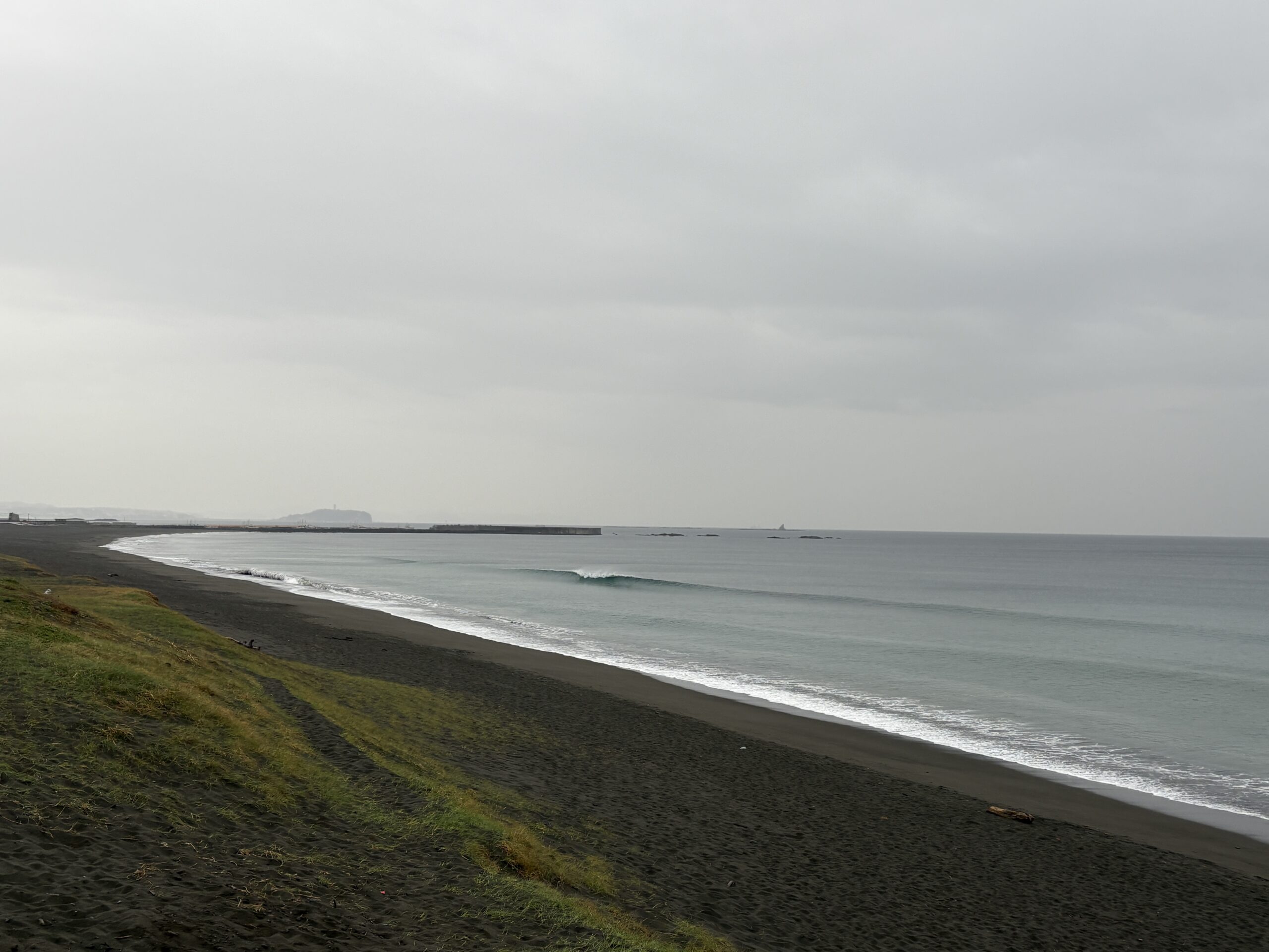 海は、南岸低気圧の通過に寄り筋張った膝からモモ近くのウネリが稀に入って来ていて、朝は潮が上げていますが地形の良い西浜スピーカ前の周辺でたまにブレイクしています。