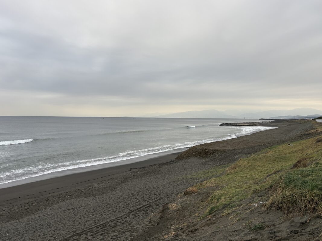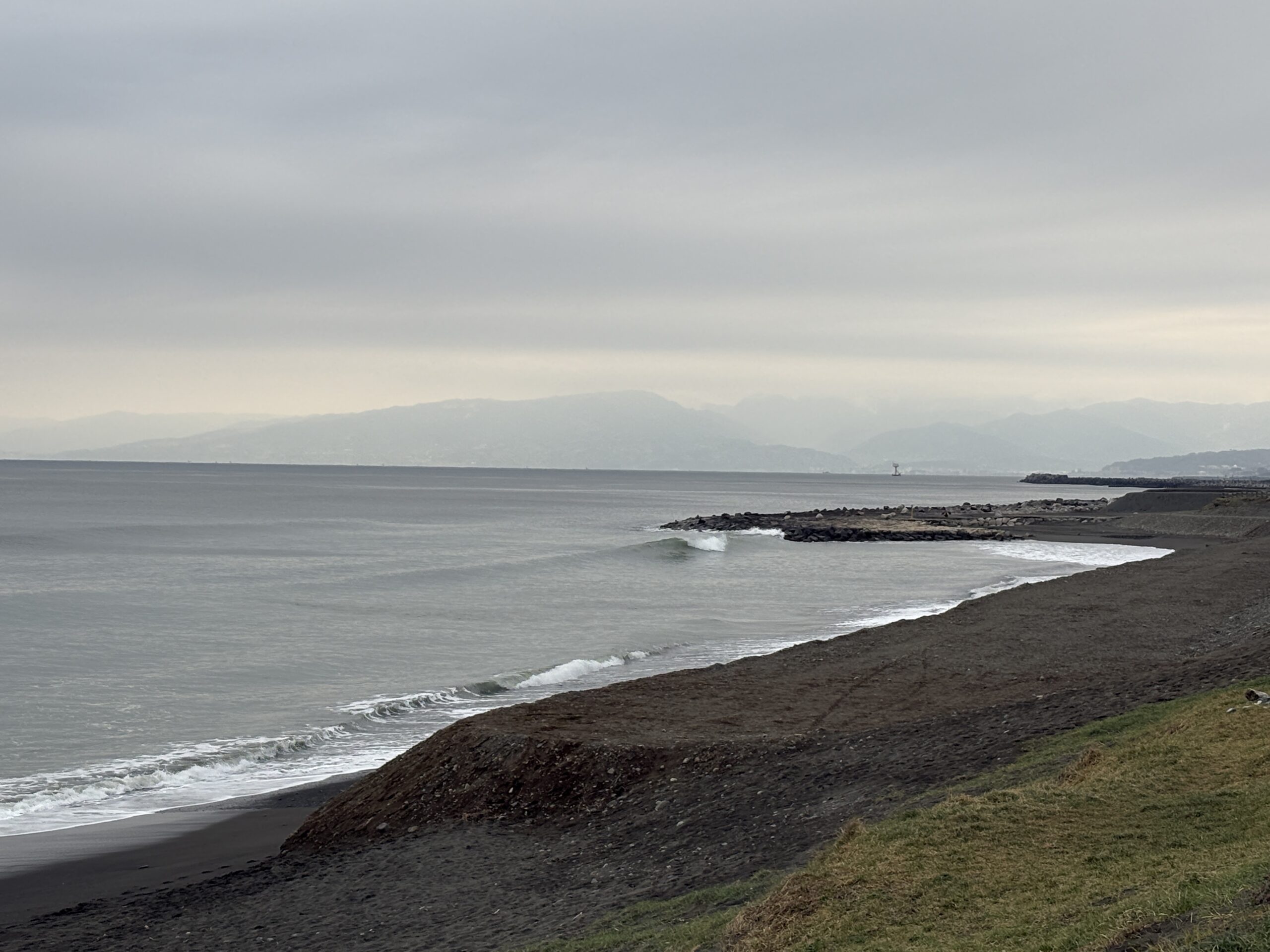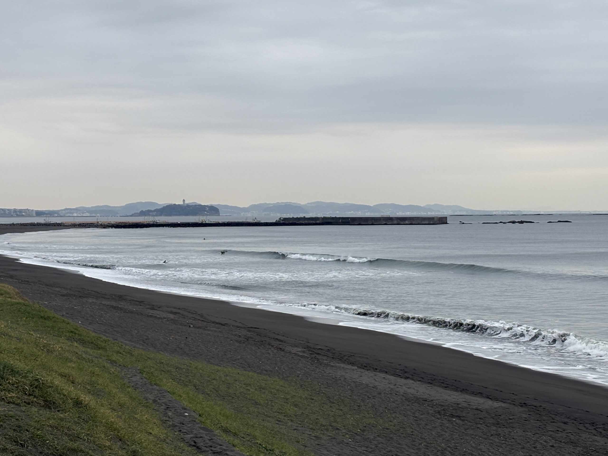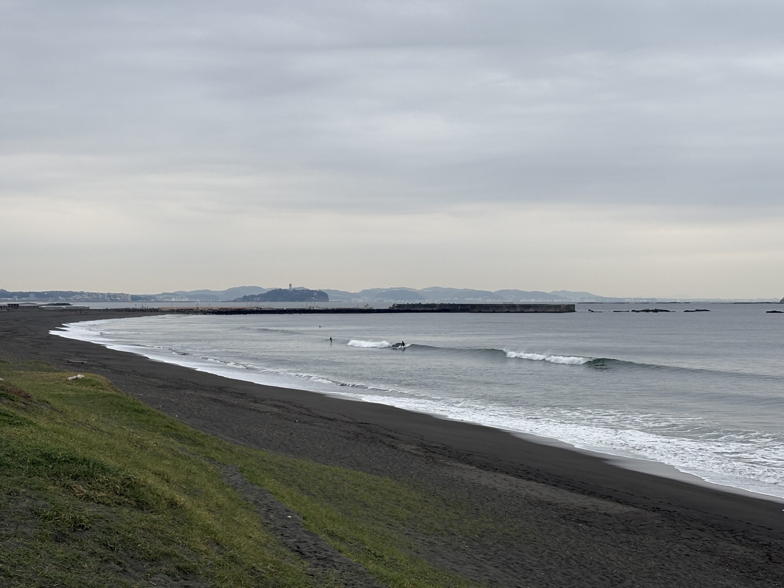 今日の天気は曇りのち晴れ時々曇りの予報。今朝は雨が降りそうな、どんよりとした曇り空でやや肌寒い朝です。海は筋張った膝からモモ近くのウネリが入り、各所でやや力の無さそうな感じで波がブレイクしています。 今日は大潮なので昼前に掛けかなり引くので、小さいながらもテイクオフできるくらいの波はありそうです?!