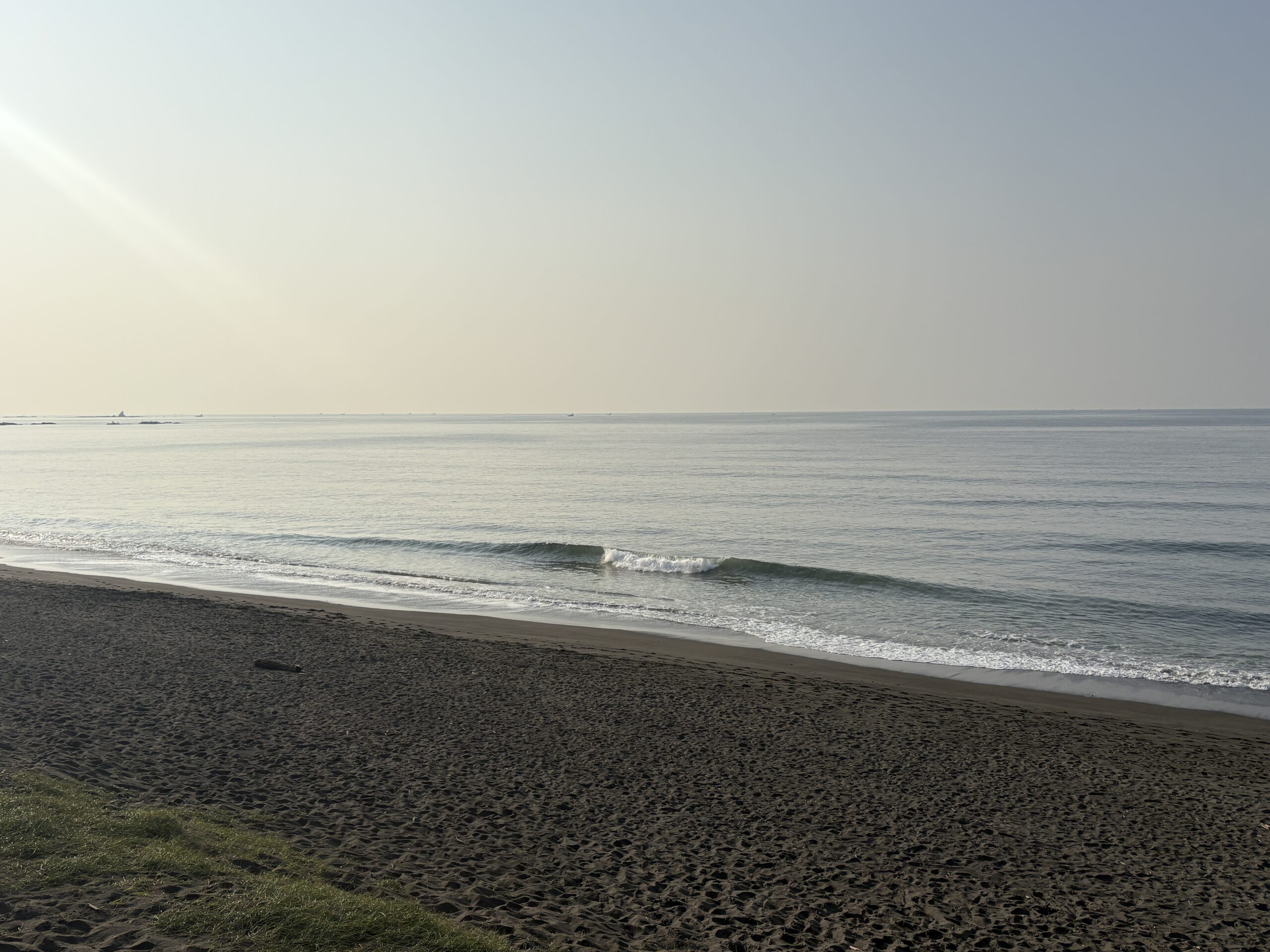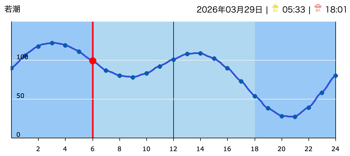 今日の天気は晴れの予報。今朝は風が無風で、ポカポカ陽気の暖かい朝です。海は筋張った膝前後のウネリが入る程度。朝は若干潮が多い為、インサイド寄りのブレイクで、何とかテイクオフ出来そうな波もたまに有りますがショートライドです。 本日のタイドグラフ。今日は若潮のこれから9時過ぎ辺りまで潮が若干引くので沖でブレイクし易くなりそうです?!