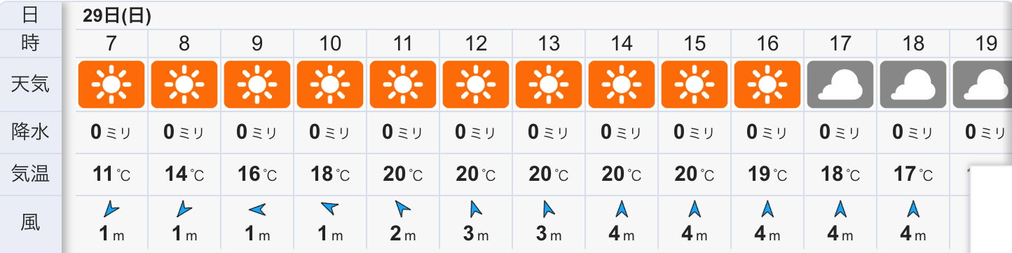 風は日中20℃くらいまで上がり海風の南が吹く予想です。