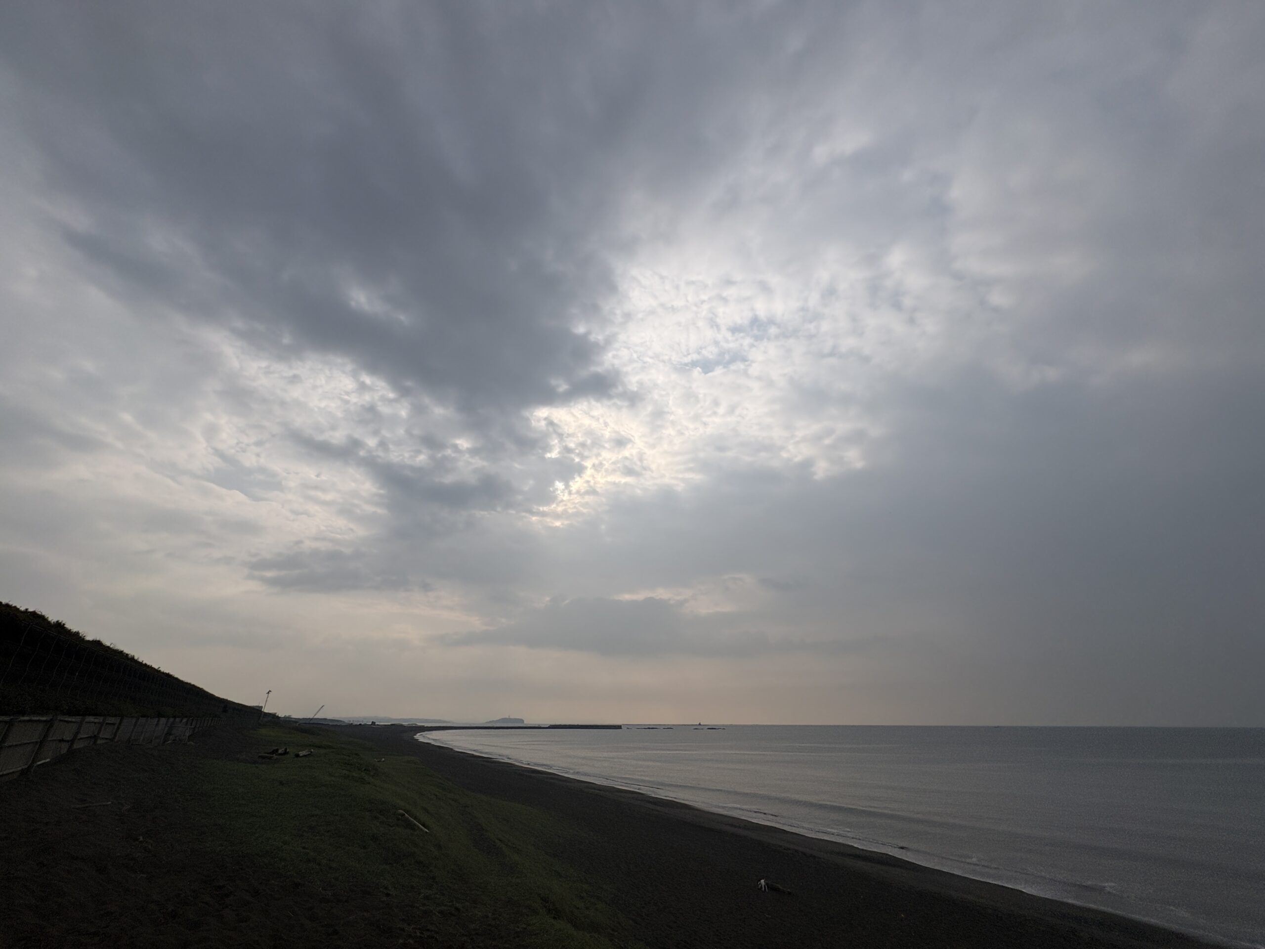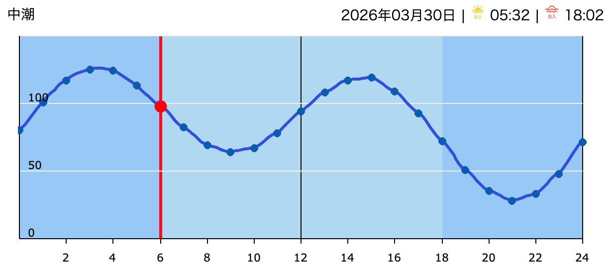 今日の天気は曇り時々晴れの予報。今朝は雲多く薄陽が指す天気で、やや冷たい北東風が吹き肌寒い朝です。海は筋張ったスネから膝近くのウネリがたまに入る程度で、朝は潮も多くインサイドブレイク。これから引いて来たらロングや初心者のテイクオフの練習くらいは出来そうです?! 本日のタイドグラフ。風は後半から南が強まり明日に掛け荒れて来る予想。