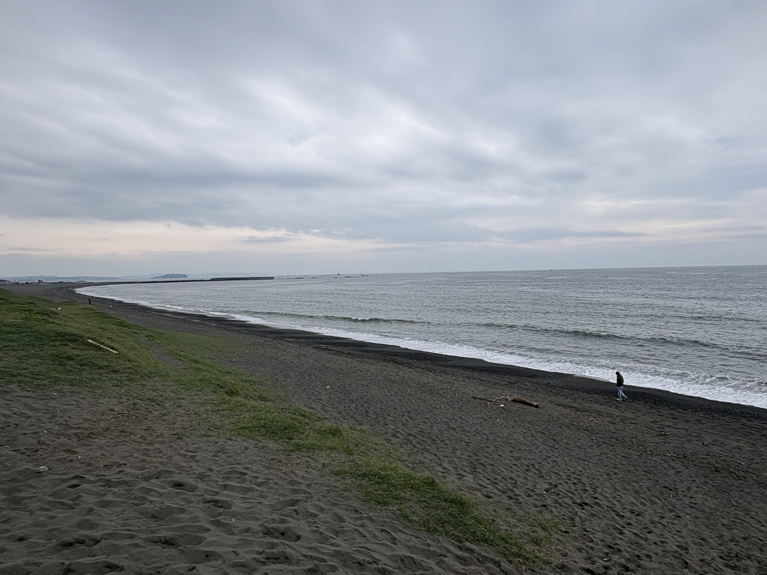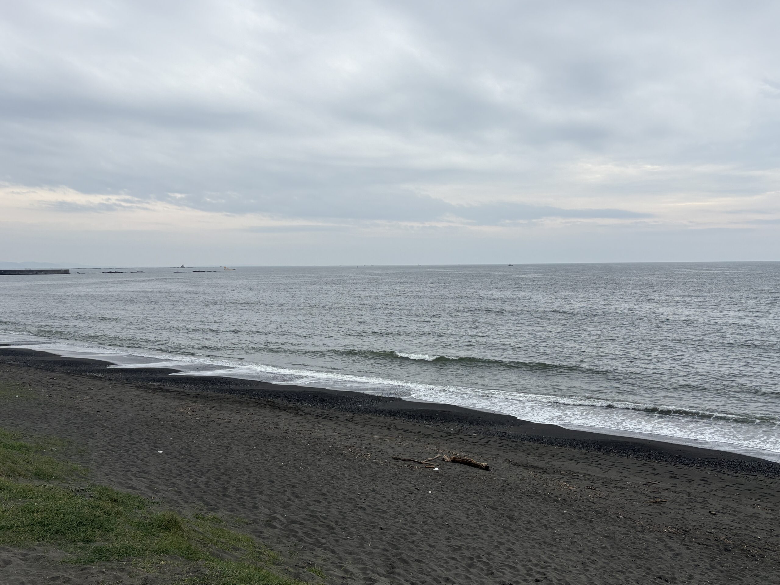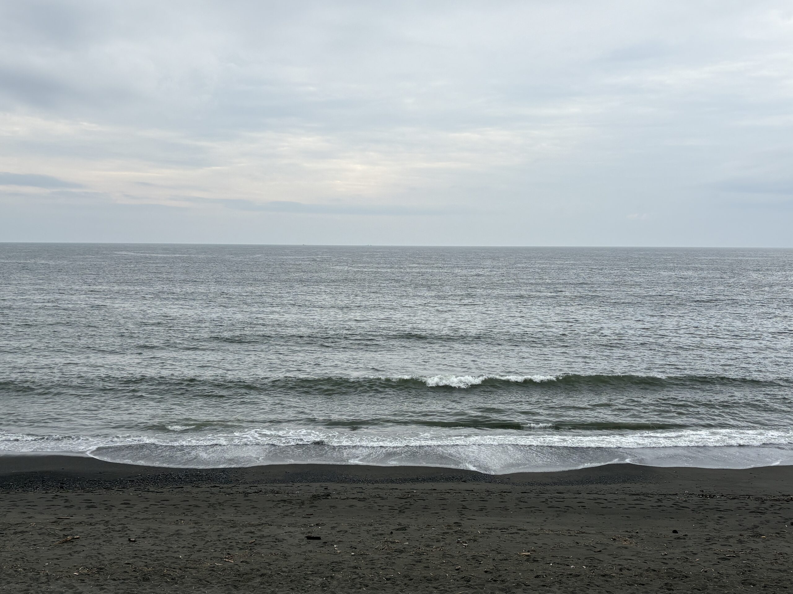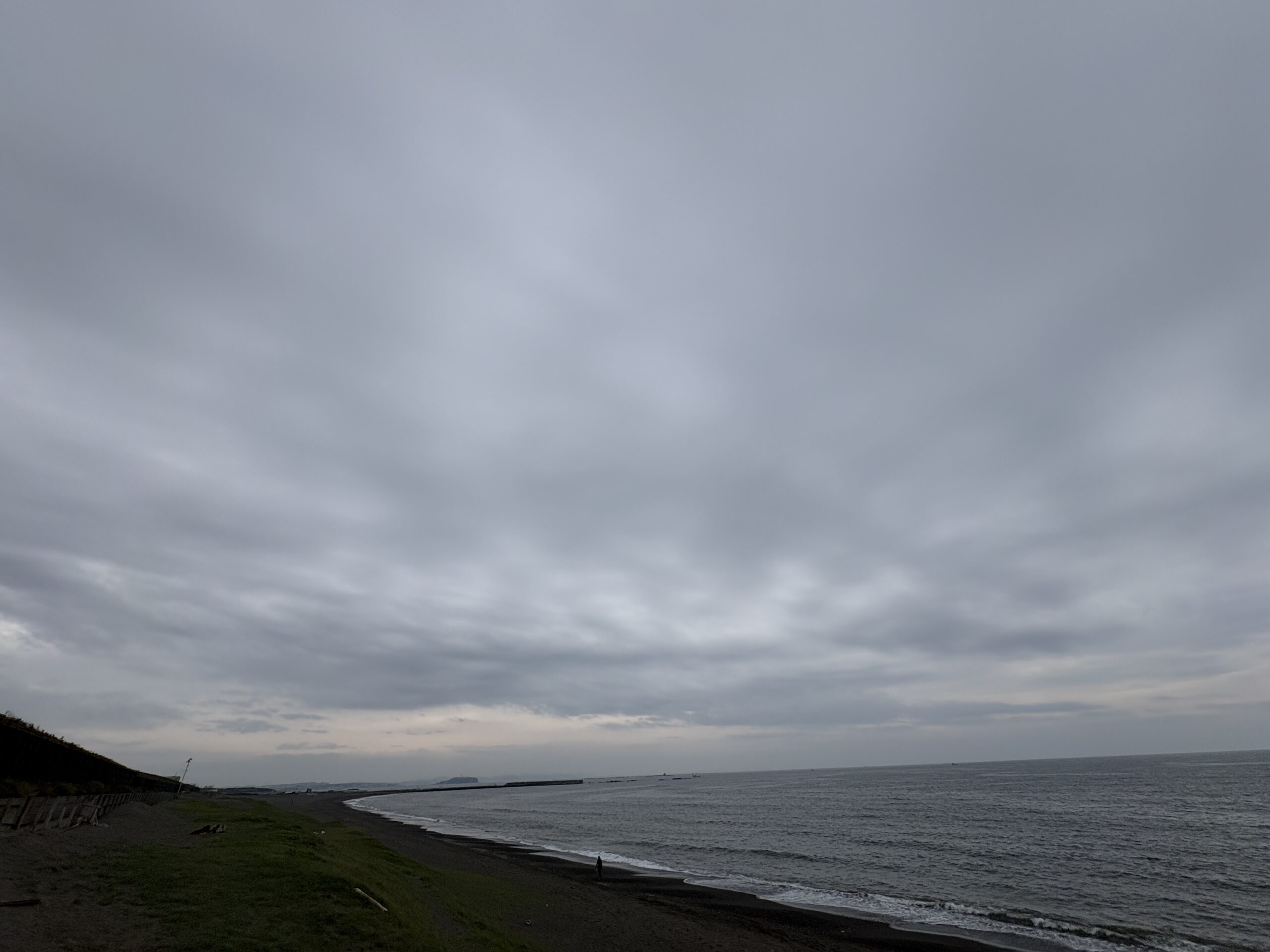今日の天気は曇りのち雨の予報。今朝はどんよりとした曇り空の既に海風が吹き始め海面がざわついており、これから次第に荒れて来る感じです。