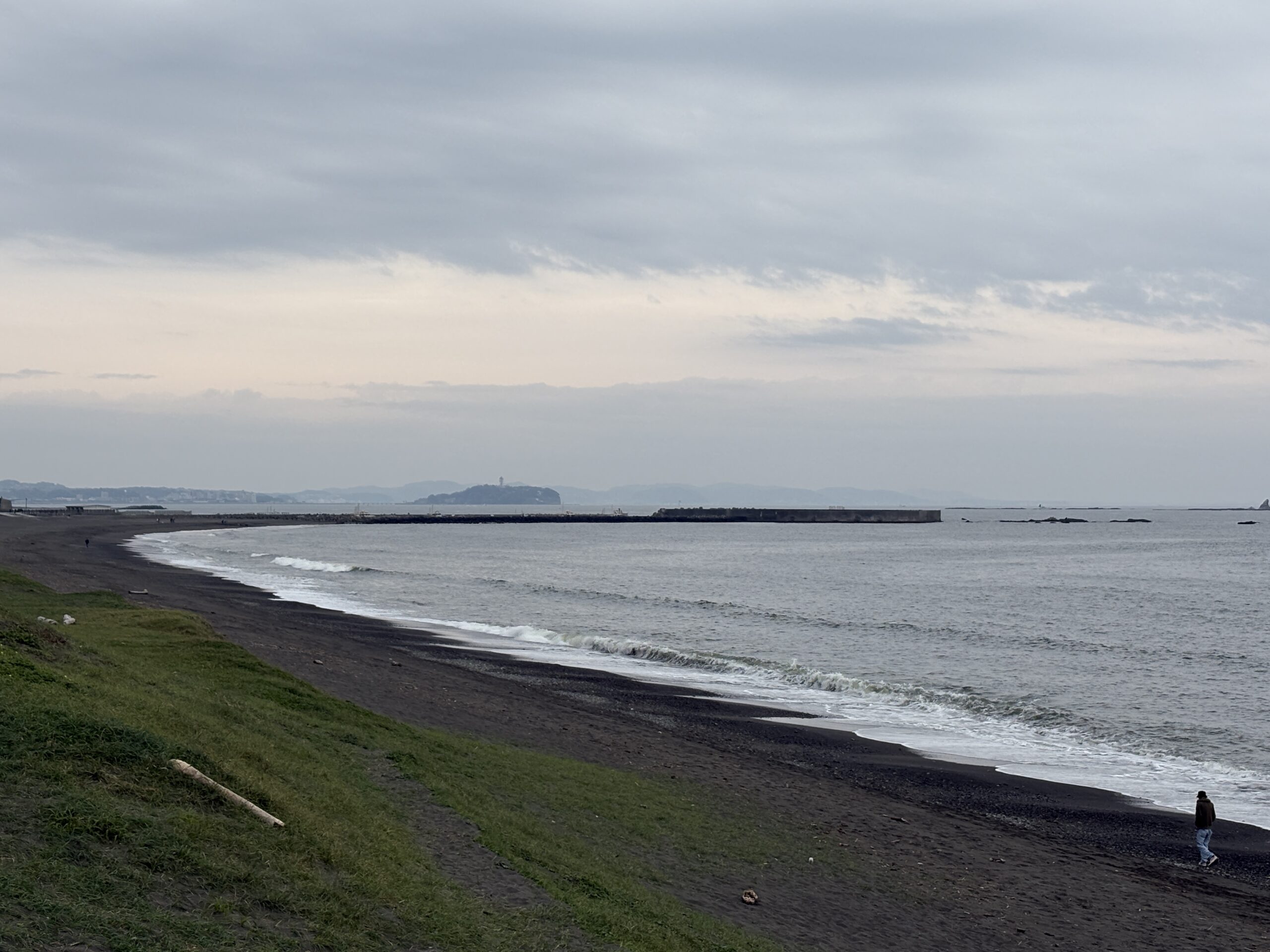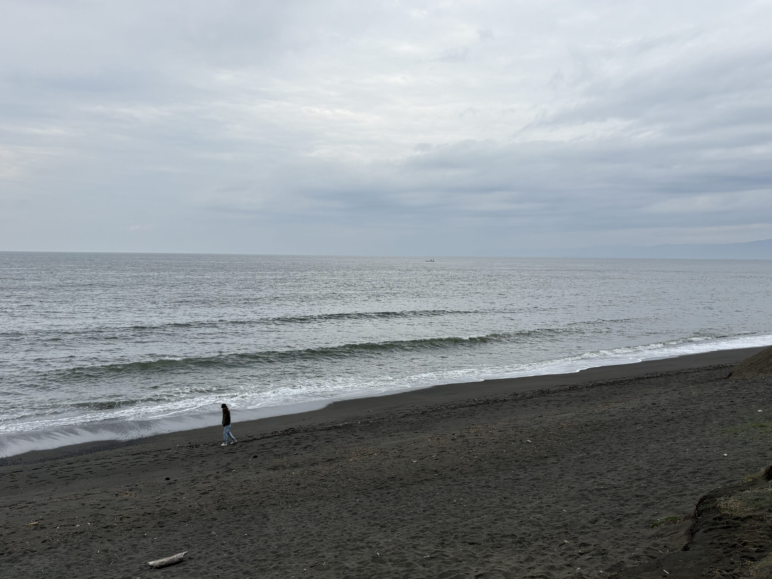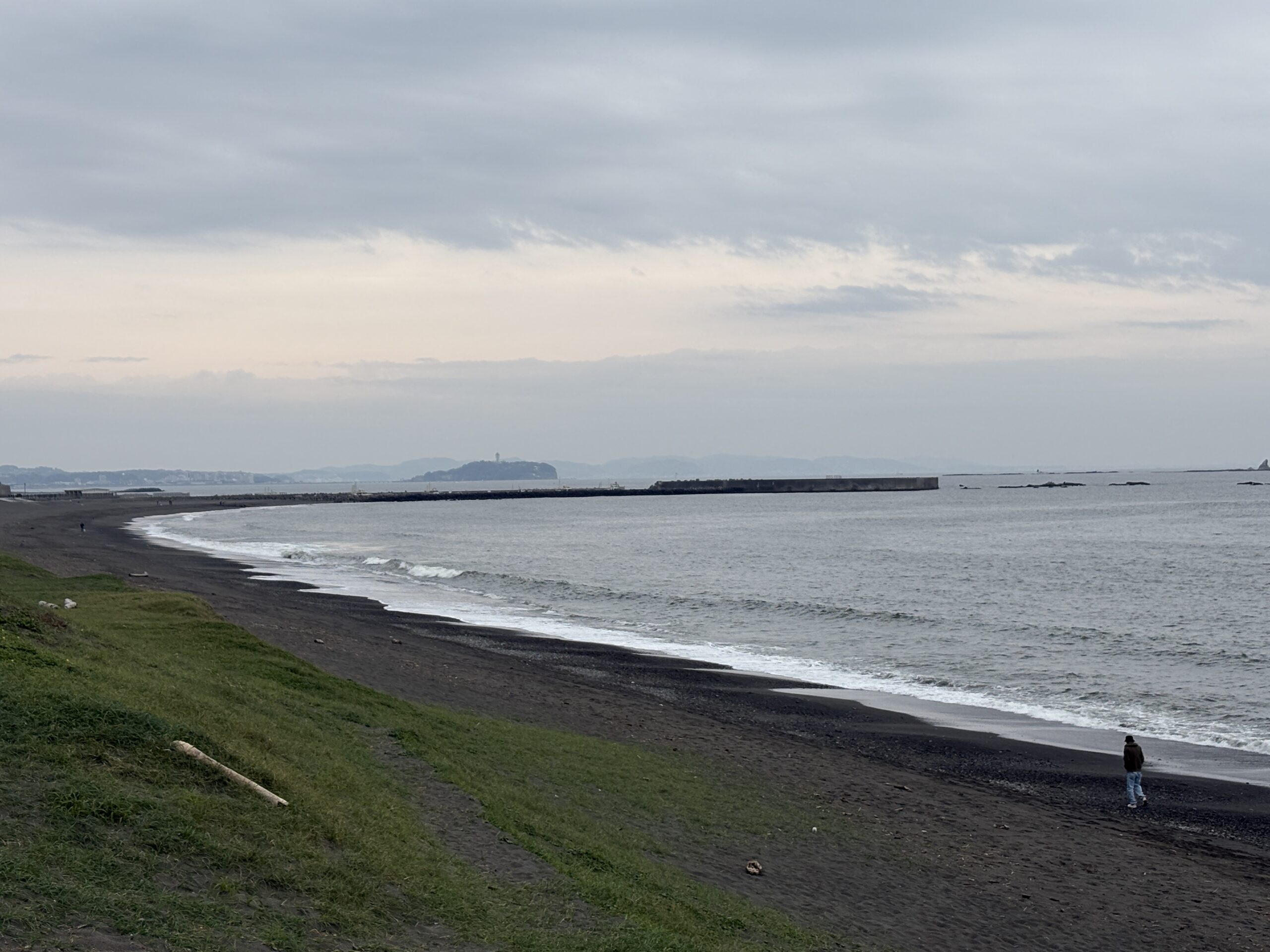 今日の天気は曇りのち雨の予報。今朝はどんよりとした曇り空の既に海風が吹き始め海面がざわついており、これから次第に荒れて来る感じです。