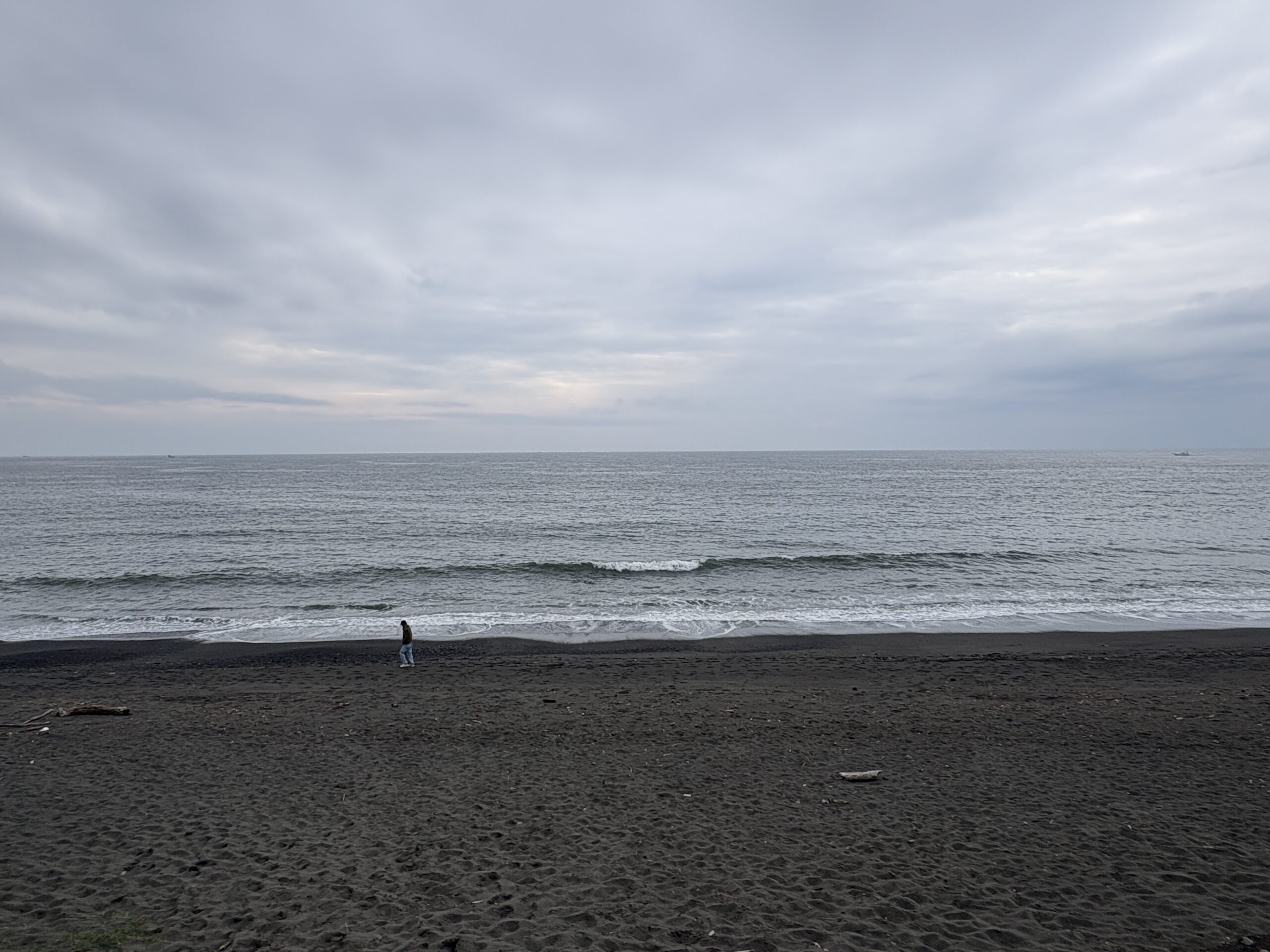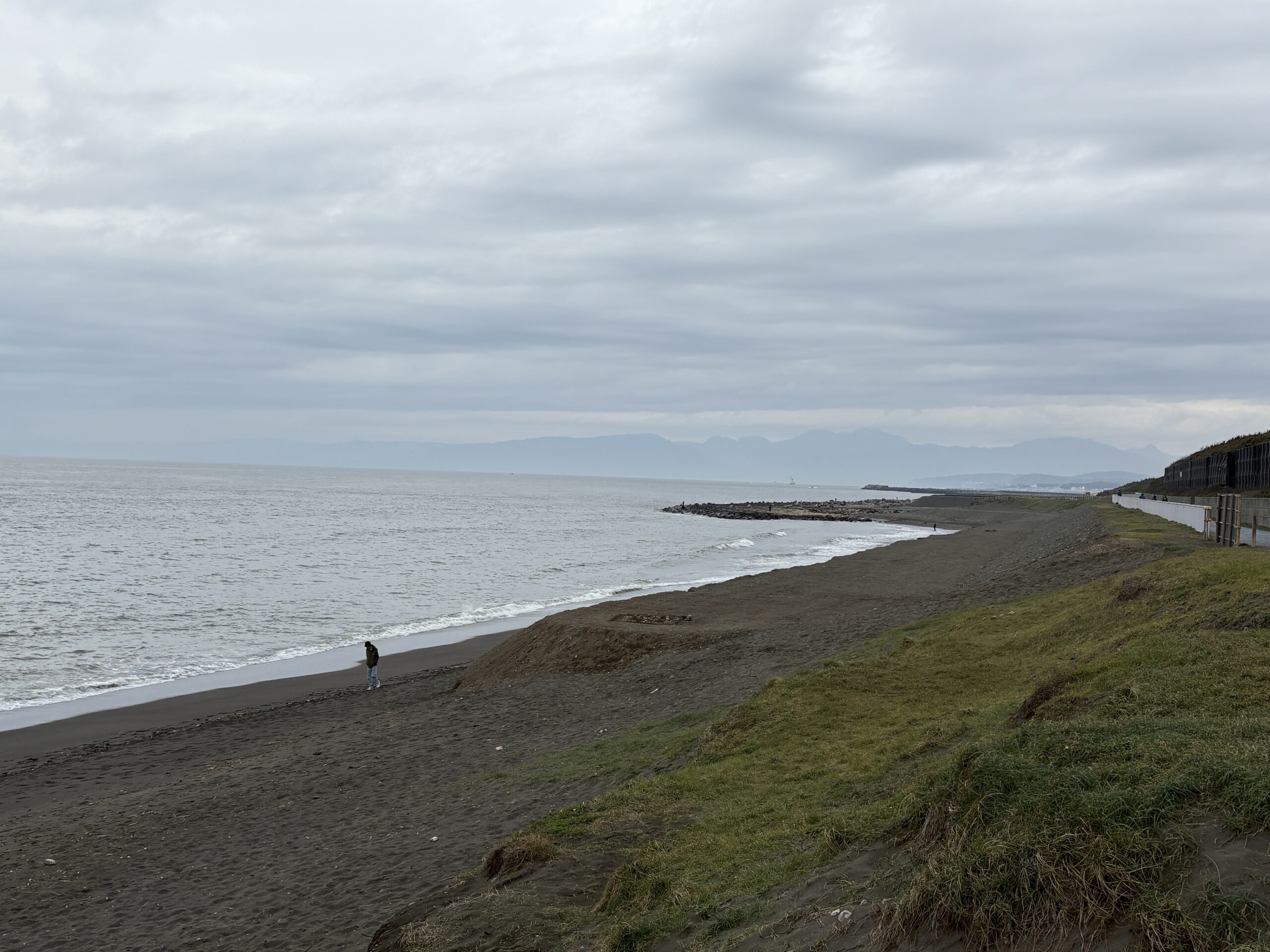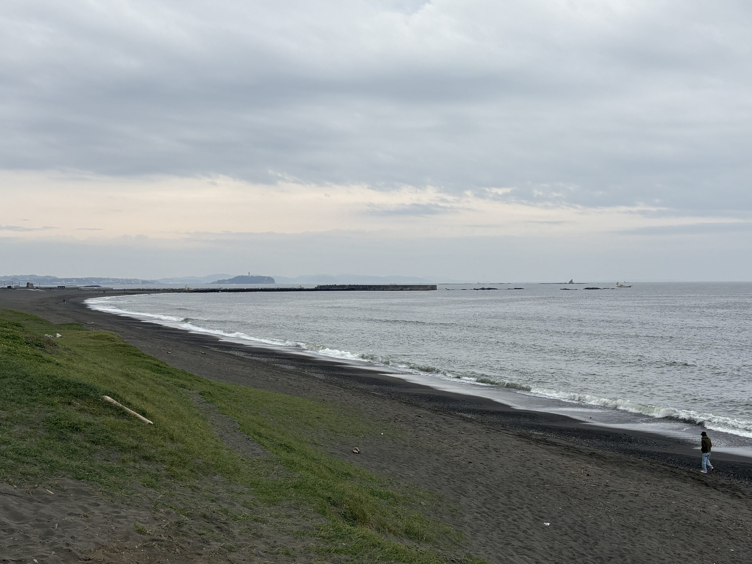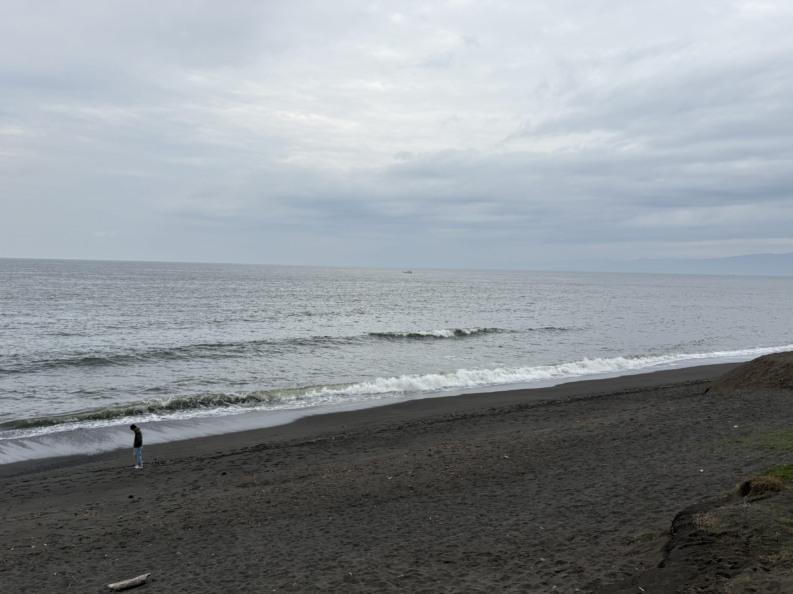 今日の天気は曇りのち雨の予報。今朝はどんよりとした曇り空の既に海風が吹き始め海面がざわついており、これから次第に荒れて来る感じです。