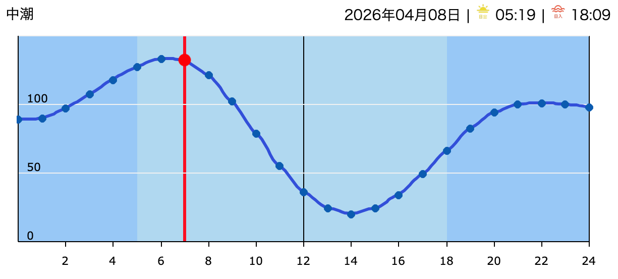 今日の天気は晴れの予報。今朝は冷たい北風が吹きやや肌寒い朝ですが、空はブルースカイ広がる良い天気で、日中は暖かくなりそうです?!海は、昨日オンショアから夕方に急遽北に風がシフトし、今朝まで強く吹き続いた為、ウネリが押されている感じでモモから腰近くのしっかりとしたウネリが入りますが、朝のうちは潮が上げている為、インサイドのショアブレイクです。 本日のタイドグラフ。昼過ぎの干潮に掛け次第に沖でブレイクし出すかと思われます?!