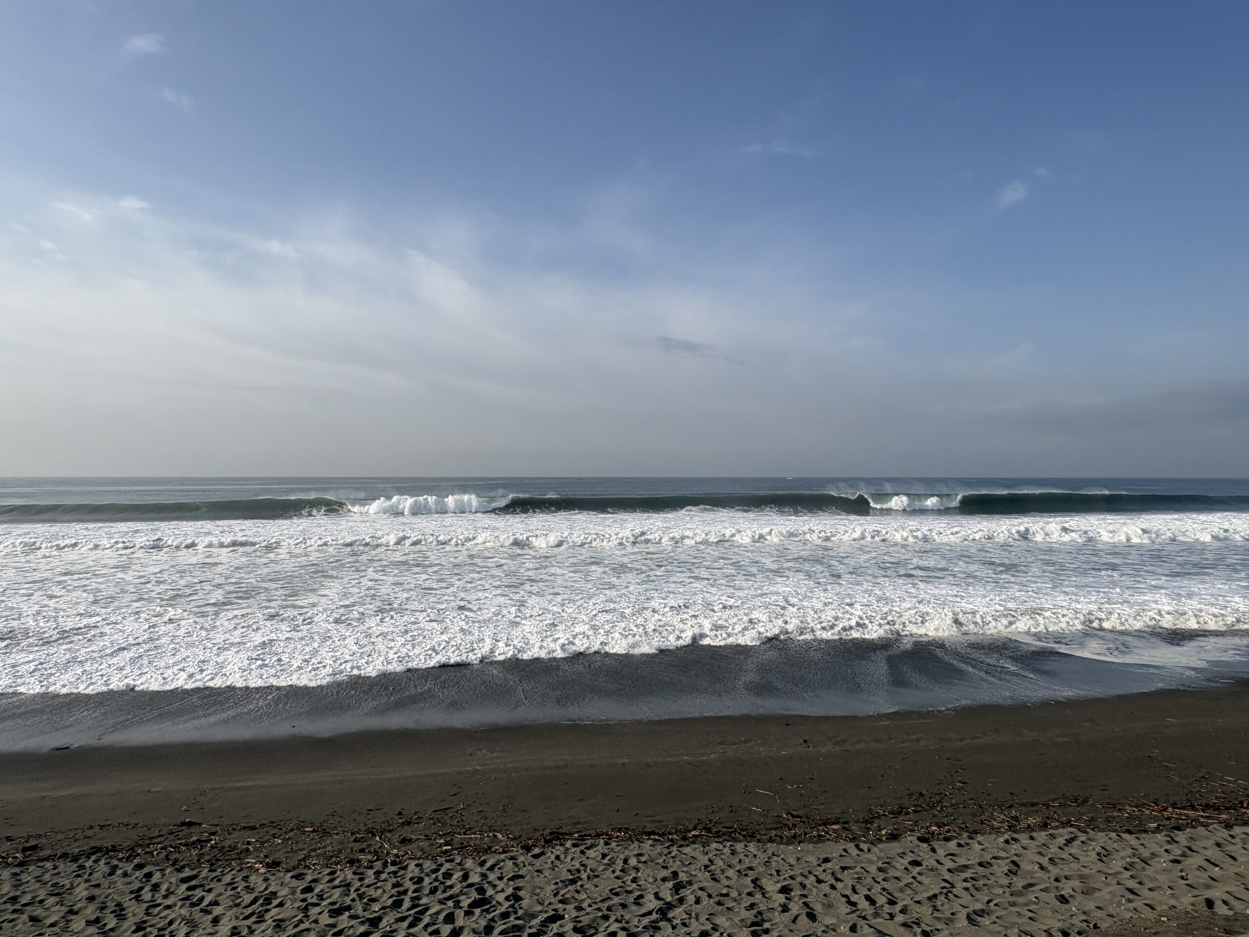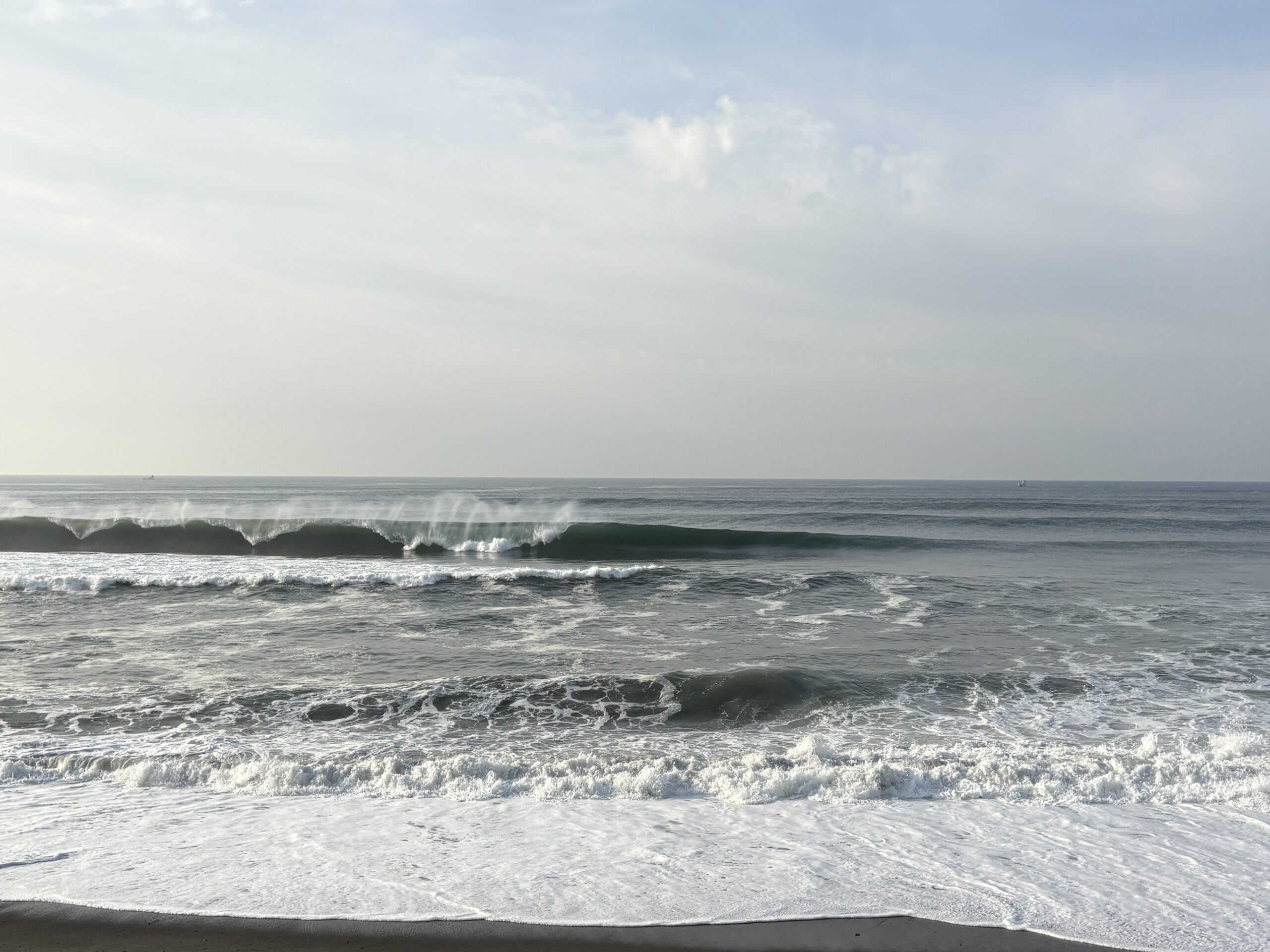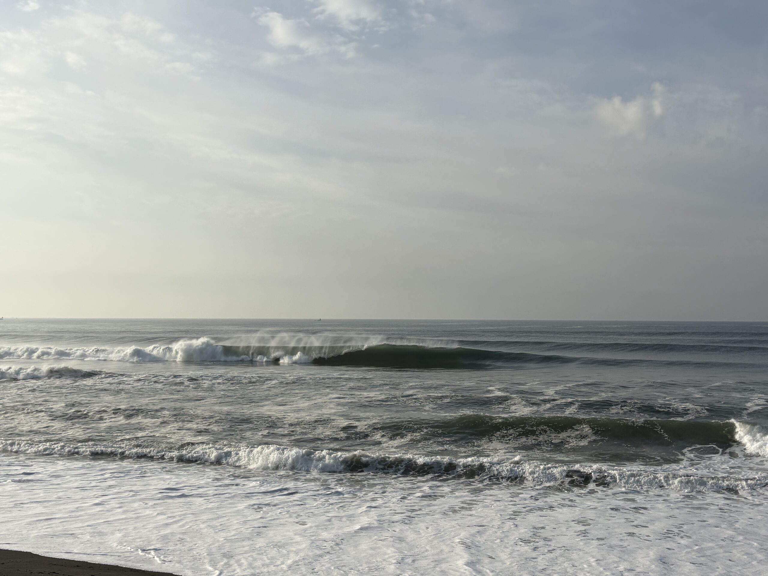 そして西浜はここ数日スーパーバングが形成され、沖から100メートル以上は乗れそうな波がたまにブレイクしています。